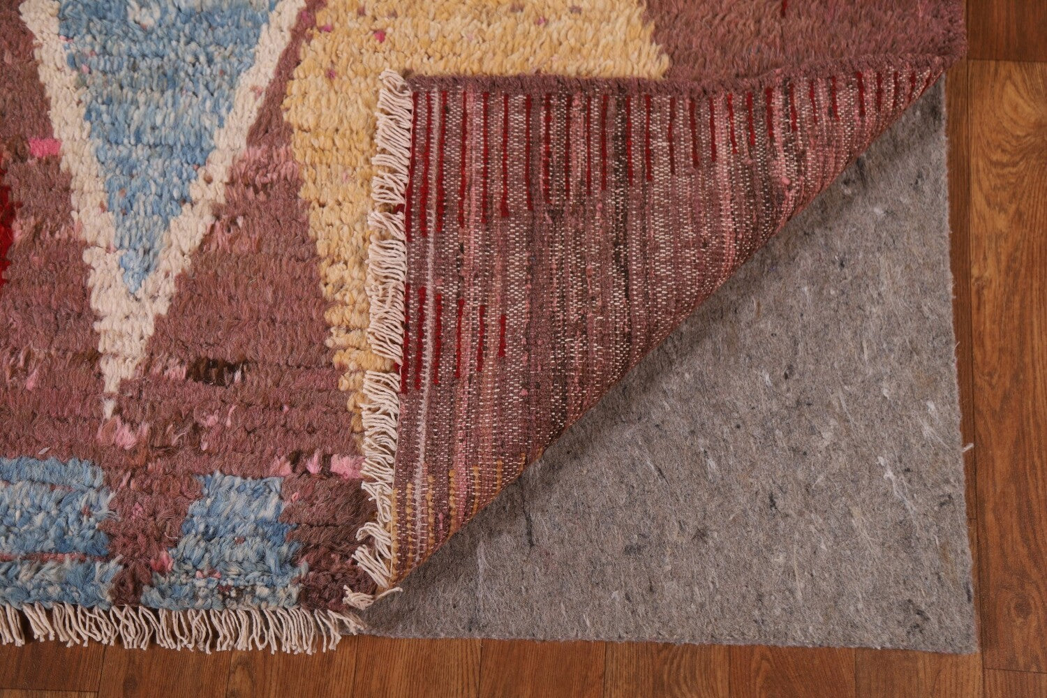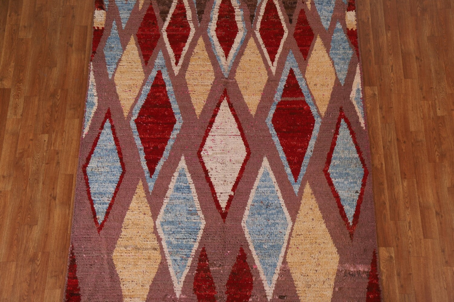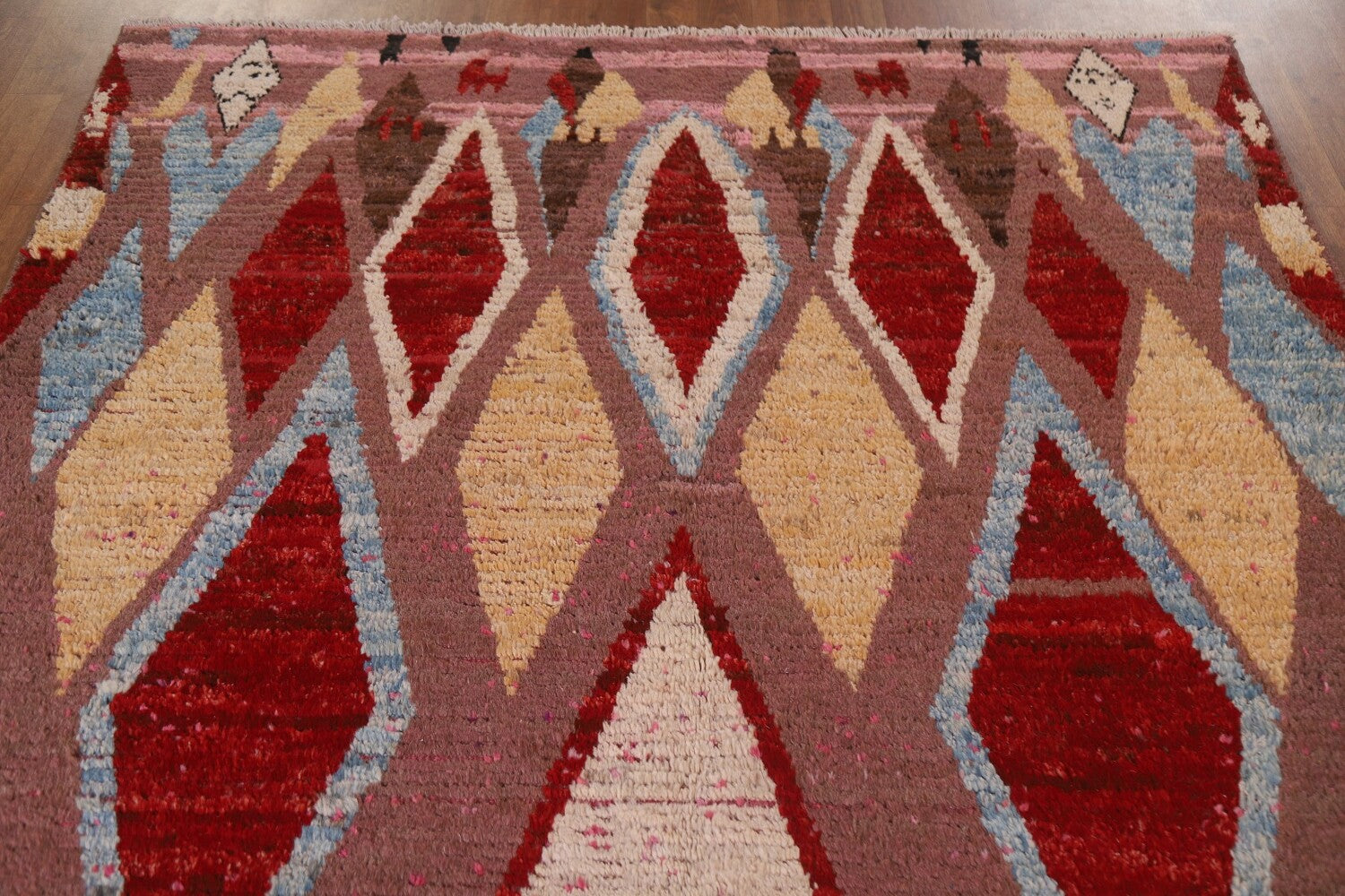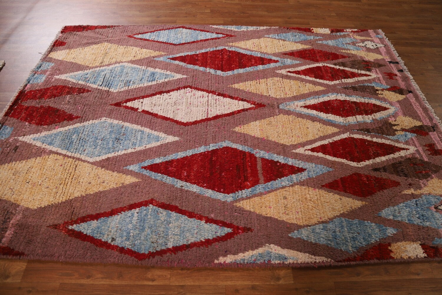 A Beautiful Genuine Pakistan Moroccan rug is Hand Knotted by skillful weavers in Pakistan with 100% Wool Material. This rug is in condition. dimensions are 7' 9'' X 5' 0'' in foot and 236 X 152 in centimeter. the primary color is Pink.
