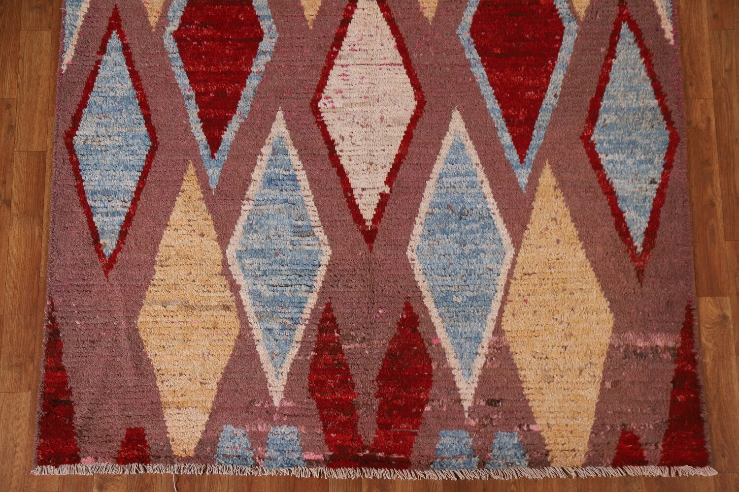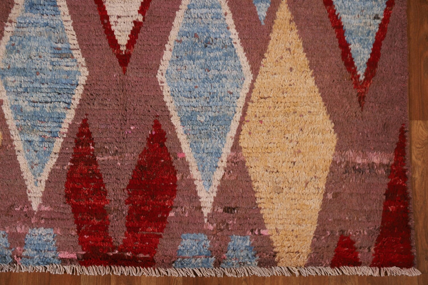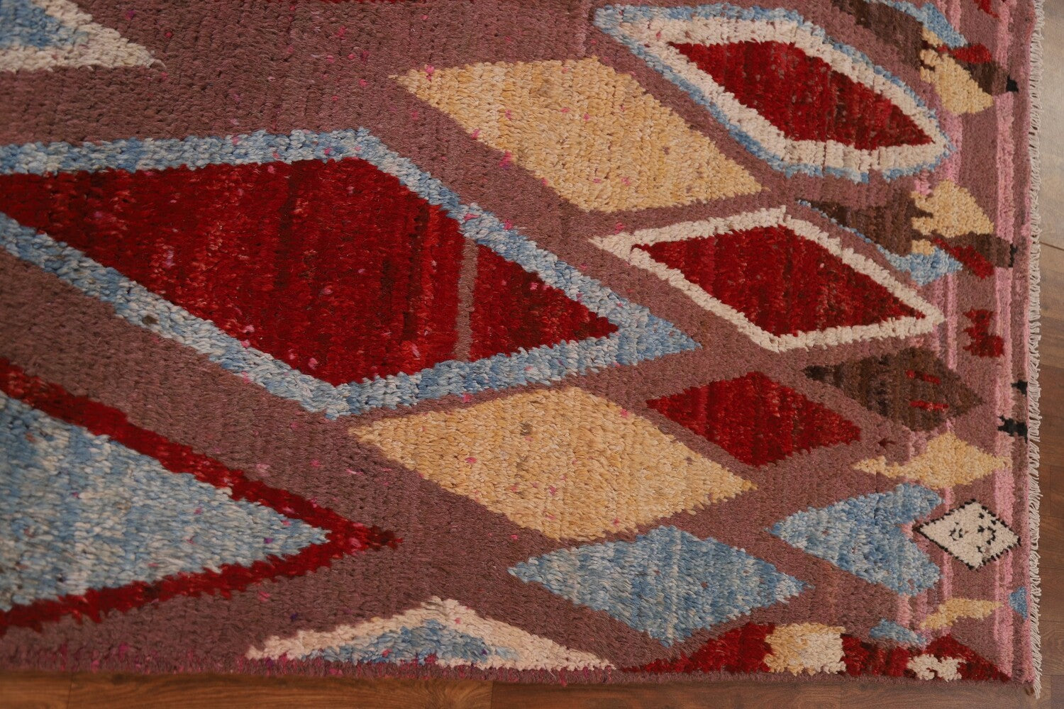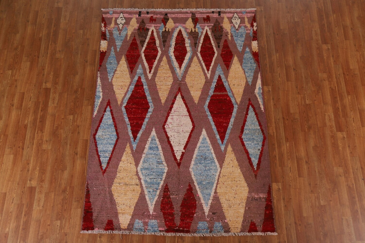 A Beautiful Genuine Pakistan Moroccan rug is Hand Knotted by skillful weavers in Pakistan with 100% Wool Material. This rug is in condition. dimensions are 7' 9'' X 5' 0'' in foot and 236 X 152 in centimeter. the primary color is Pink.