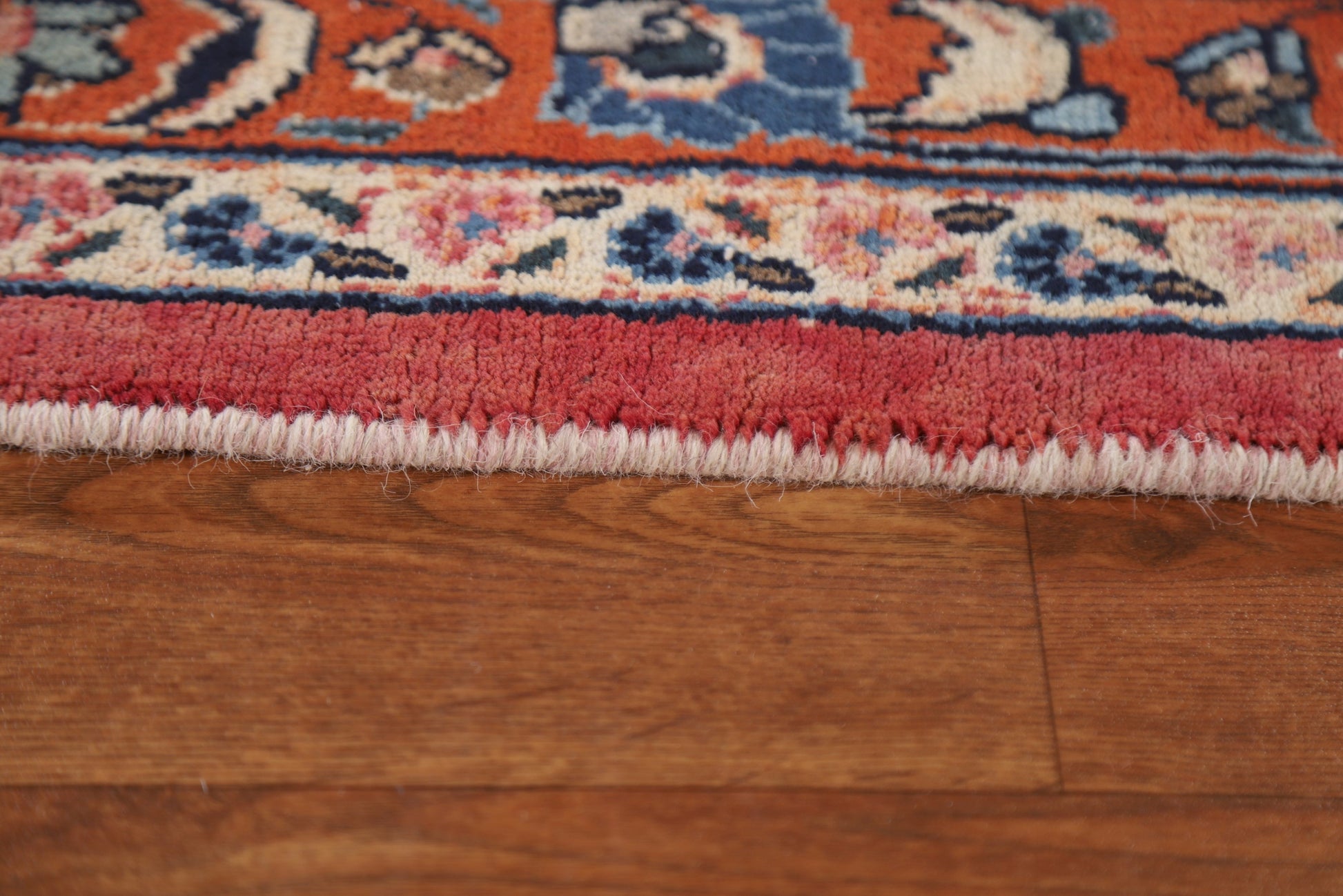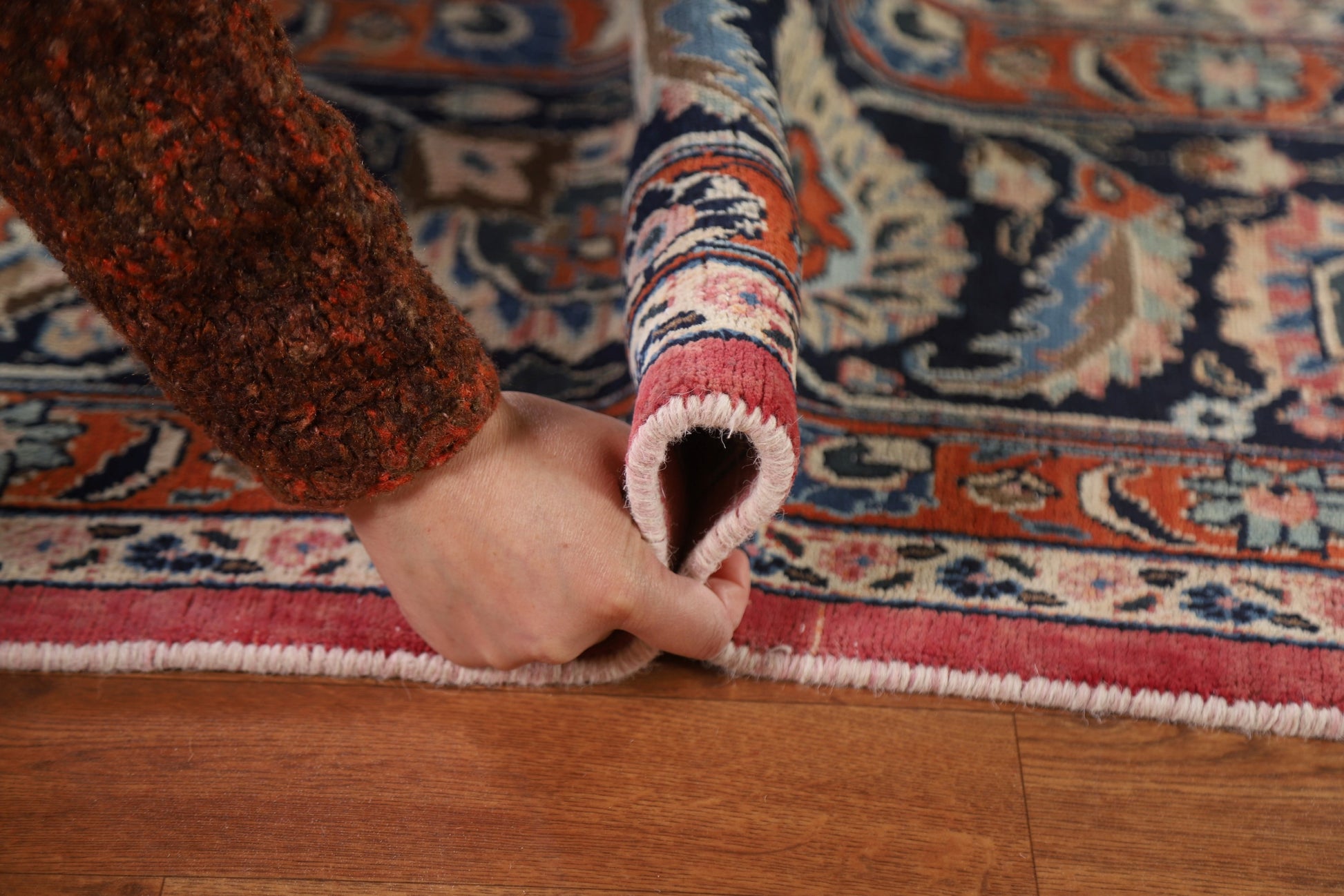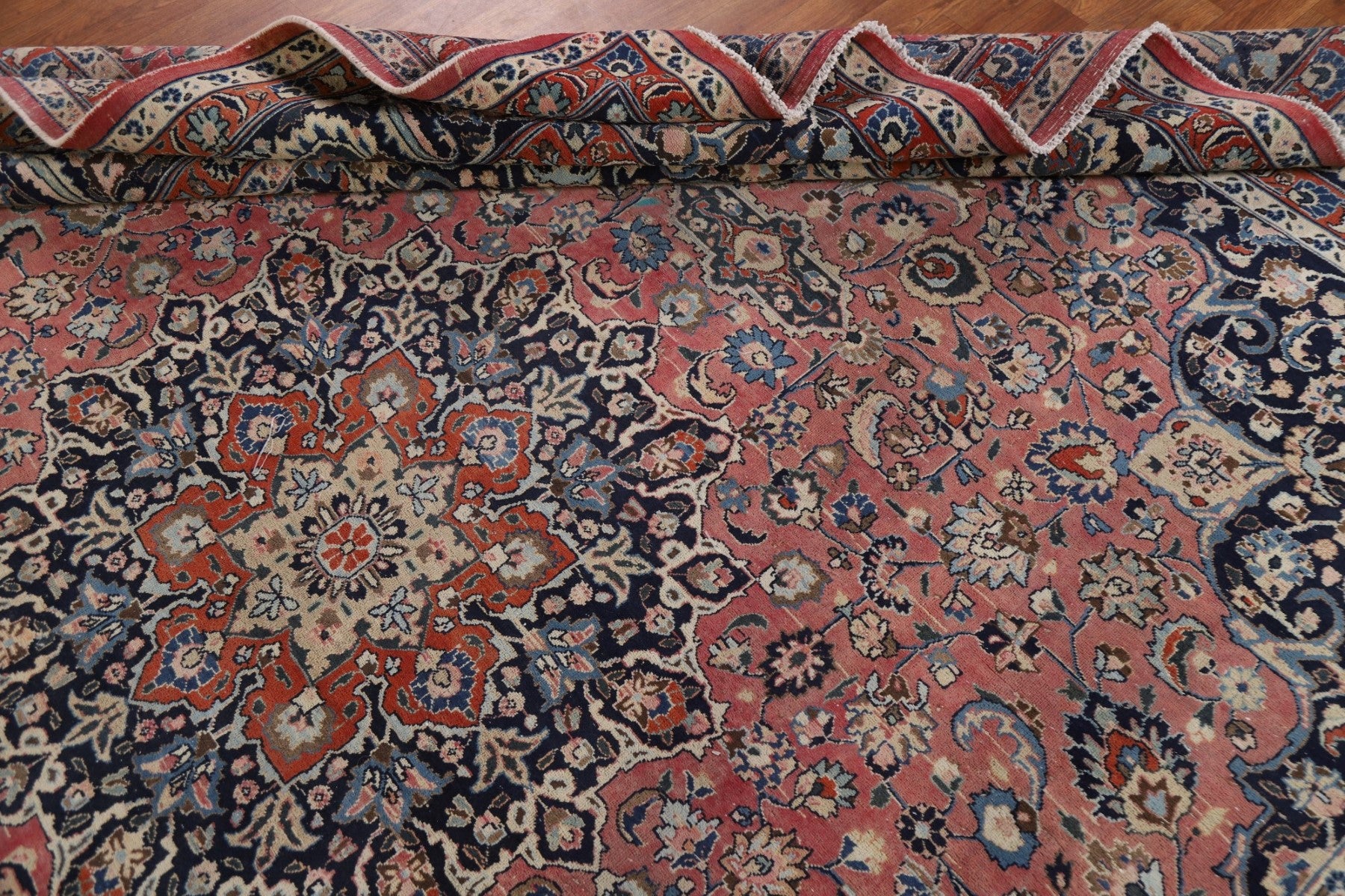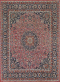 A Beautiful Genuine Persia ( Persia ) Mashad rug is Hand Knotted by skillful weavers in Persia ( Persia ) with 100% Wool Material. This rug is in Very Good (Evenly Low Pile) condition. dimensions are 11' 6'' X 9' 9'' in foot and 351 X 297 in centimeter. the primary color is Pink.