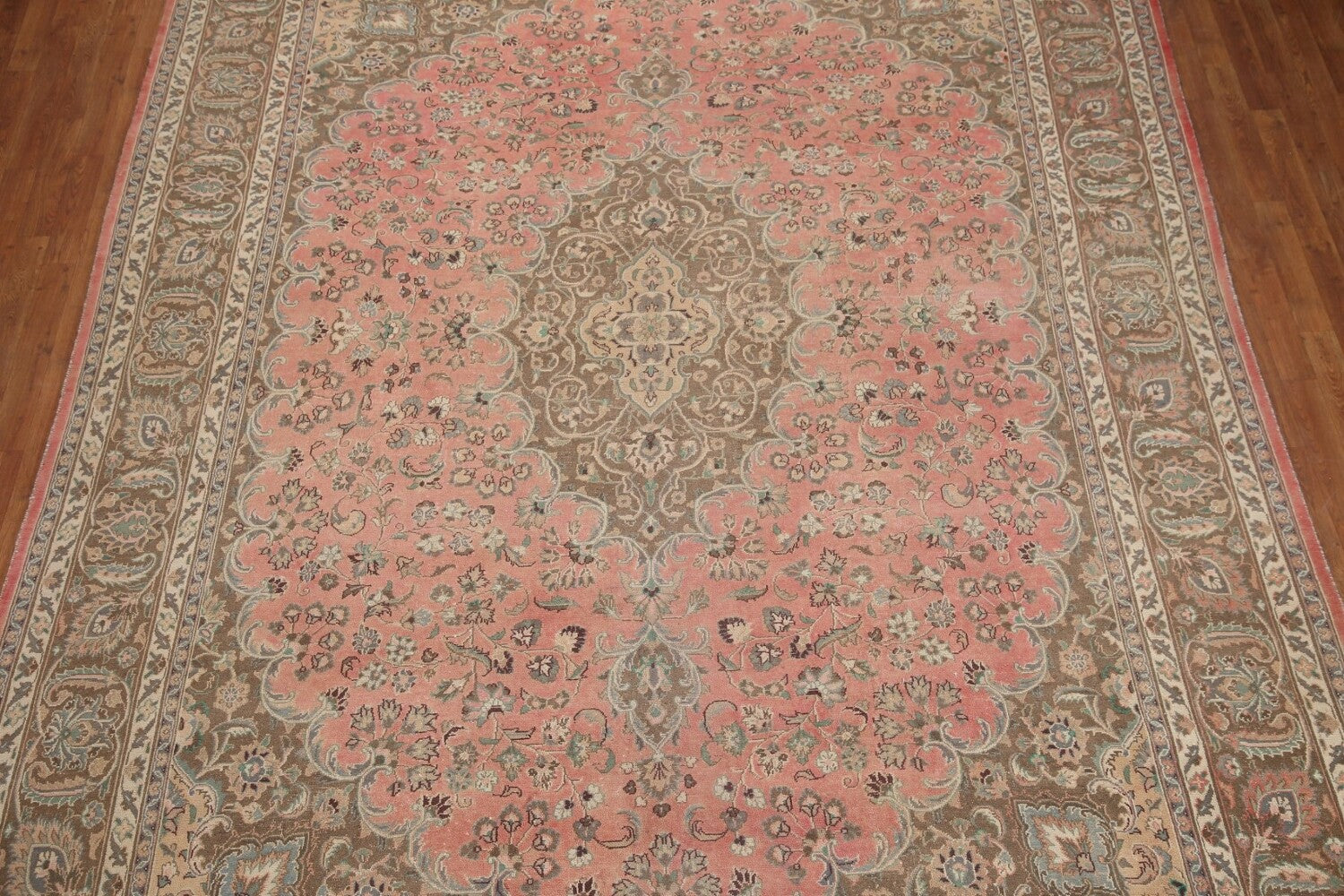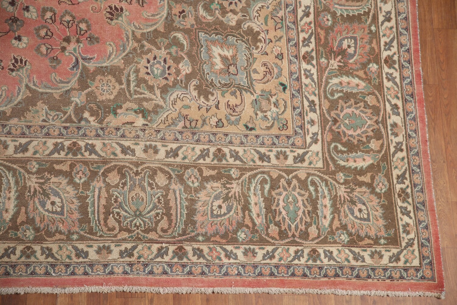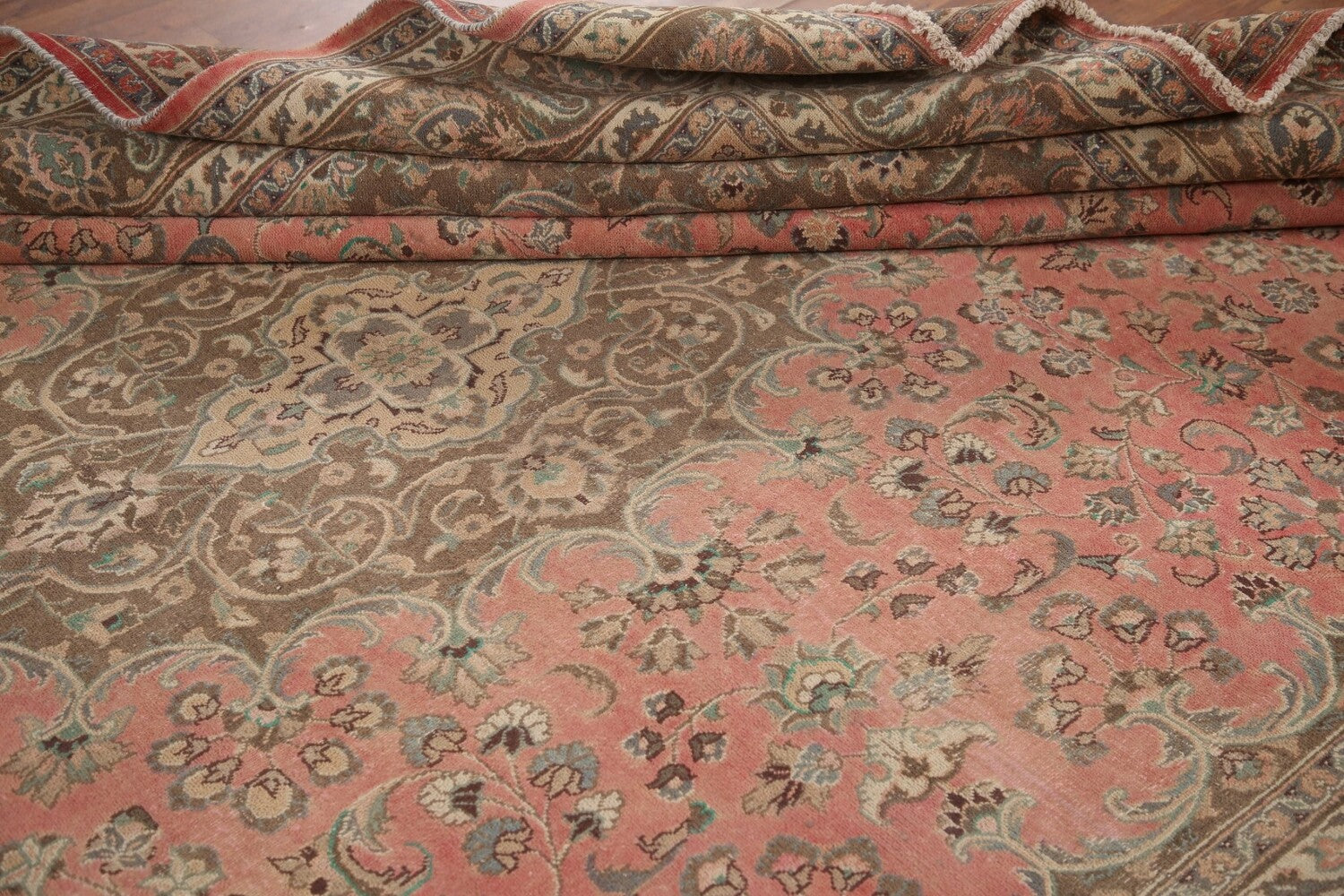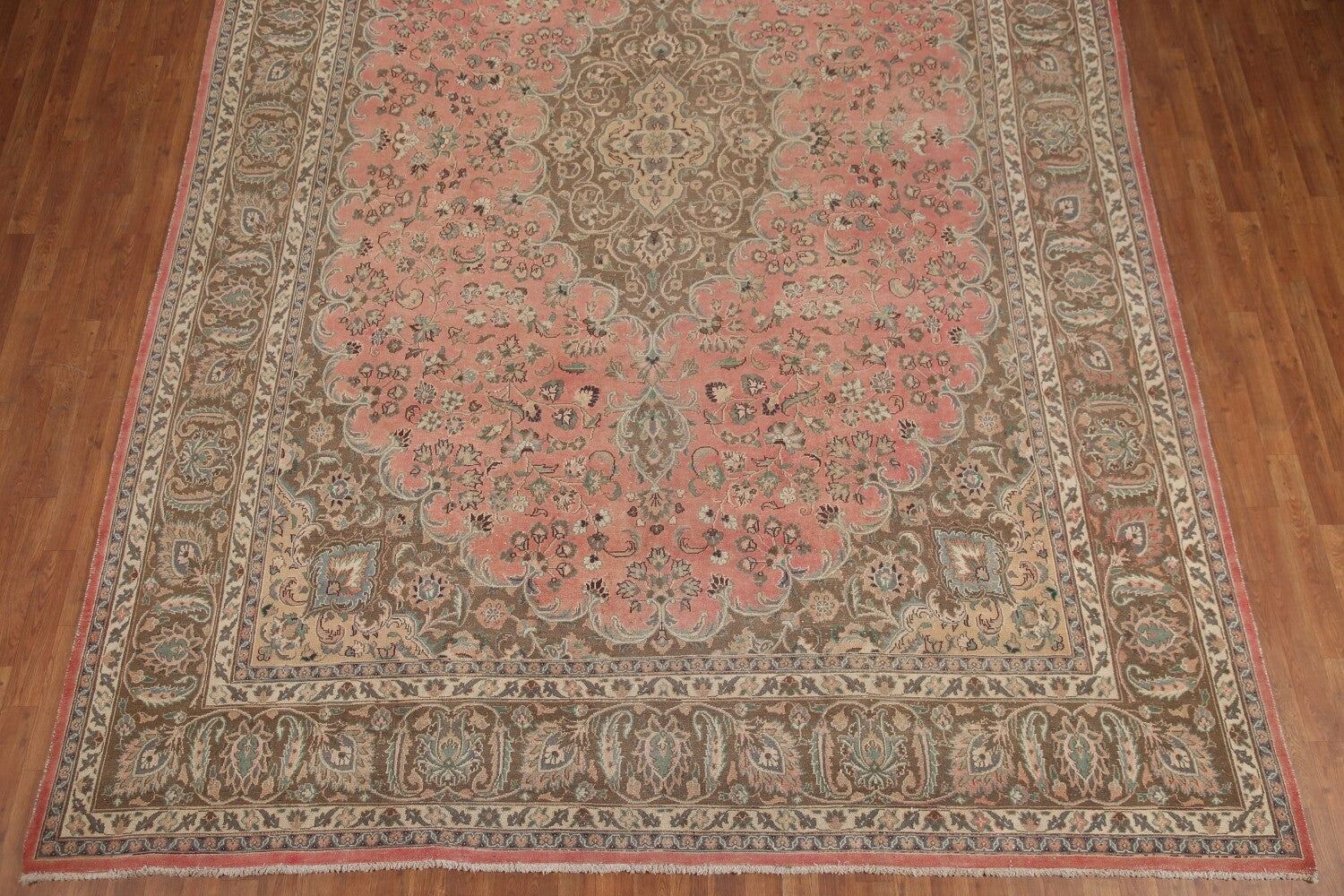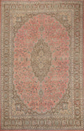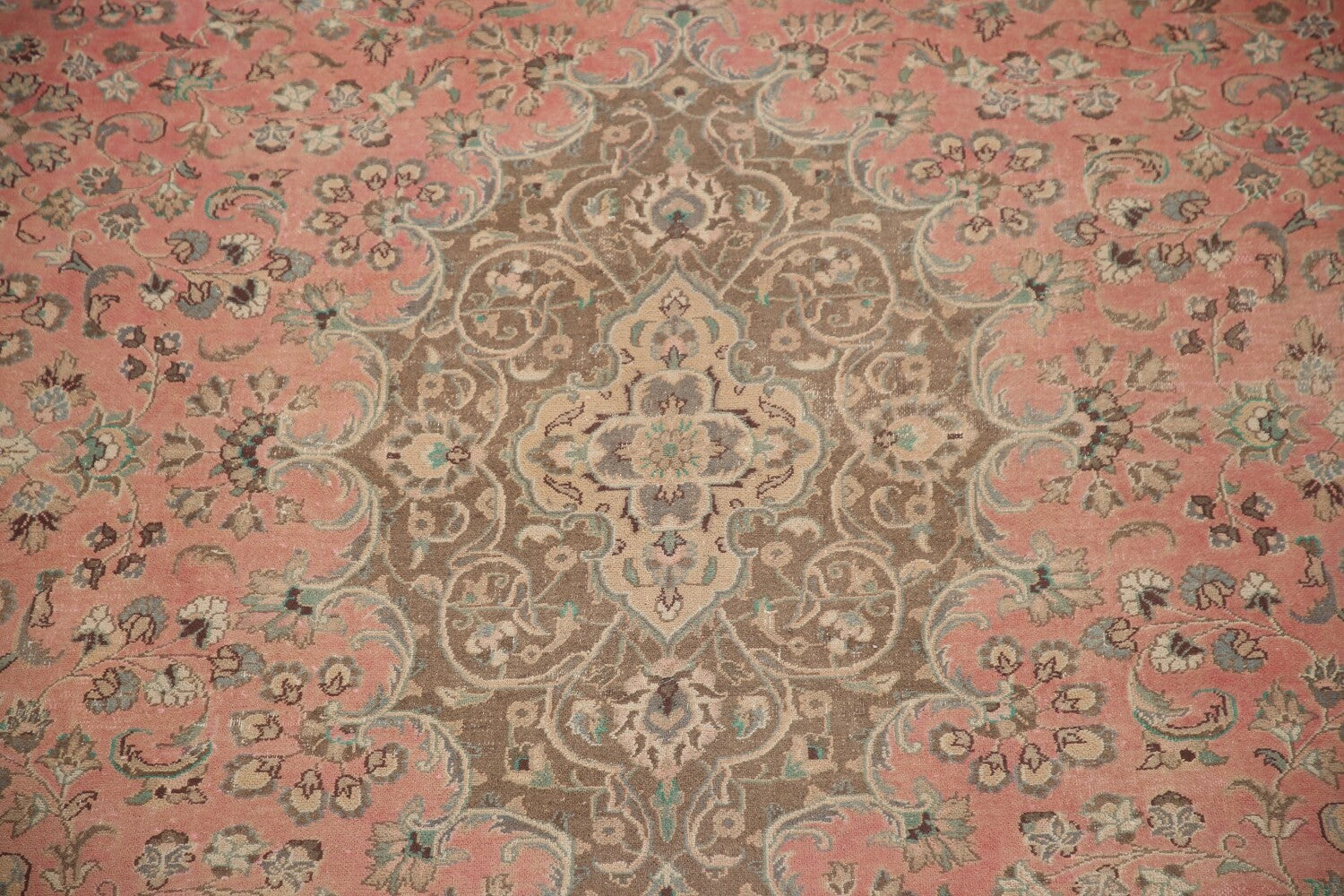 A Beautiful Genuine Persia ( Persia ) Mashad rug is Hand Knotted by skillful weavers in Persia ( Persia ) with 100% Wool Material. This rug is in Very Good (Evenly Low Pile) condition. dimensions are 13' 0'' X 9' 7'' in foot and 396 X 292 in centimeter. the primary color is Pink.