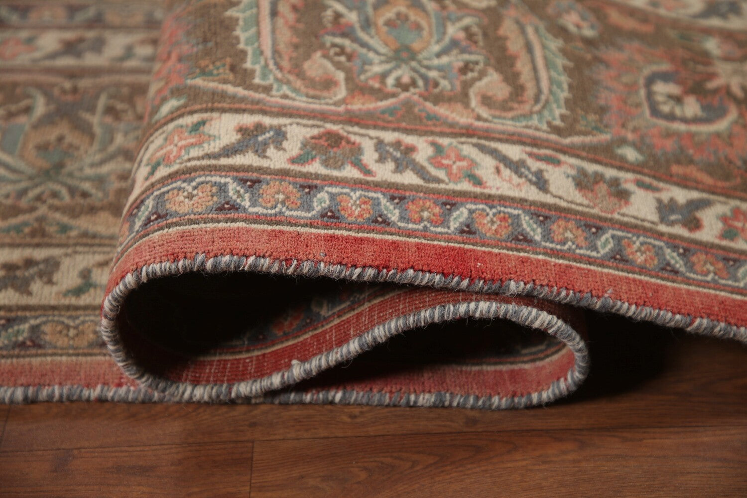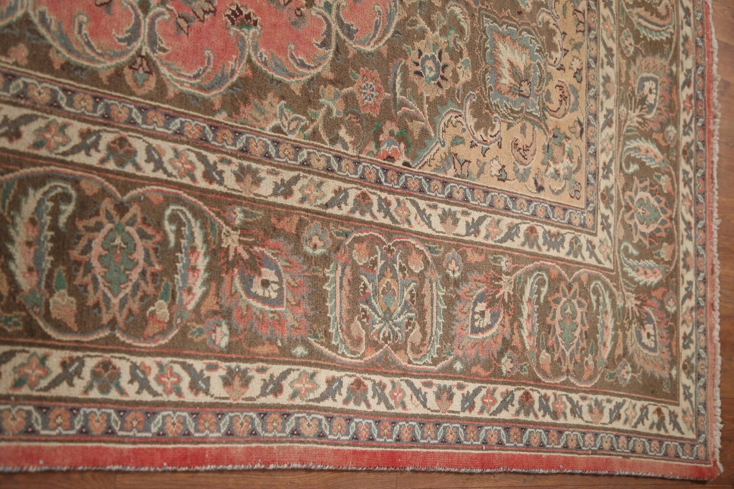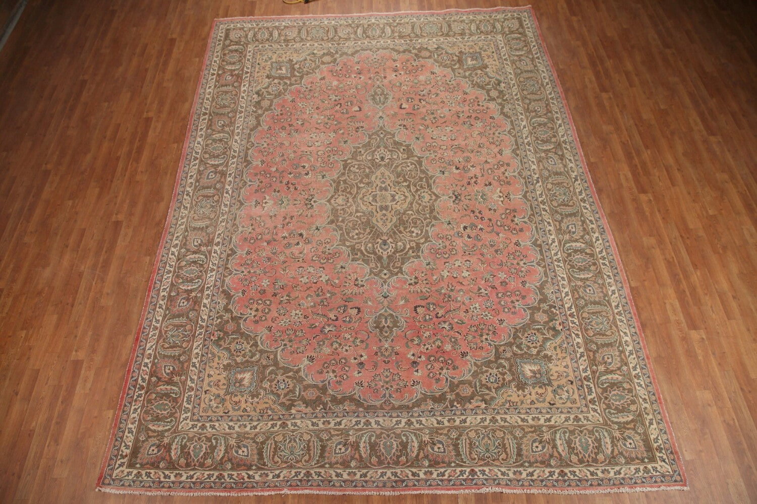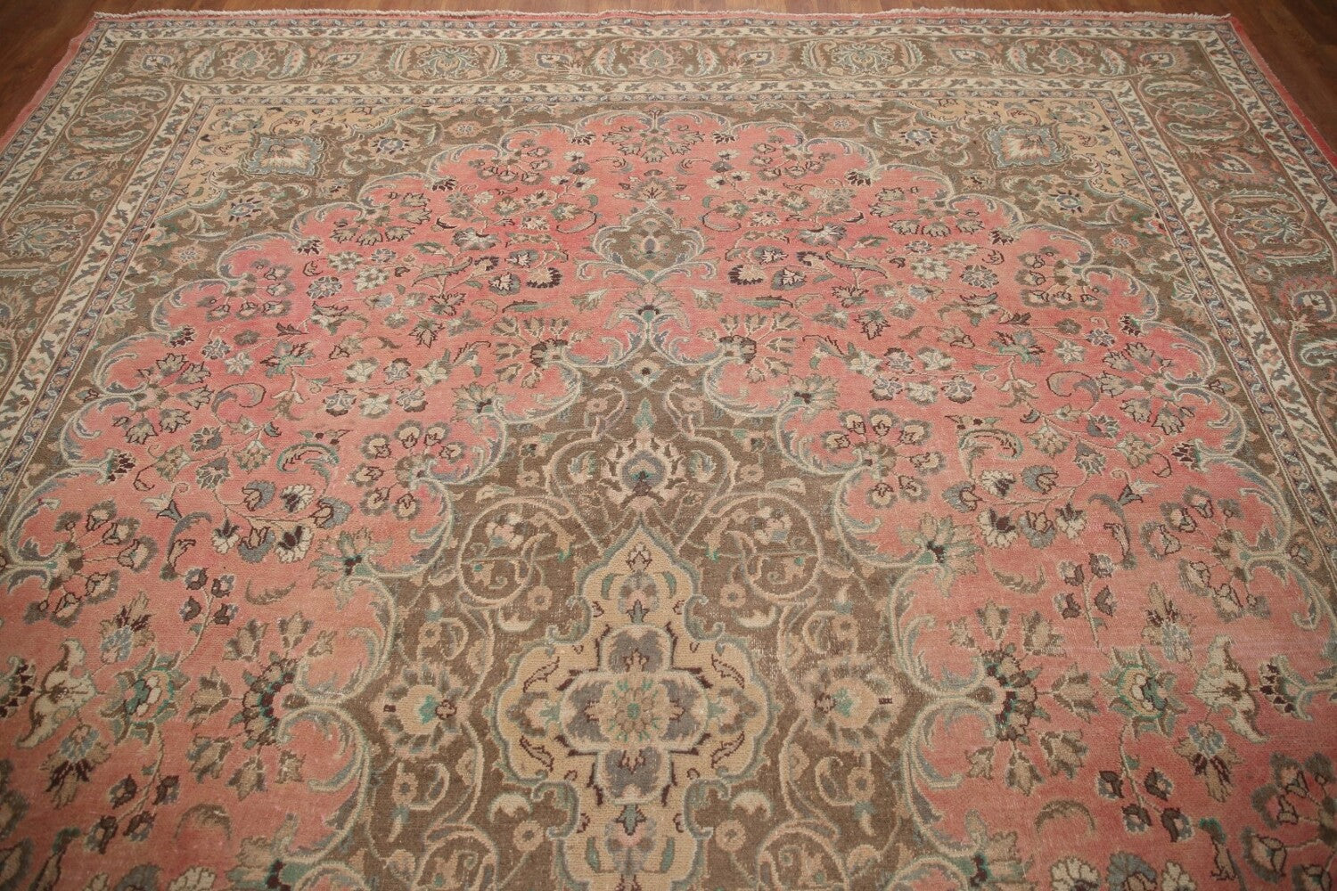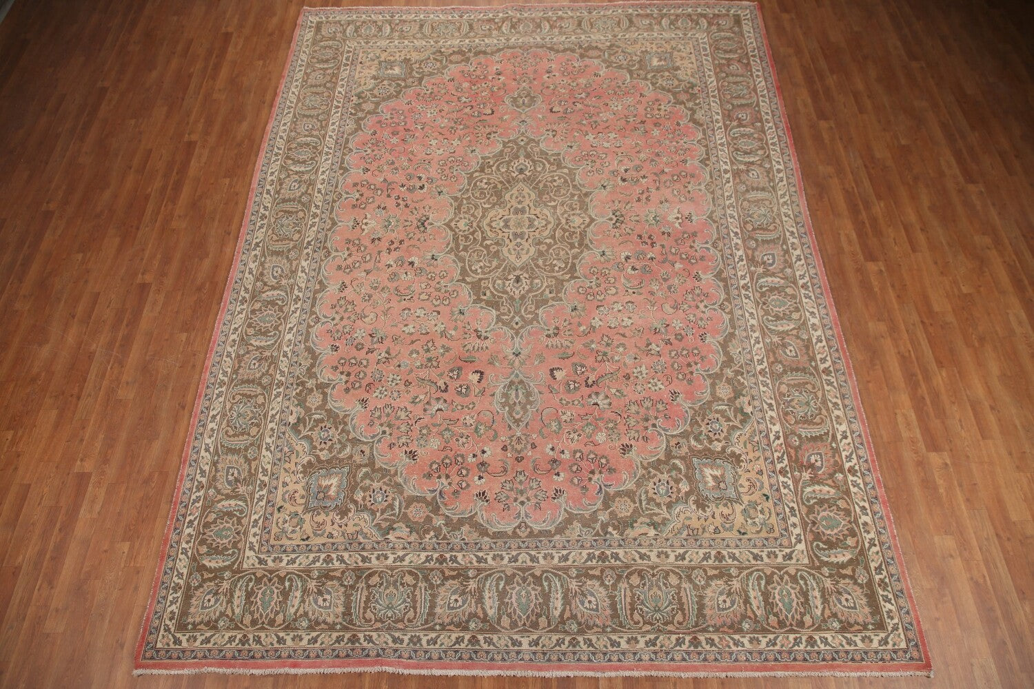 A Beautiful Genuine Persia ( Persia ) Mashad rug is Hand Knotted by skillful weavers in Persia ( Persia ) with 100% Wool Material. This rug is in Very Good (Evenly Low Pile) condition. dimensions are 13' 0'' X 9' 7'' in foot and 396 X 292 in centimeter. the primary color is Pink.