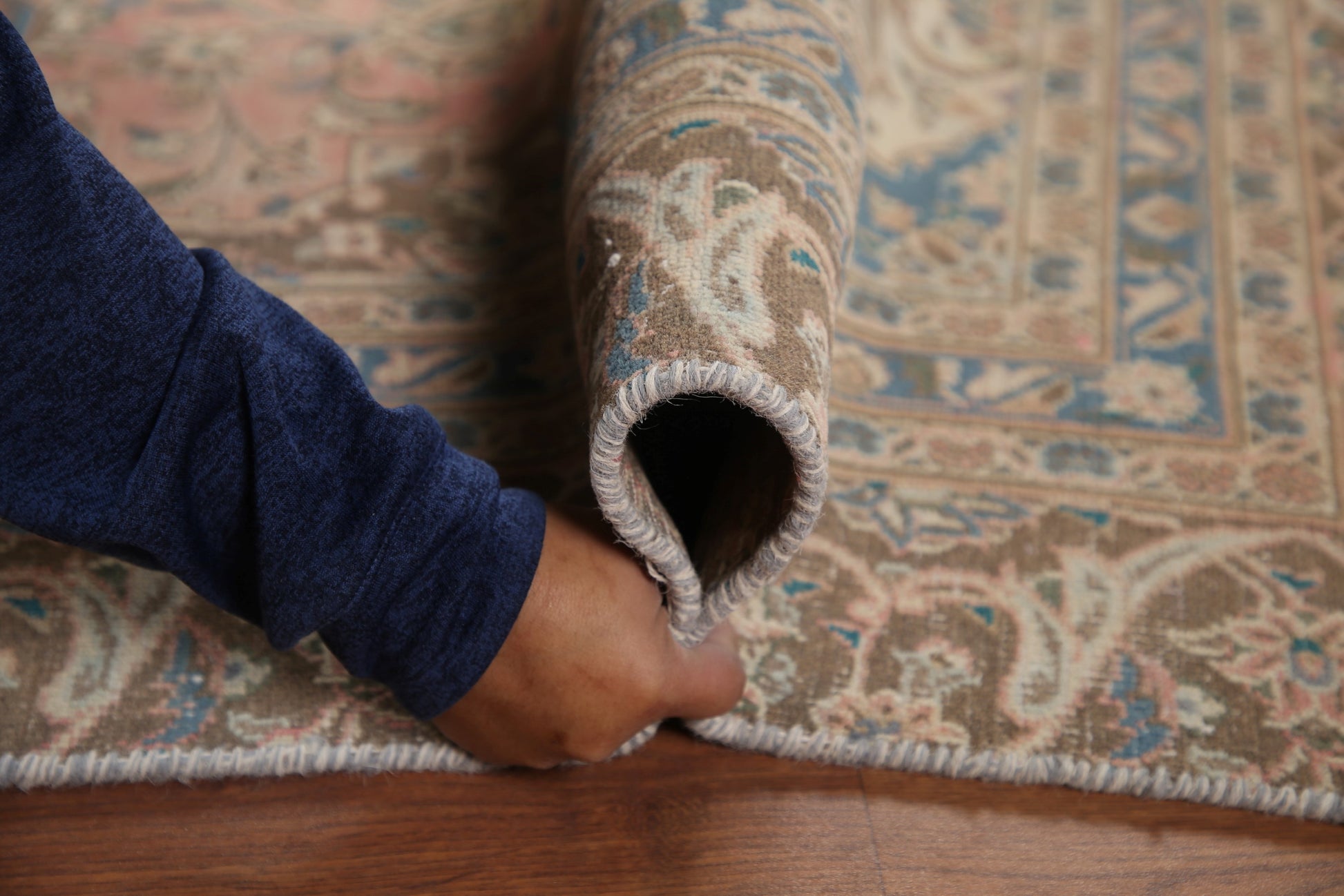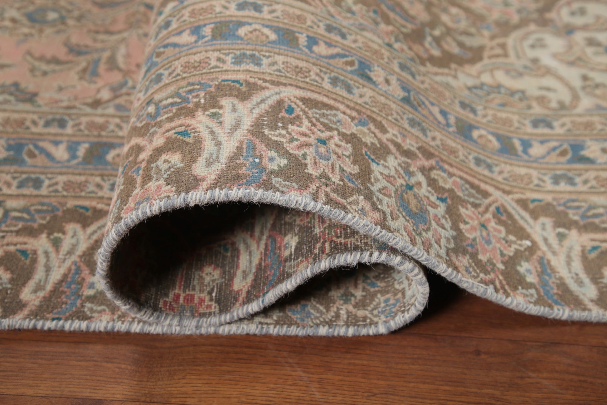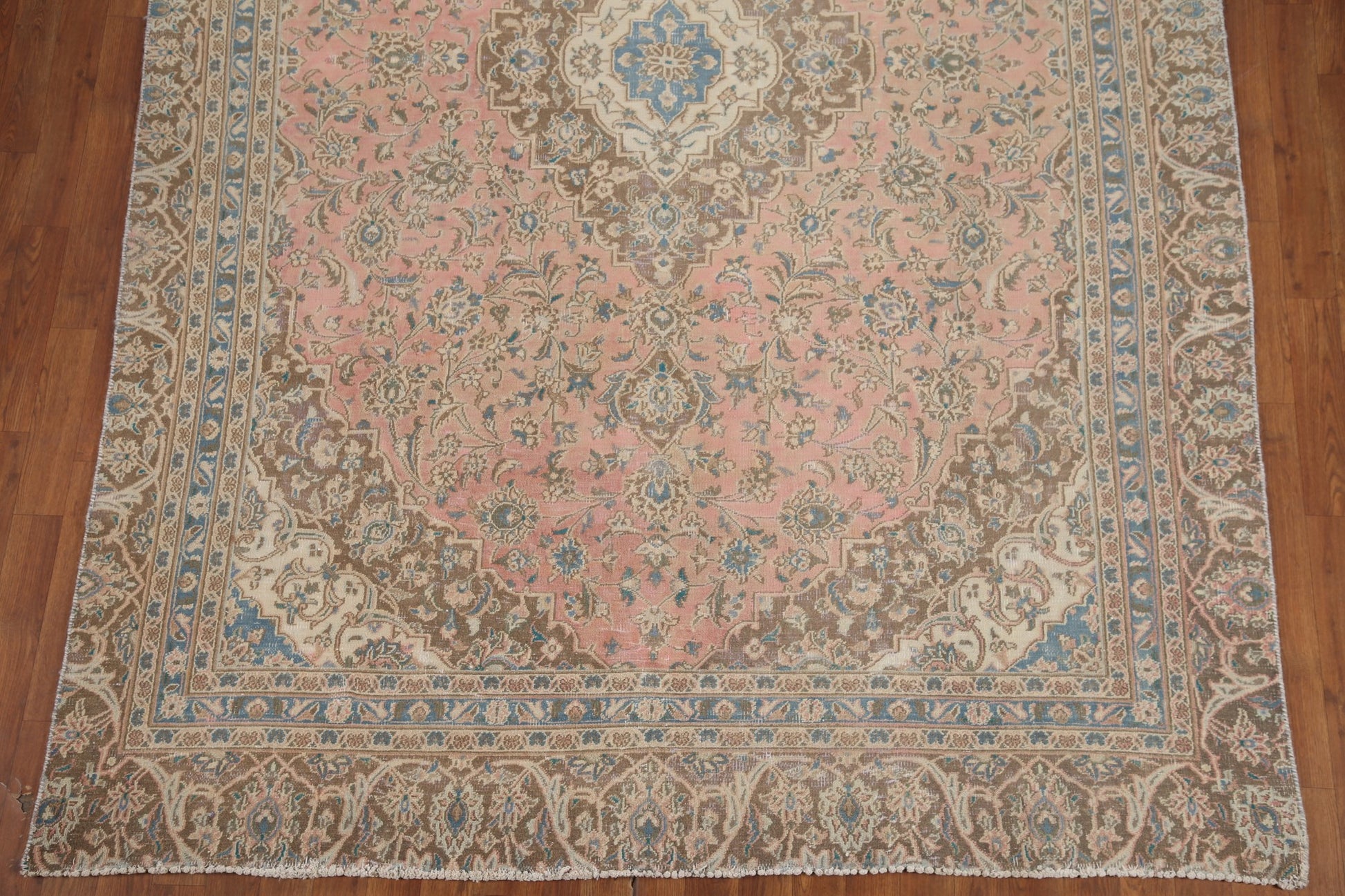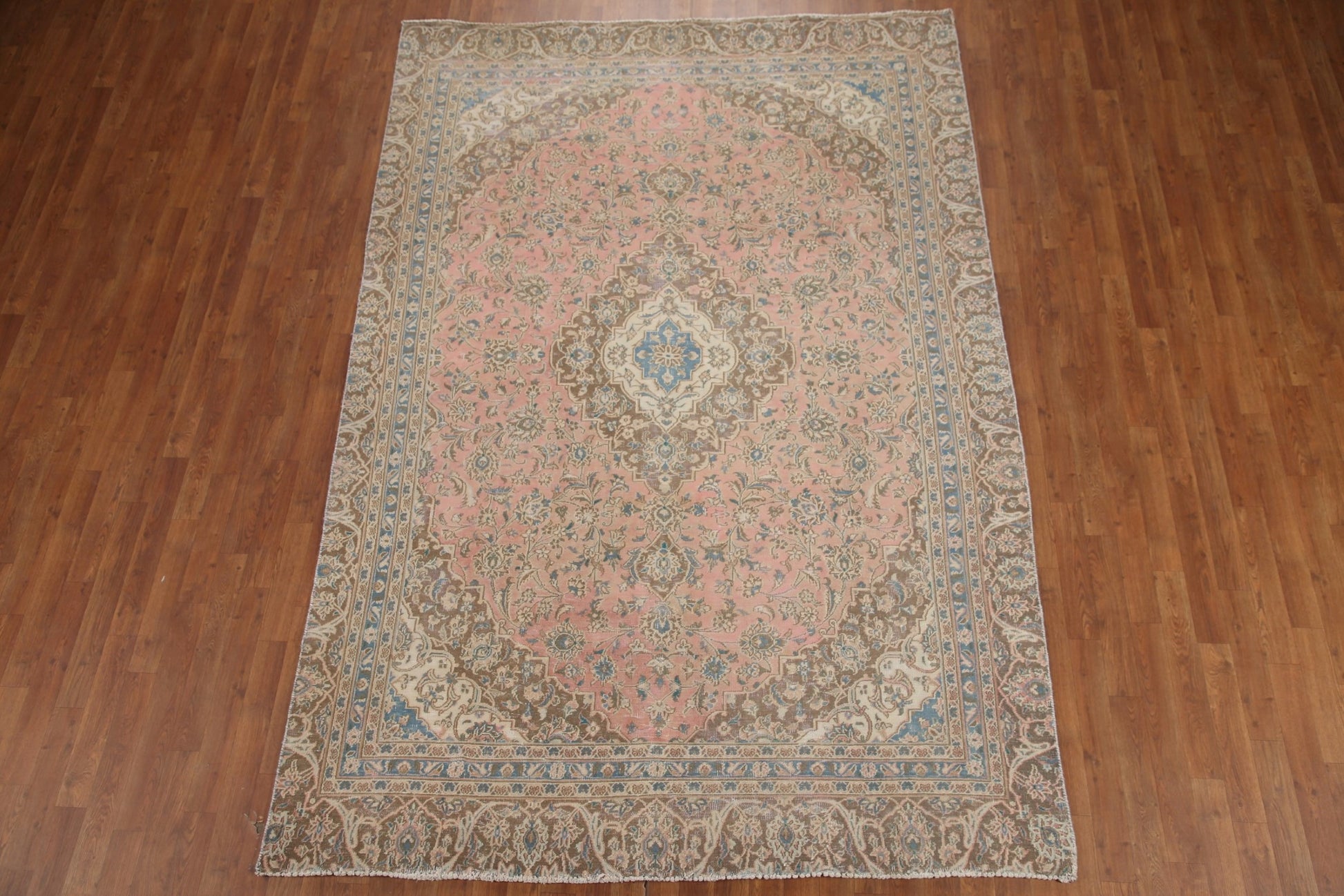 A Beautiful Genuine Persia ( Persia ) Mashad rug is Hand Knotted by skillful weavers in Persia ( Persia ) with 100% Wool Material. This rug is in Very Good (Evenly Low Pile) condition. dimensions are 9' 8'' X 6' 7'' in foot and 295 X 201 in centimeter. the primary color is Pink.