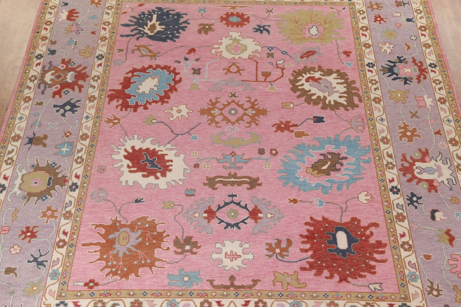 A Beautiful Genuine India Oushak rug is Hand Knotted by skillful weavers in India with 100% Wool Material. This rug is in New, First Quality condition. dimensions are 14' 8'' X 11' 9'' in foot and 447 X 358 in centimeter. the primary color is Pink.