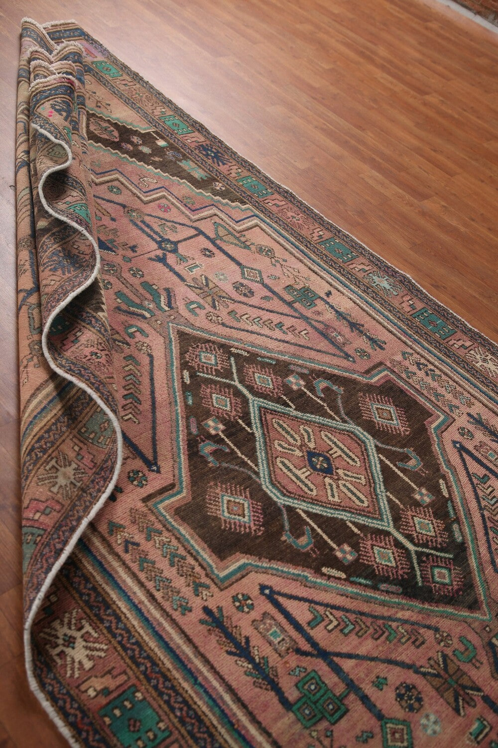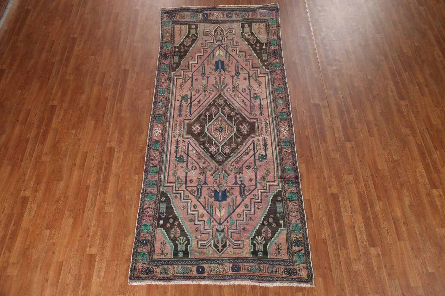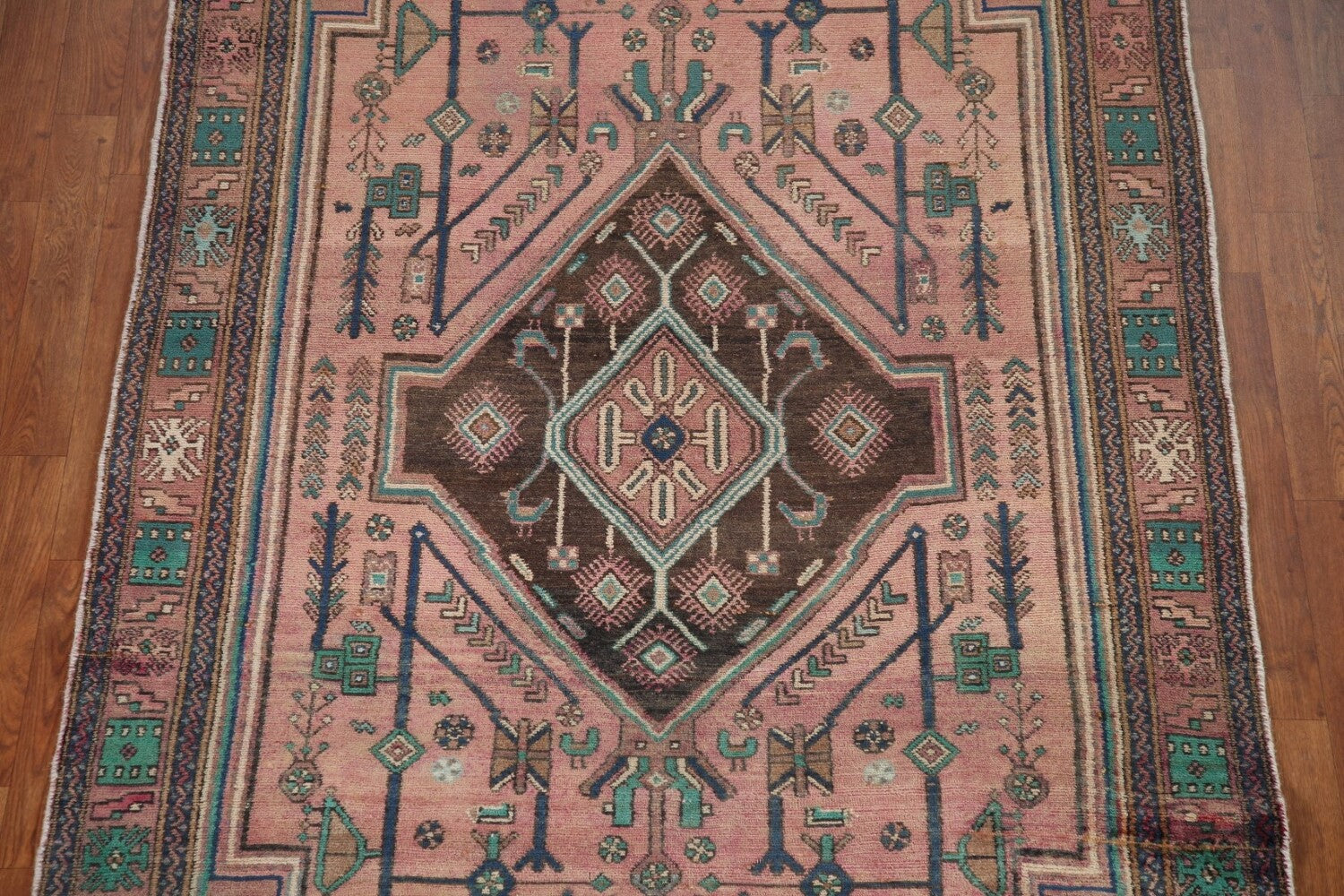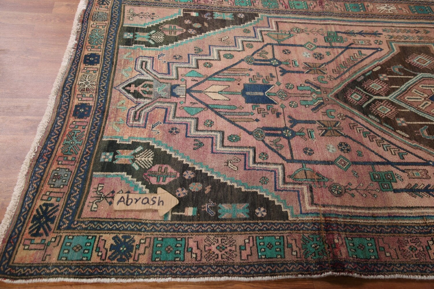A Beautiful Genuine Persia ( Persia ) Ardebil rug is Hand Knotted by skillful weavers in Persia ( Persia ) with 100% Wool Material. This rug is in Very Good (Low Pile-Abrash) condition. dimensions are 10' 8'' X 4' 7'' in foot and 325 X 140 in centimeter. the primary color is Pink.