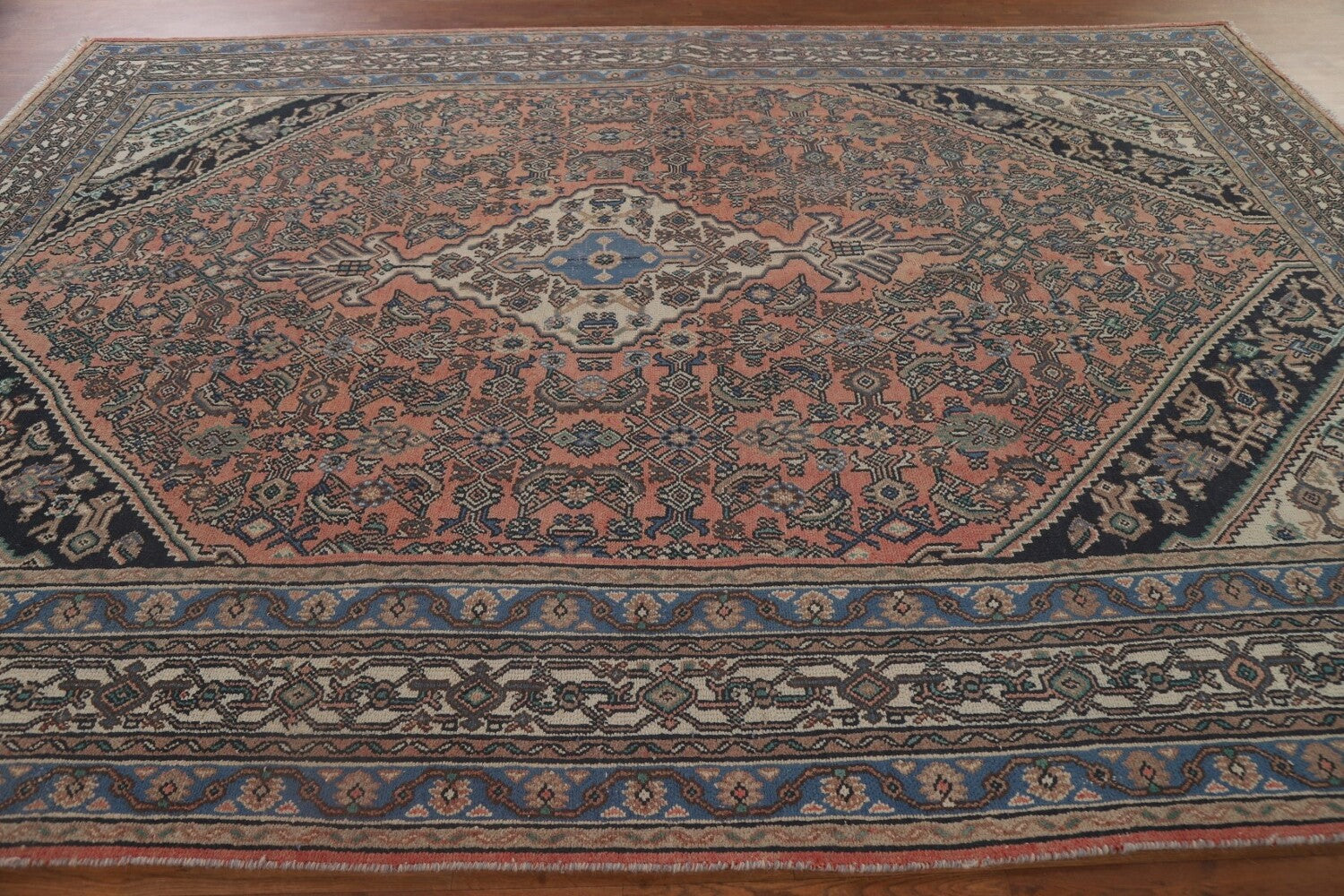 A Beautiful Genuine Persia ( Persia ) Hamedan rug is Hand Knotted by skillful weavers in Persia ( Persia ) with 100% Wool Material. This rug is in Very Good (Evenly Low Pile) condition. dimensions are 11' 4'' X 8' 5'' in foot and 345 X 257 in centimeter. the primary color is Pink.