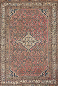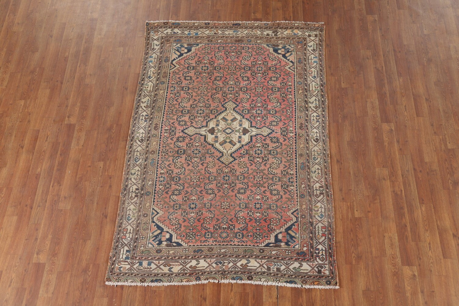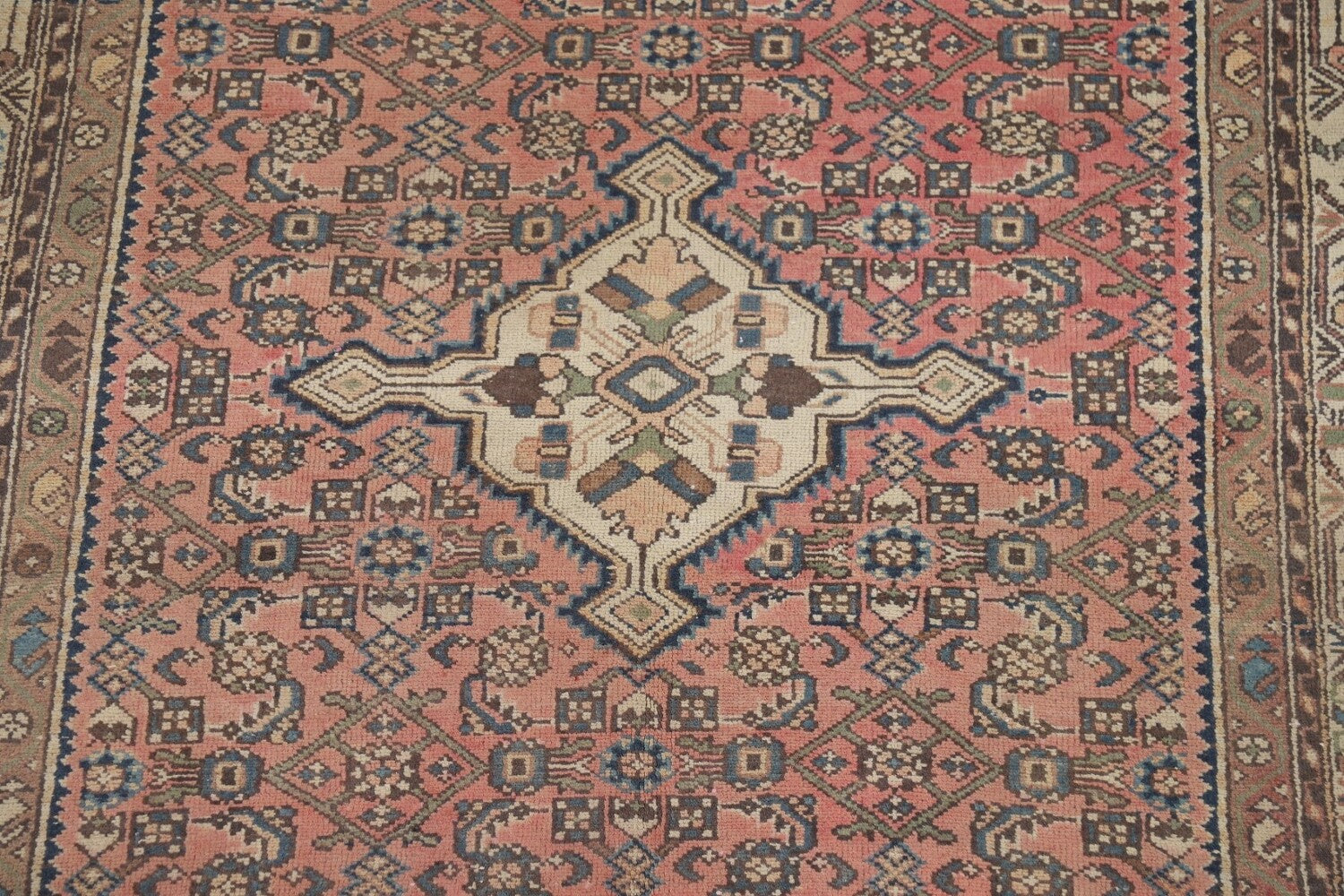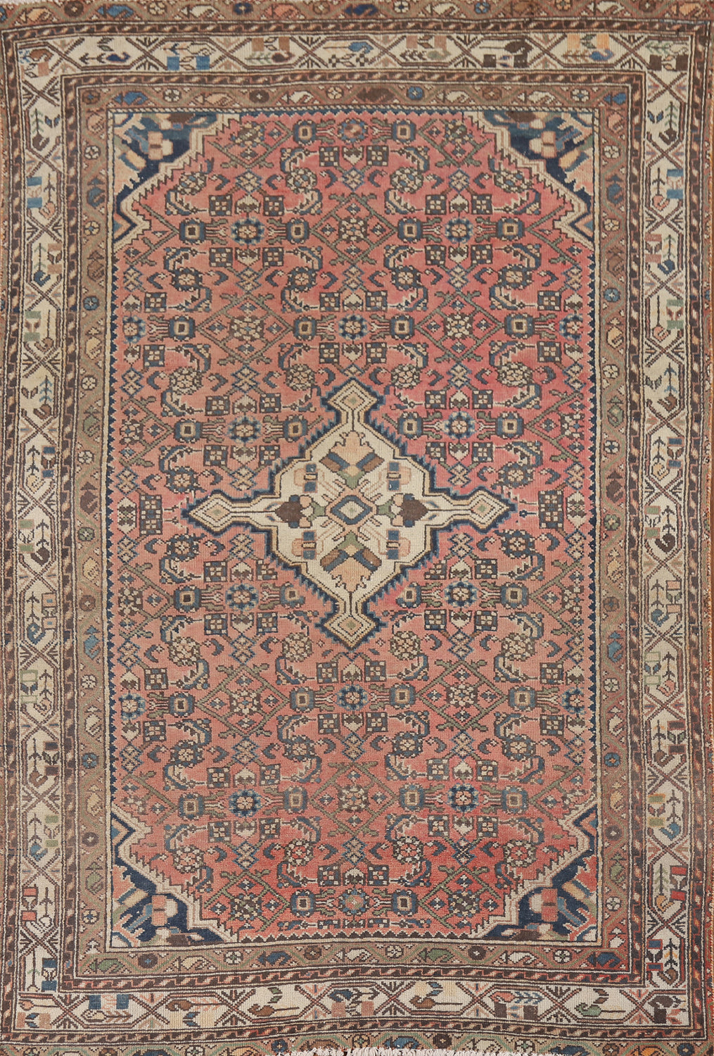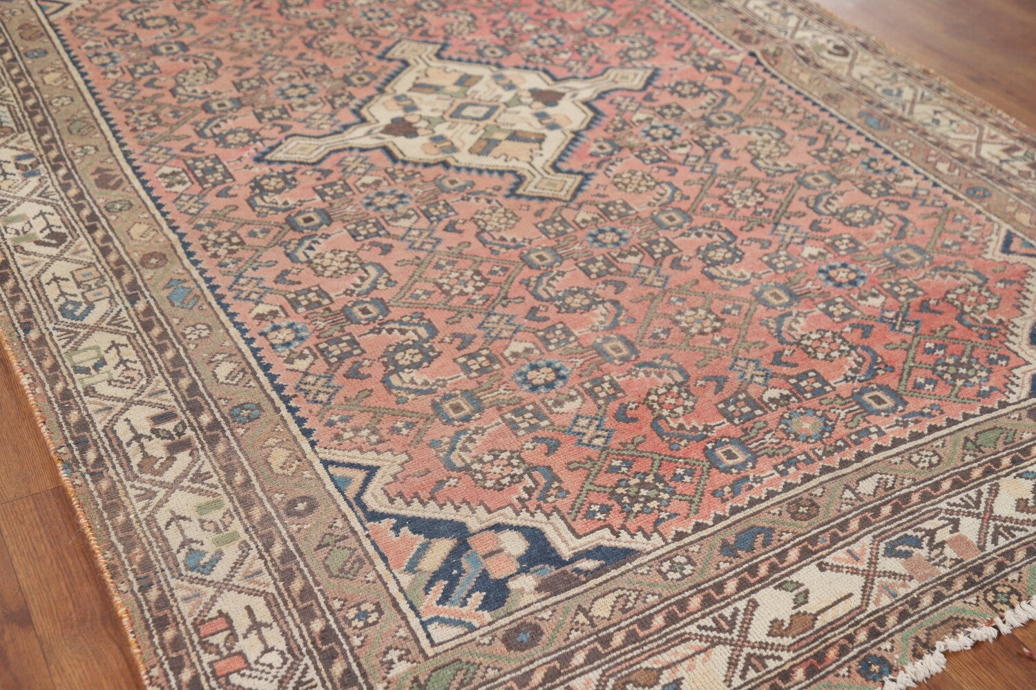 A Beautiful Genuine Persia ( Persia ) Hamedan rug is Hand Knotted by skillful weavers in Persia ( Persia ) with 100% Wool Material. This rug is in Very Good (Evenly Low Pile) condition. dimensions are 6' 10'' X 4' 8'' in foot and 208 X 142 in centimeter. the primary color is Pink.