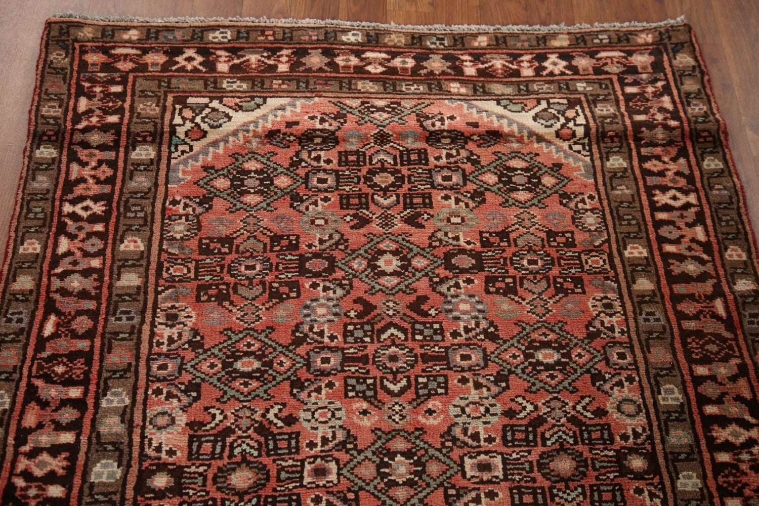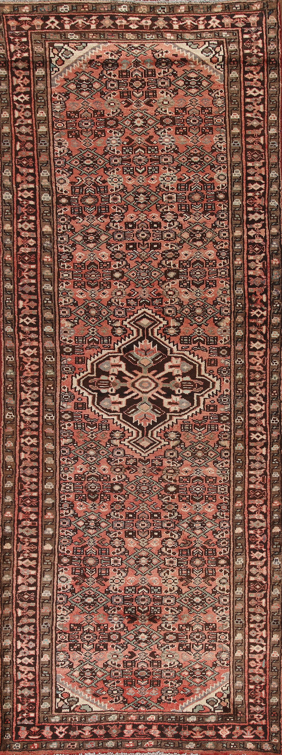Pink Geometric Hamedan Persian Runner Rug 4x10