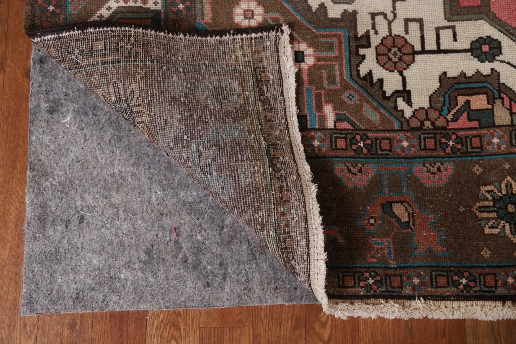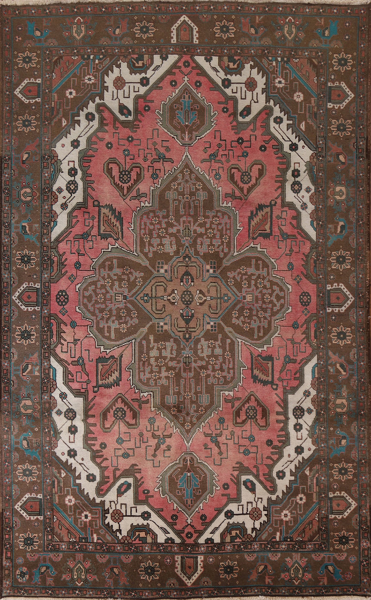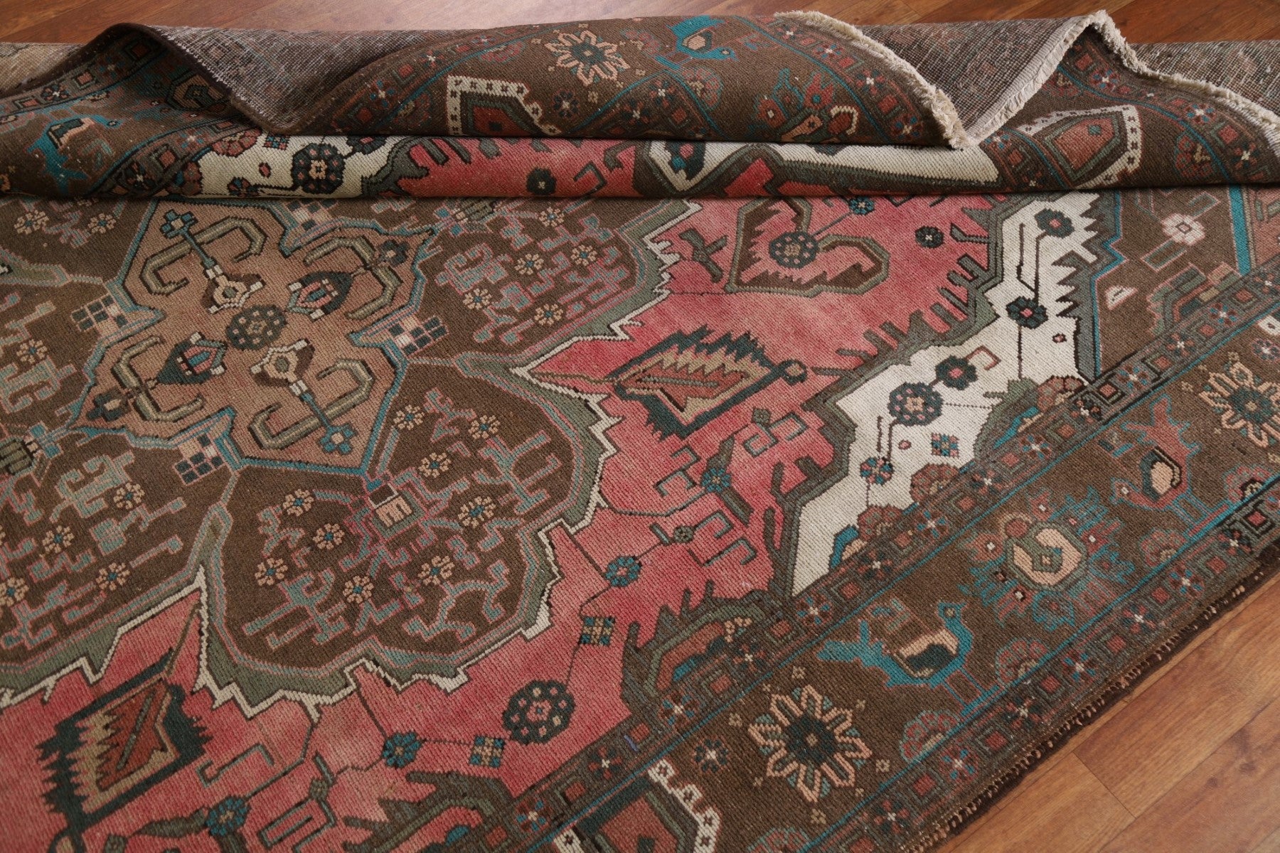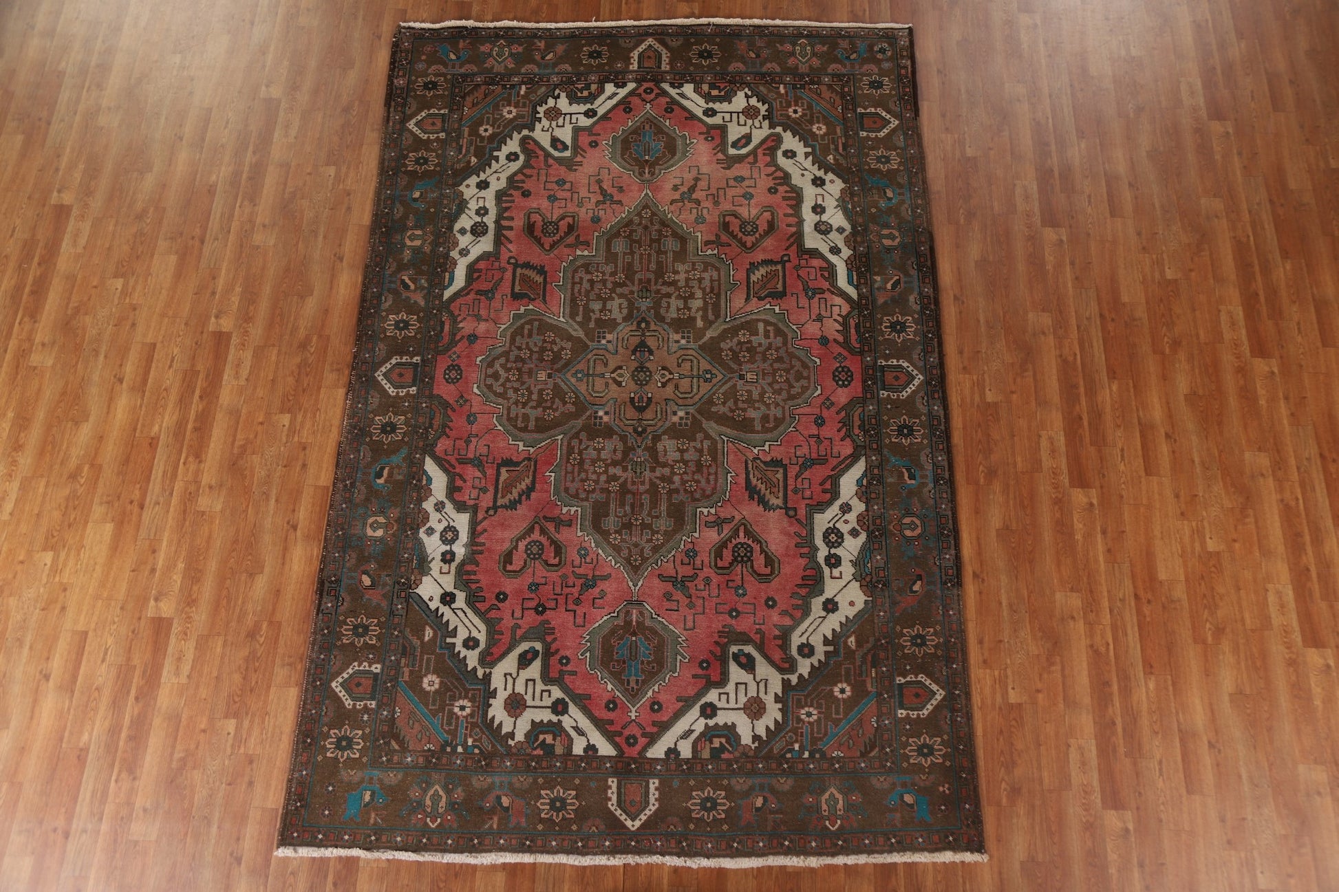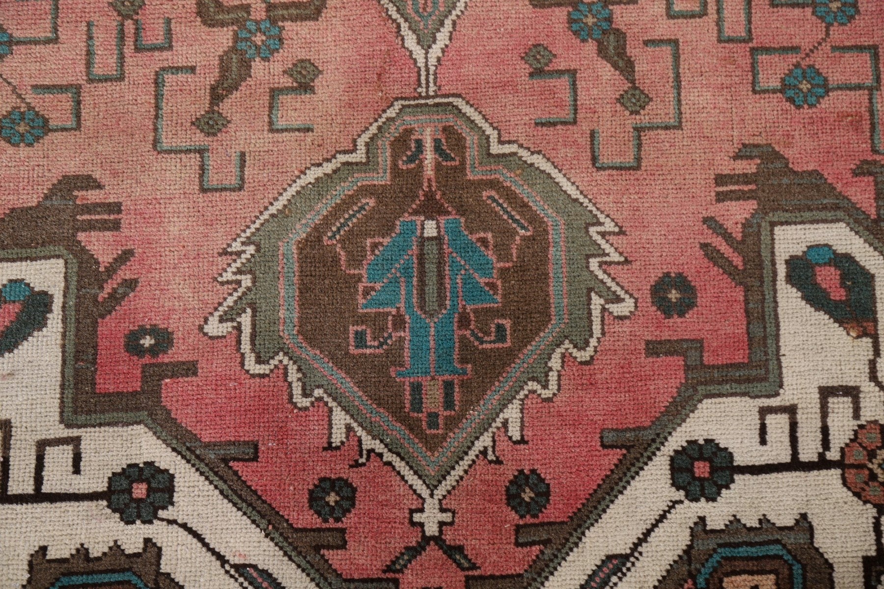 A Beautiful Genuine Persia ( Persia ) Heriz rug is Hand Knotted by skillful weavers in Persia ( Persia ) with 100% Wool Material. This rug is in Very Good ( Low Pile ) condition. dimensions are 10' 0'' X 6' 7'' in foot and 305 X 201 in centimeter. the primary color is Pink.