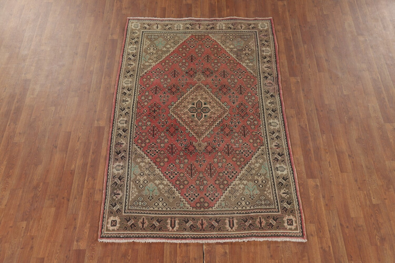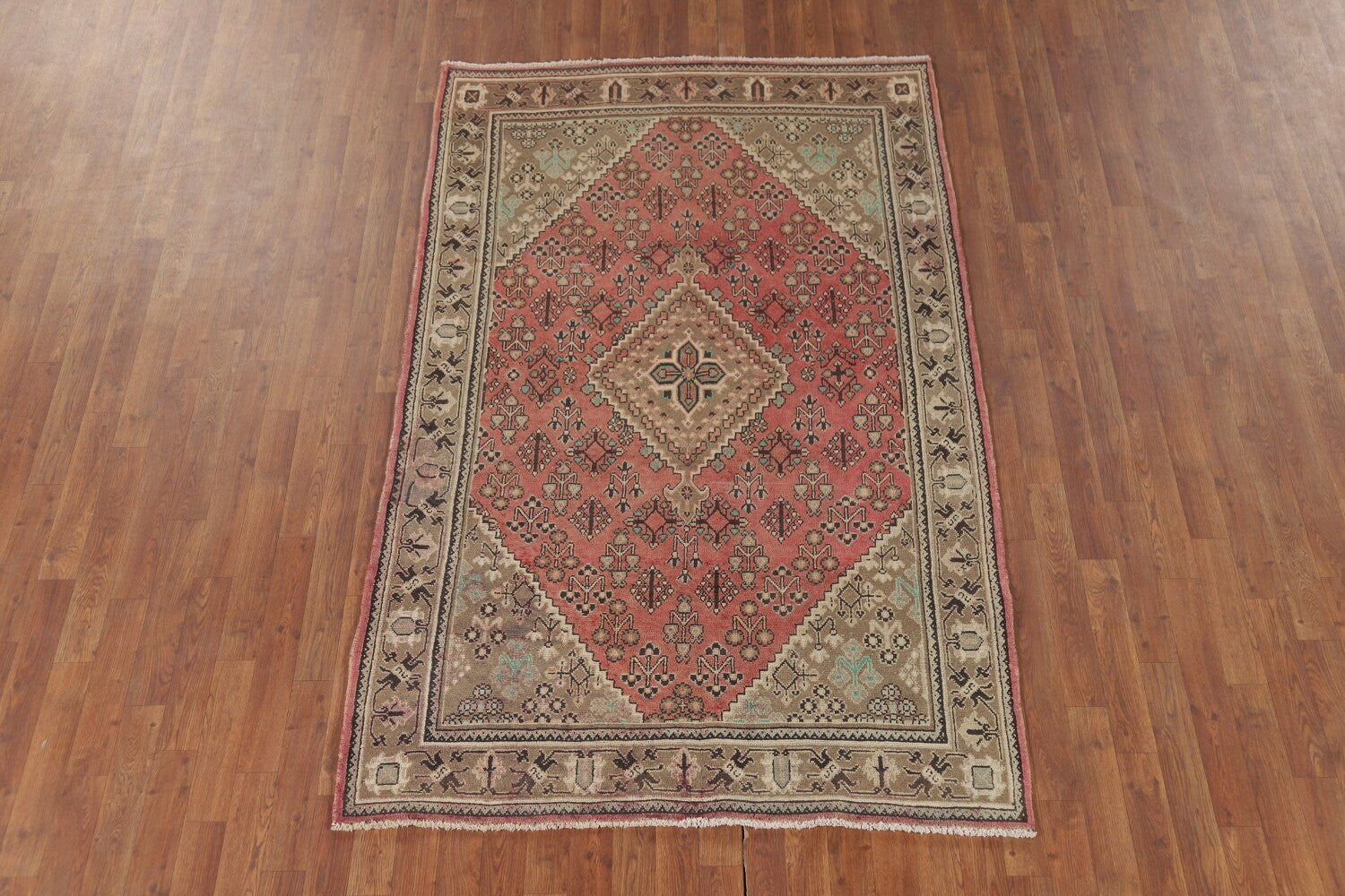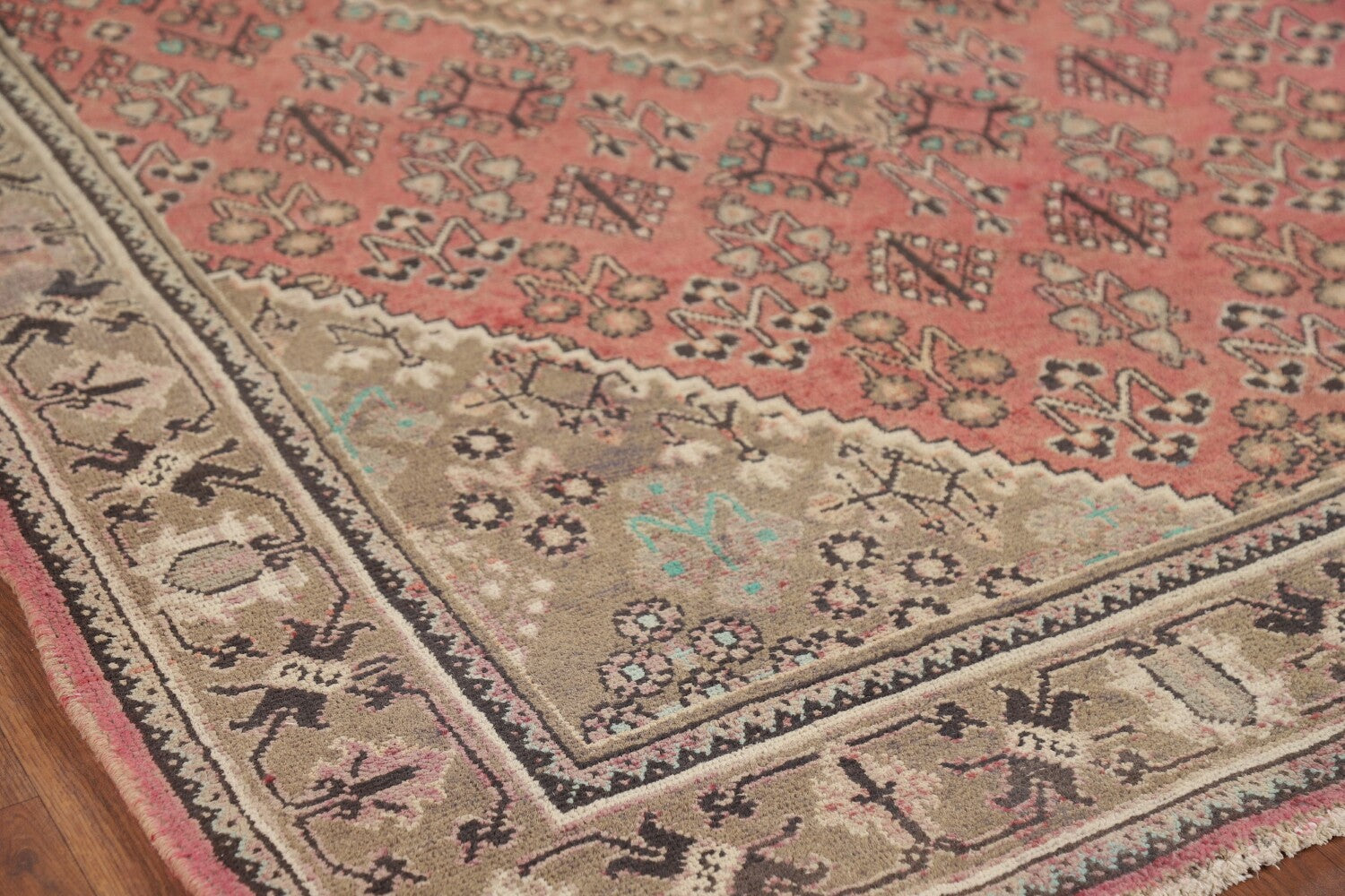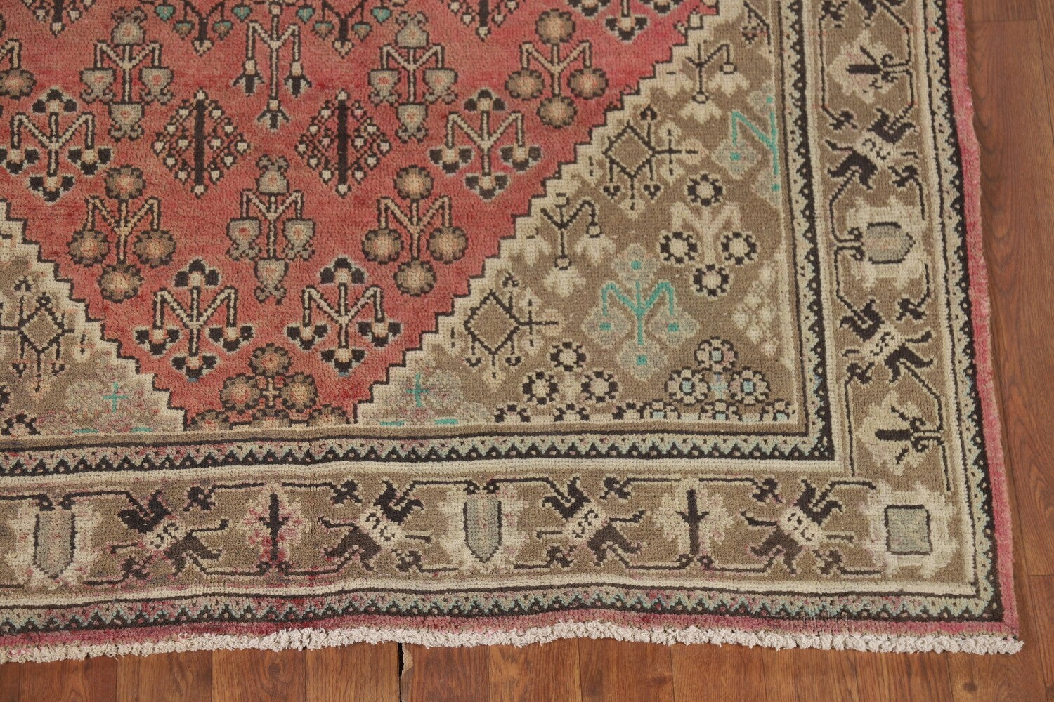A Beautiful Genuine Persia ( Persia ) Joshaghan rug is Hand Knotted by skillful weavers in Persia ( Persia ) with 100% Wool Material. This rug is in Very Good ( Evenly Low Pile-Repair) condition. dimensions are 7' 4'' X 4' 6'' in foot and 224 X 137 in centimeter. the primary color is Pink.