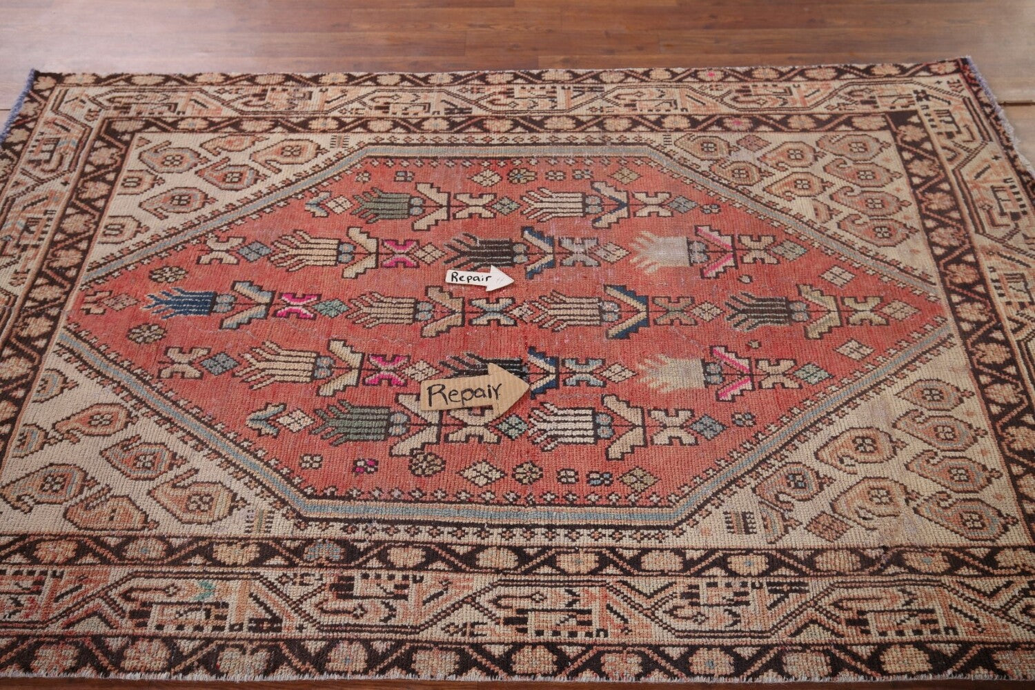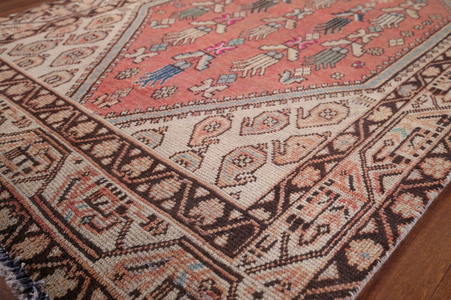 A Beautiful Genuine Persia ( Persia ) Mahal rug is Hand Knotted by skillful weavers in Persia ( Persia ) with 100% Wool Material. This rug is in Very Good ( Evenly Low Pile-Repair) condition. dimensions are 6' 2'' X 3' 11'' in foot and 188 X 119 in centimeter. the primary color is Pink.