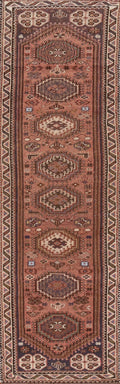 A Beautiful Genuine Persia ( Persia ) Qashqai rug is Hand Knotted by skillful weavers in Persia ( Persia ) with 100% Wool Material. This rug is in Very Good (Evenly Low Pile) condition. dimensions are 9' 3'' X 2' 1'' in foot and 282 X 64 in centimeter. the primary color is Pink.