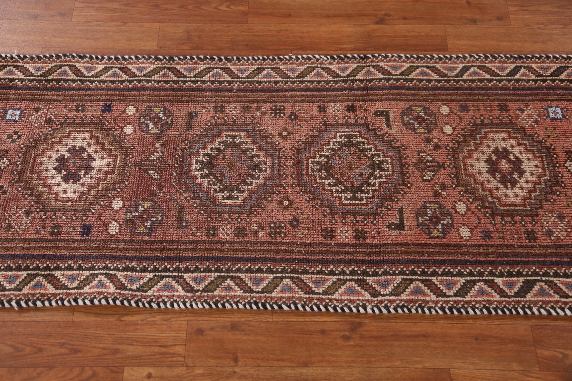 Pink Geometric Qashqai Persian Runner Rug 2x9