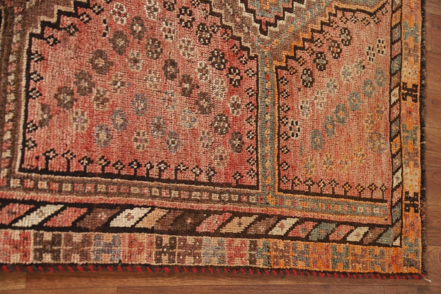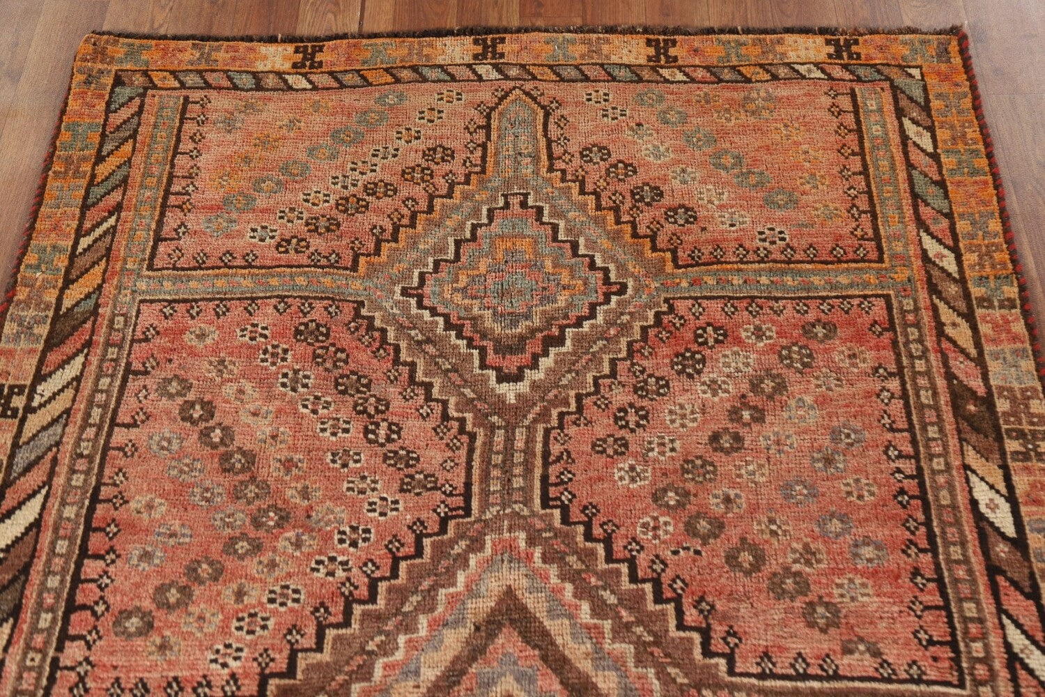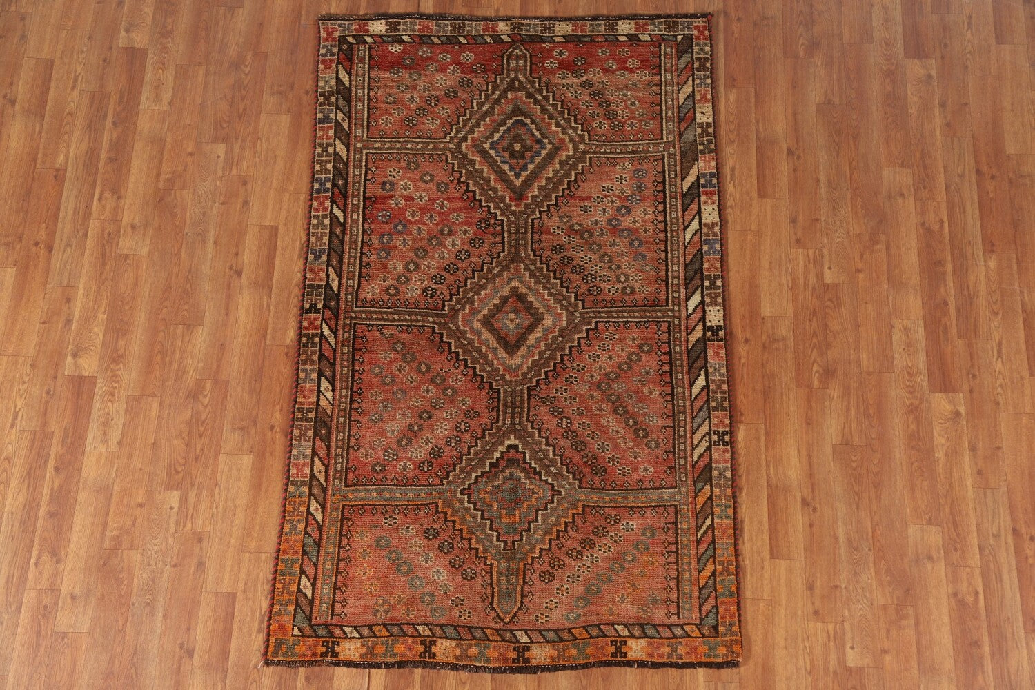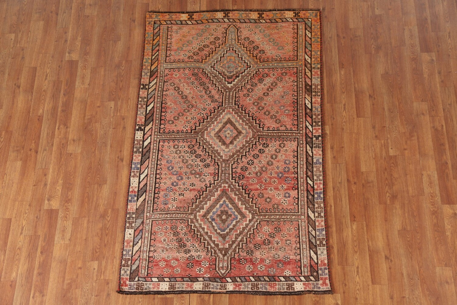 A Beautiful Genuine Persia ( Persia ) Shiraz rug is Hand Knotted by skillful weavers in Persia ( Persia ) with 100% Wool Material. This rug is in Very Good(Evenly Low Pile) condition. dimensions are 6' 0'' X 3' 8'' in foot and 183 X 112 in centimeter. the primary color is Pink.