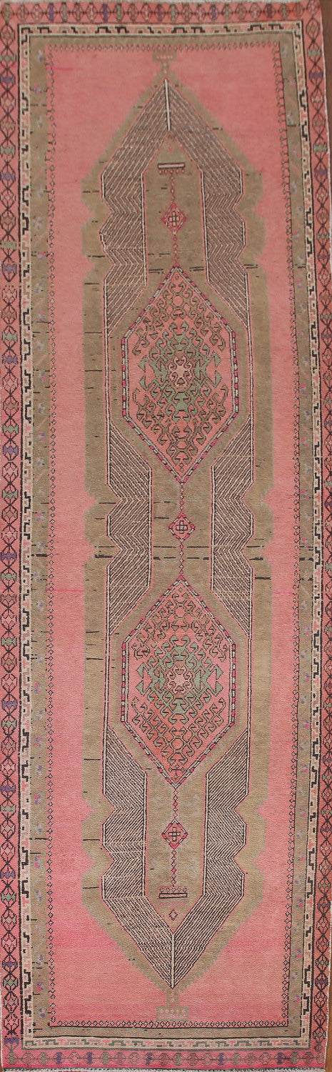 Pink Geometric Sirjan Persian Runner Rug 3x12