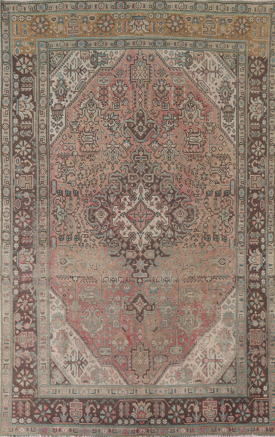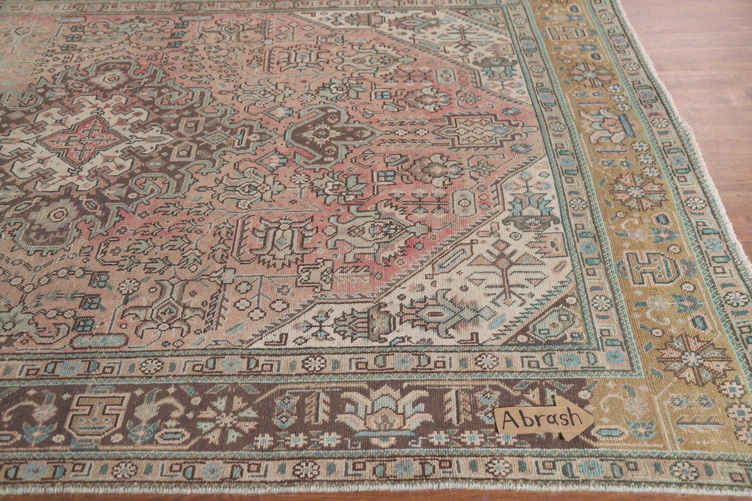 A Beautiful Genuine Persia ( Persia ) Tabriz rug is Hand Knotted by skillful weavers in Persia ( Persia ) with 100% Wool Material. This rug is in Very Good (Low Pile-Abrash) condition. dimensions are 9' 6'' X 6' 4'' in foot and 290 X 193 in centimeter. the primary color is Pink.