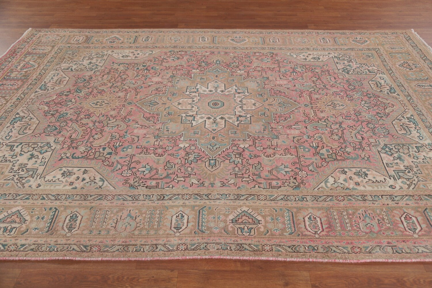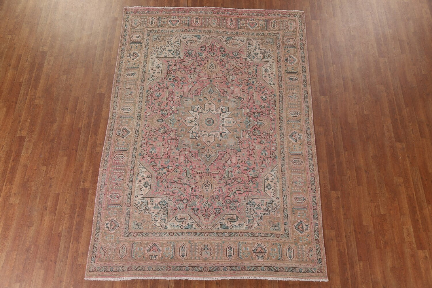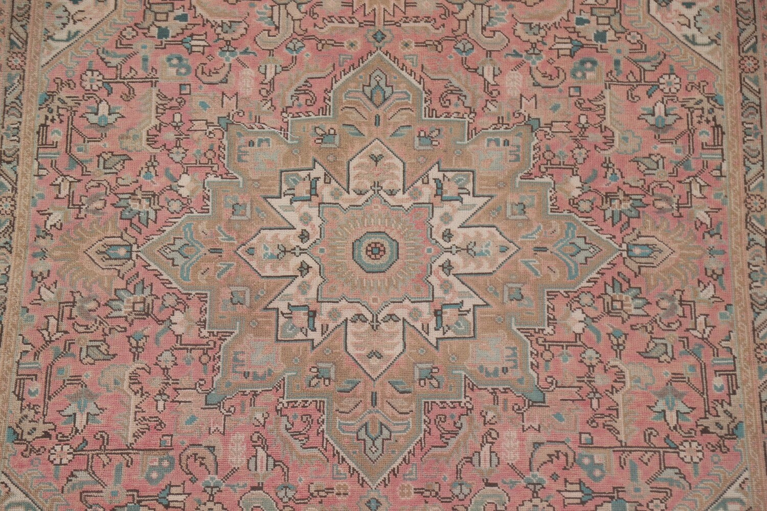 A Beautiful Genuine Persia ( Persia ) Tabriz rug is Hand Knotted by skillful weavers in Persia ( Persia ) with 100% Wool Material. This rug is in Very Good condition. dimensions are 9' 6'' X 6' 6'' in foot and 290 X 198 in centimeter. the primary color is Pink.