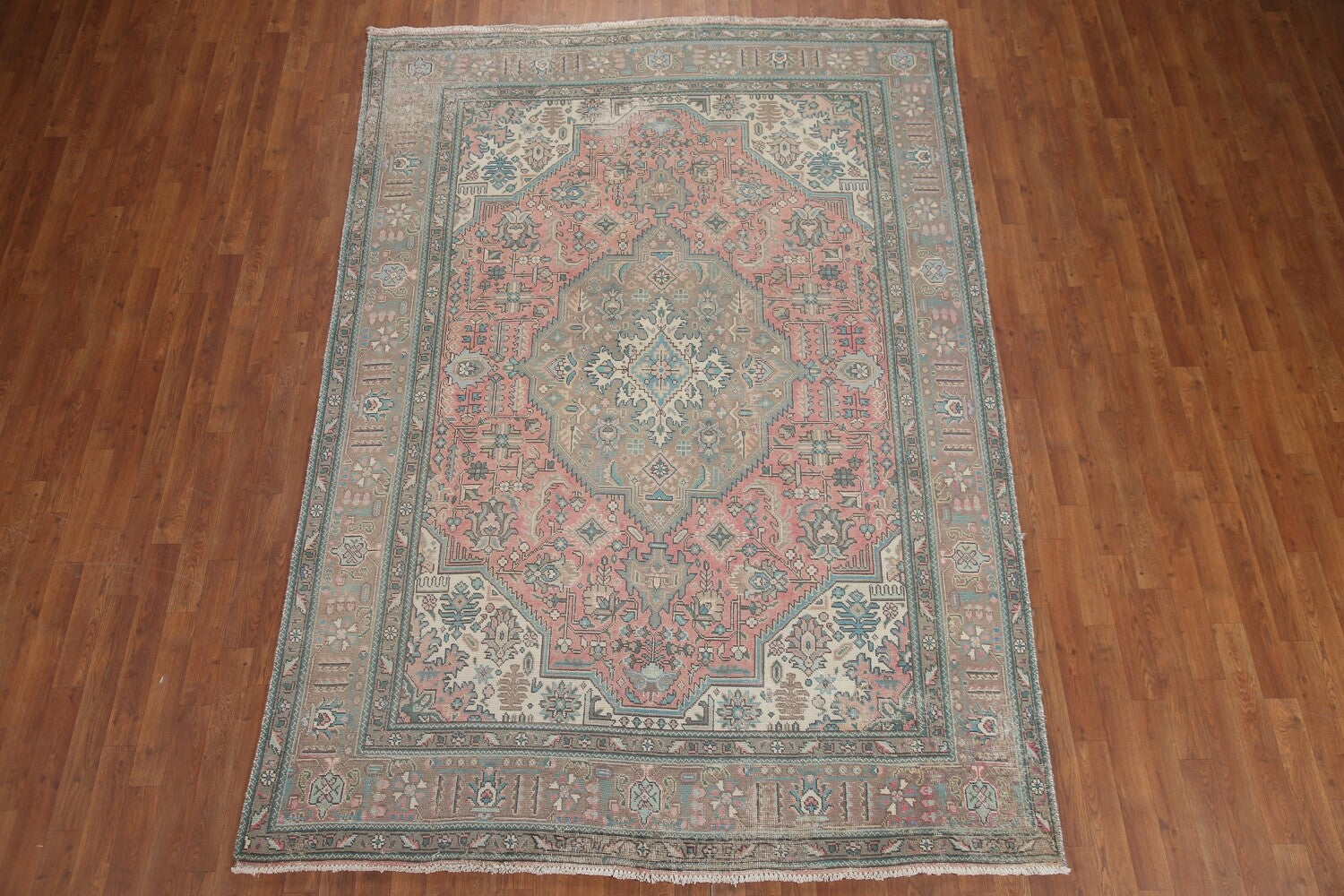 A Beautiful Genuine Persia ( Persia ) Tabriz rug is Hand Knotted by skillful weavers in Persia ( Persia ) with 100% Wool Material. This rug is in Very Good (Evenly Low Pile) condition. dimensions are 9' 7'' X 6' 7'' in foot and 292 X 201 in centimeter. the primary color is Pink.