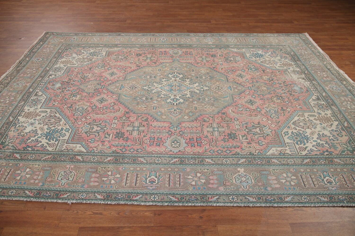 Pink Geometric Tabriz Persian Area Rug 7x10