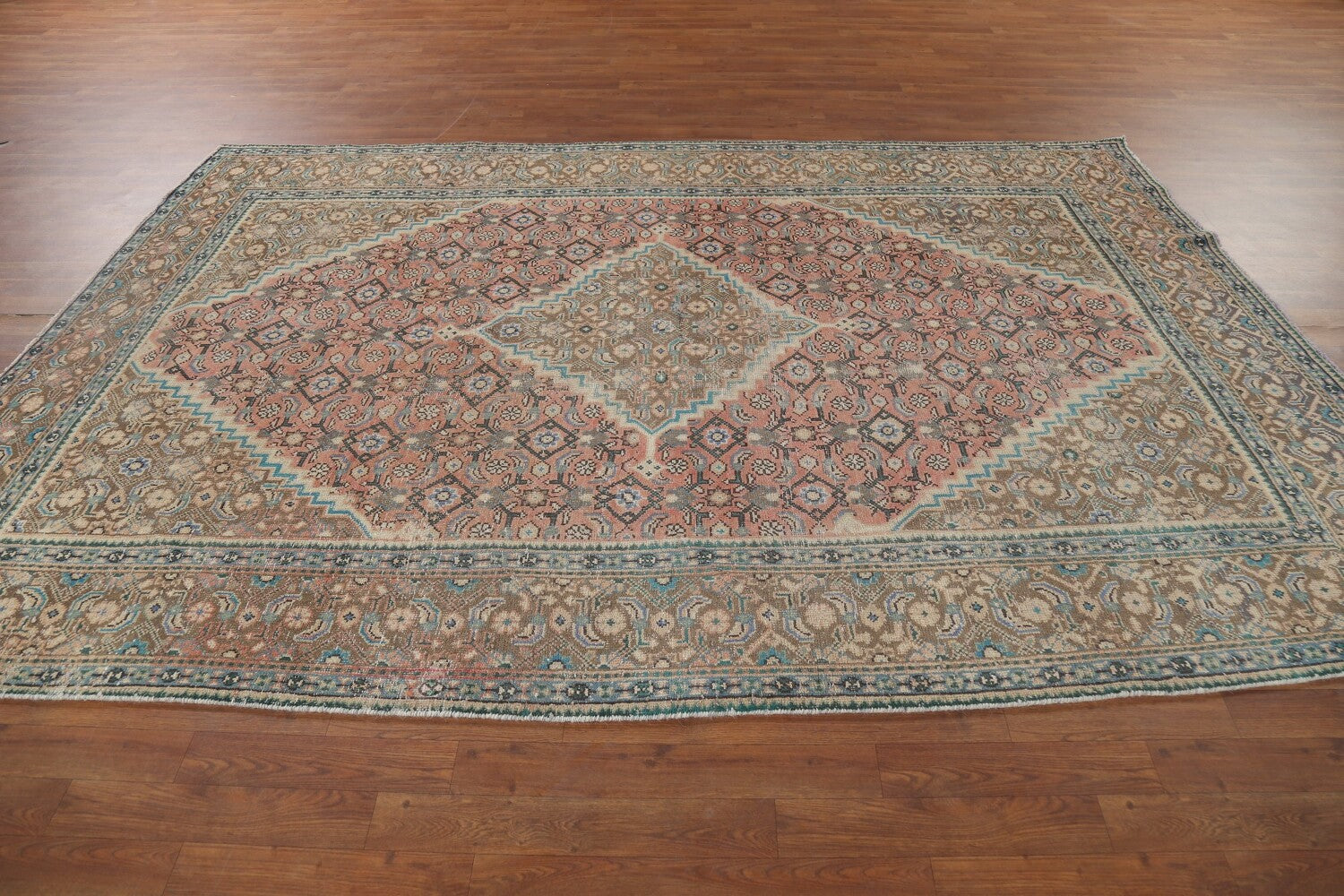 Pink Geometric Tabriz Persian Area Rug 7x10