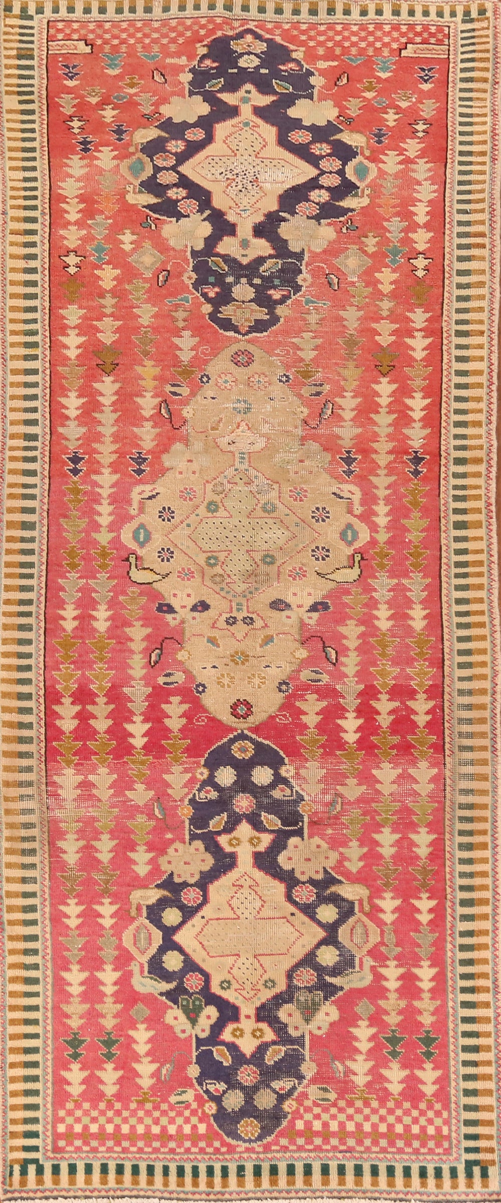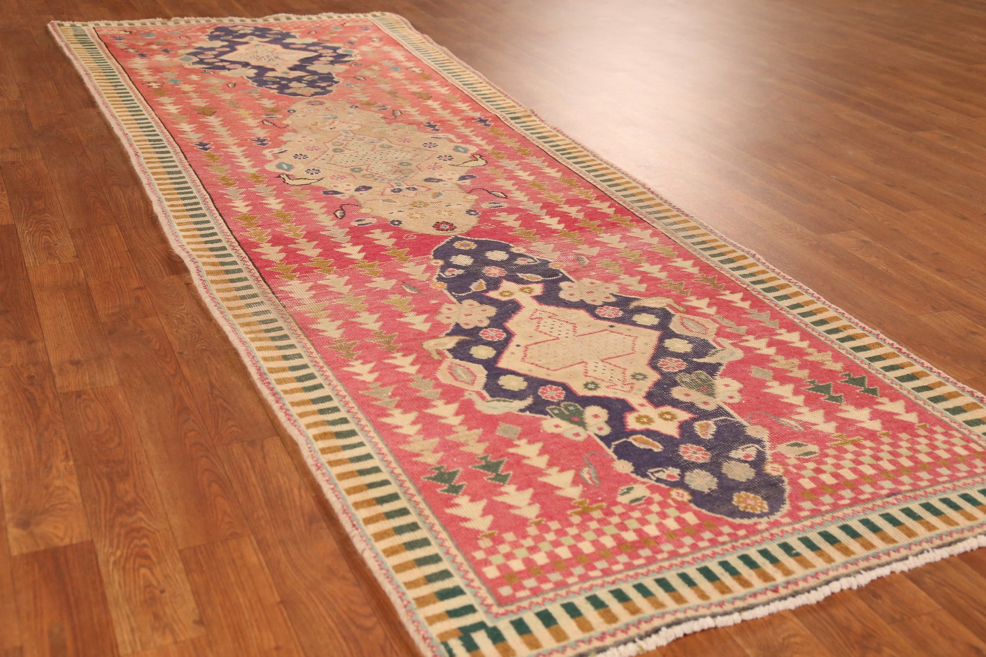 Pink Geometric Tabriz Persian Runner Rug 3x10