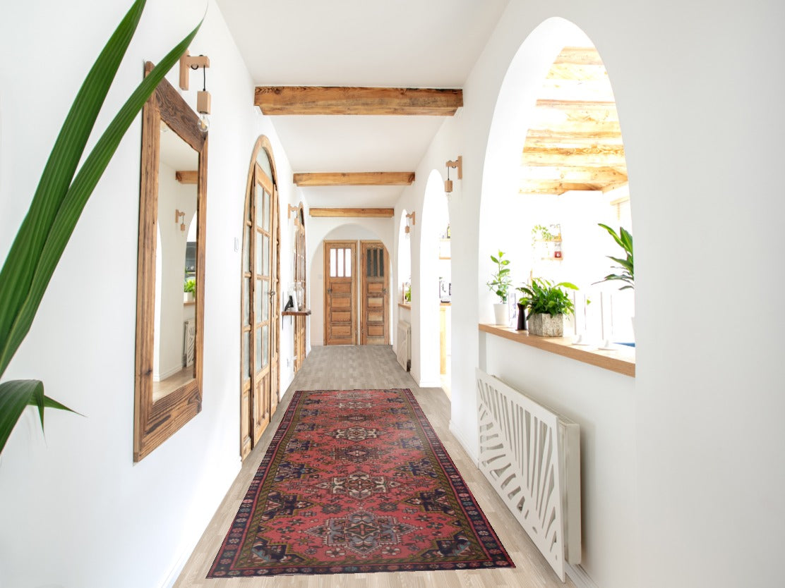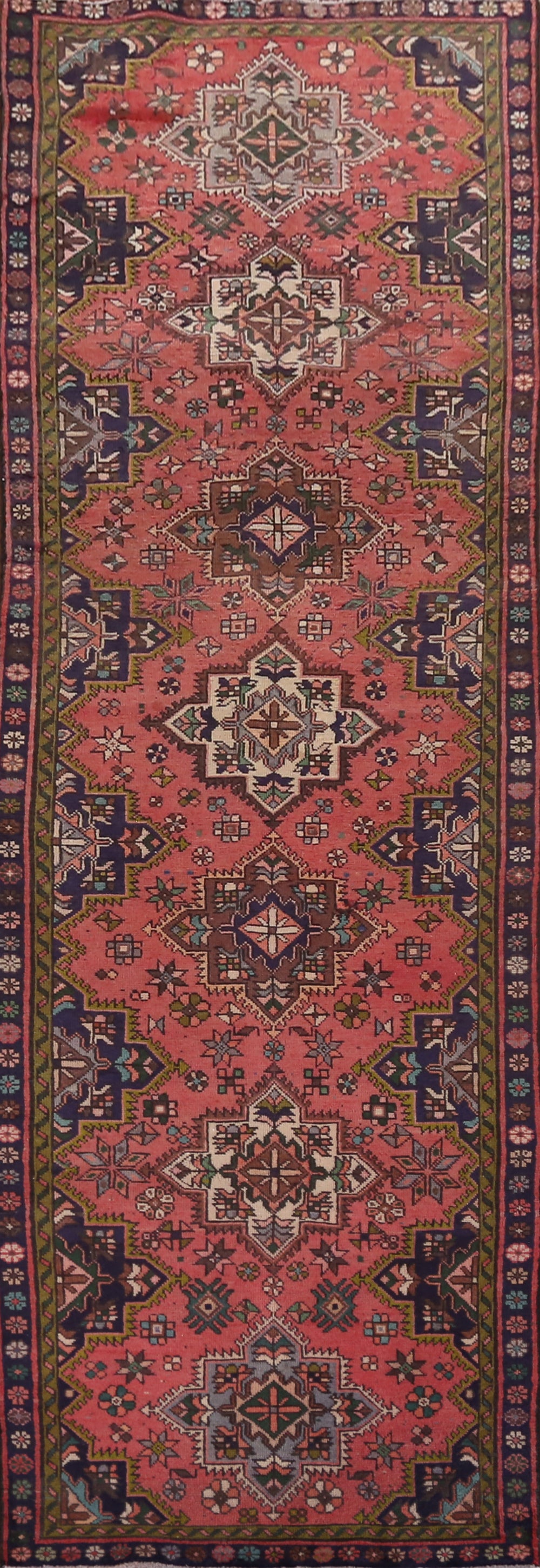 Pink Geometric Tabriz Persian Runner Rug 3x12
