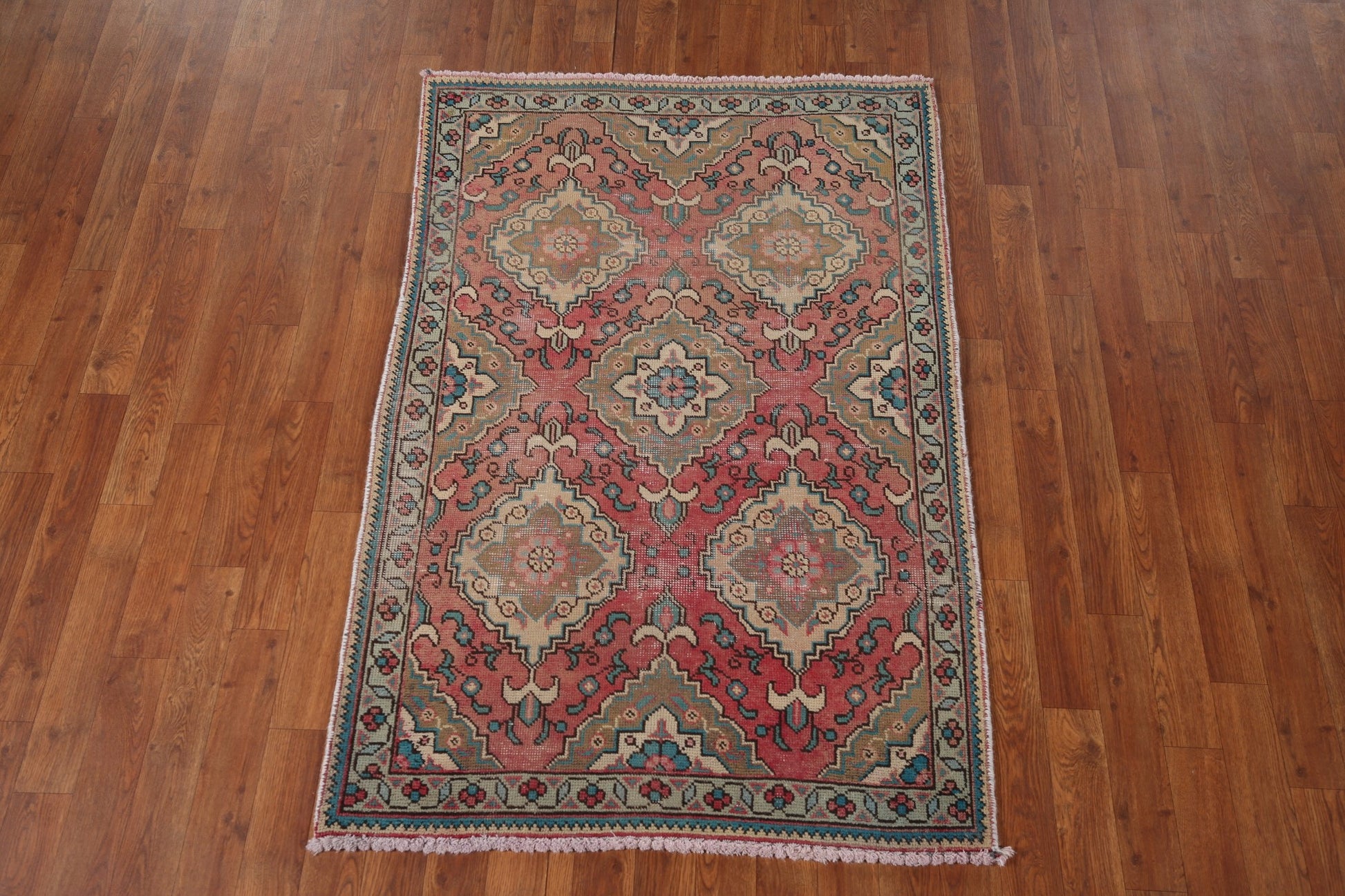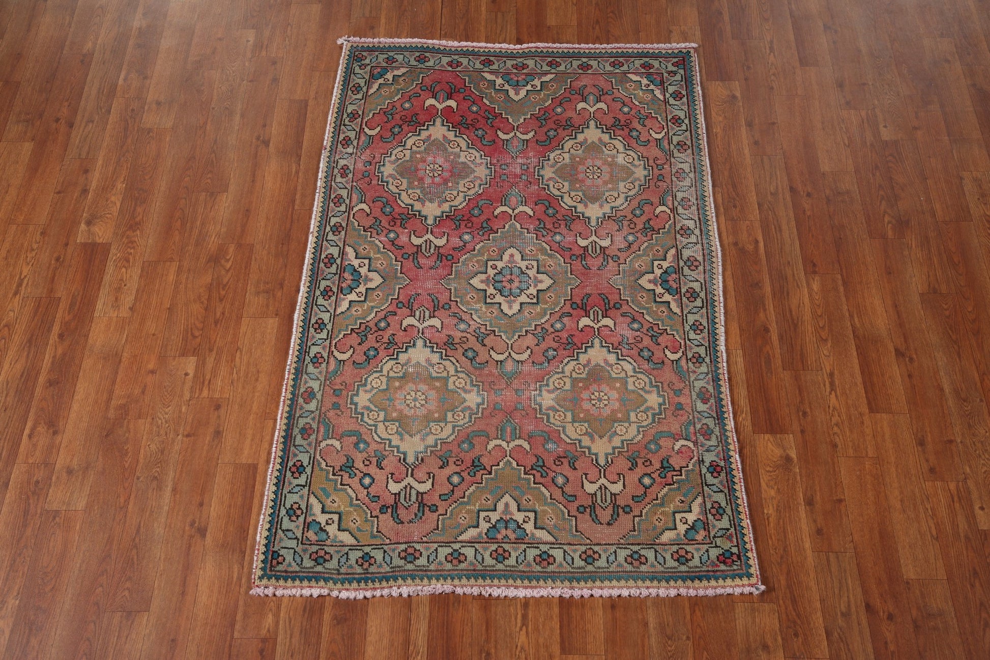 Pink Geometric Wool Tabriz Persian Accent Rug 3x5