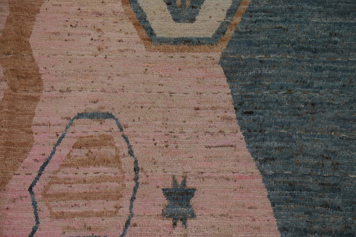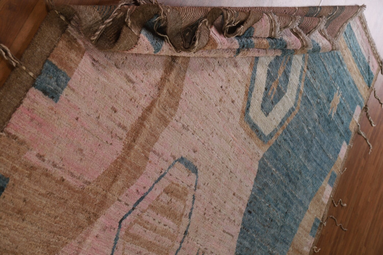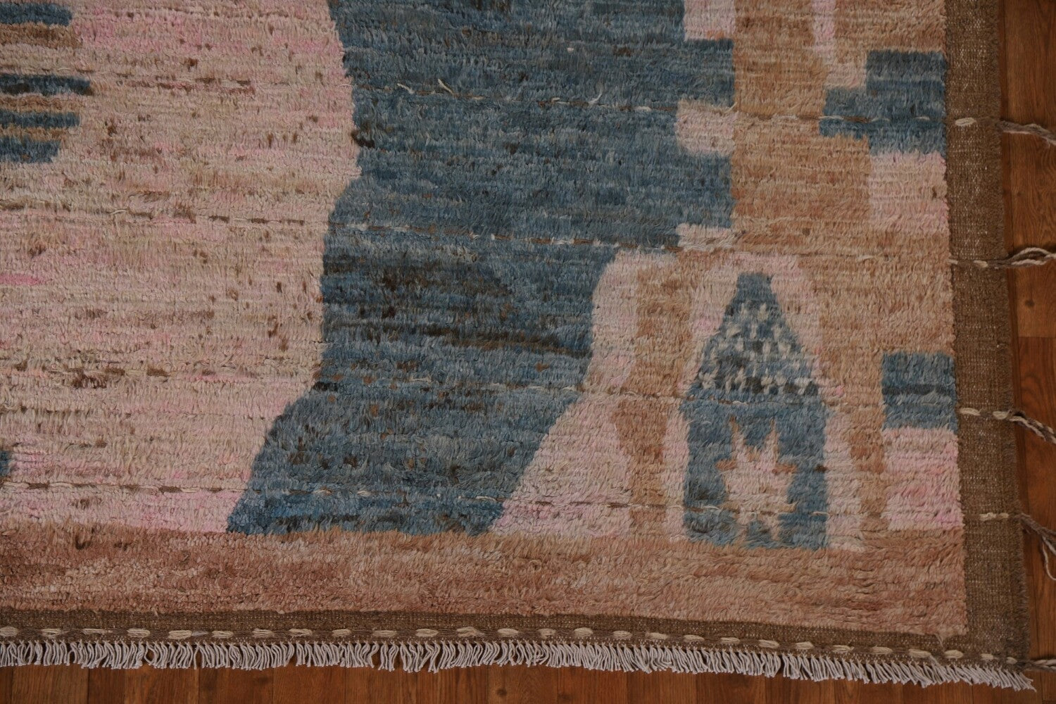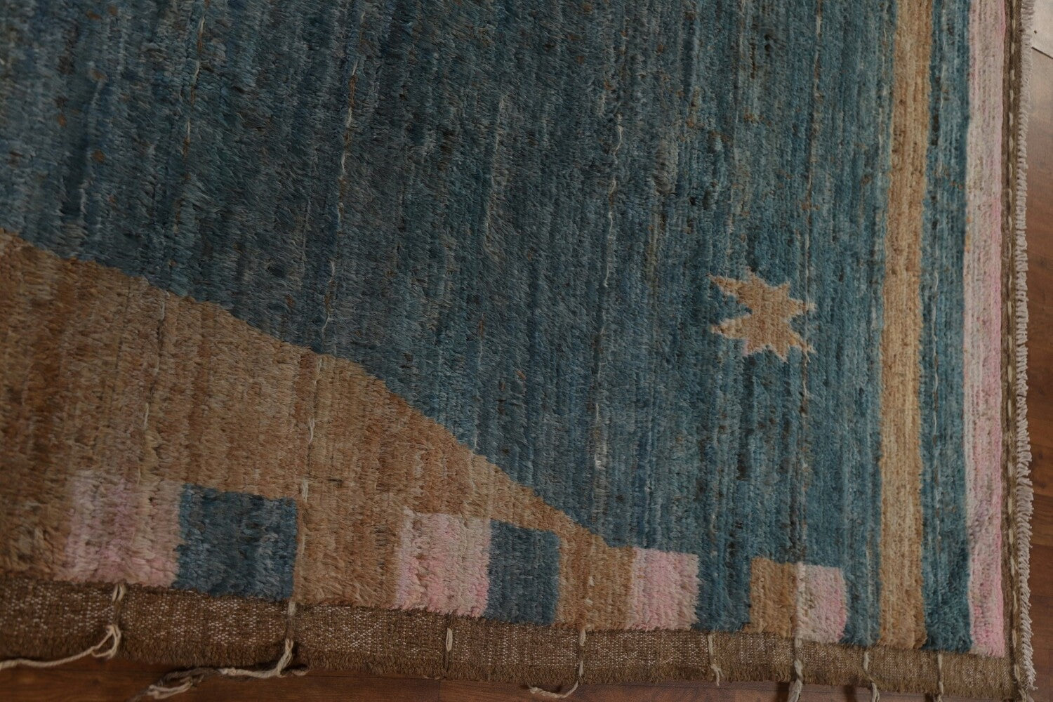 A Beautiful Genuine Pakistan Moroccan rug is Hand Knotted by skillful weavers in Pakistan with 100% Wool Material. This rug is in condition. dimensions are 9' 9'' X 8' 0'' in foot and 297 X 244 in centimeter. the primary color is Pink.