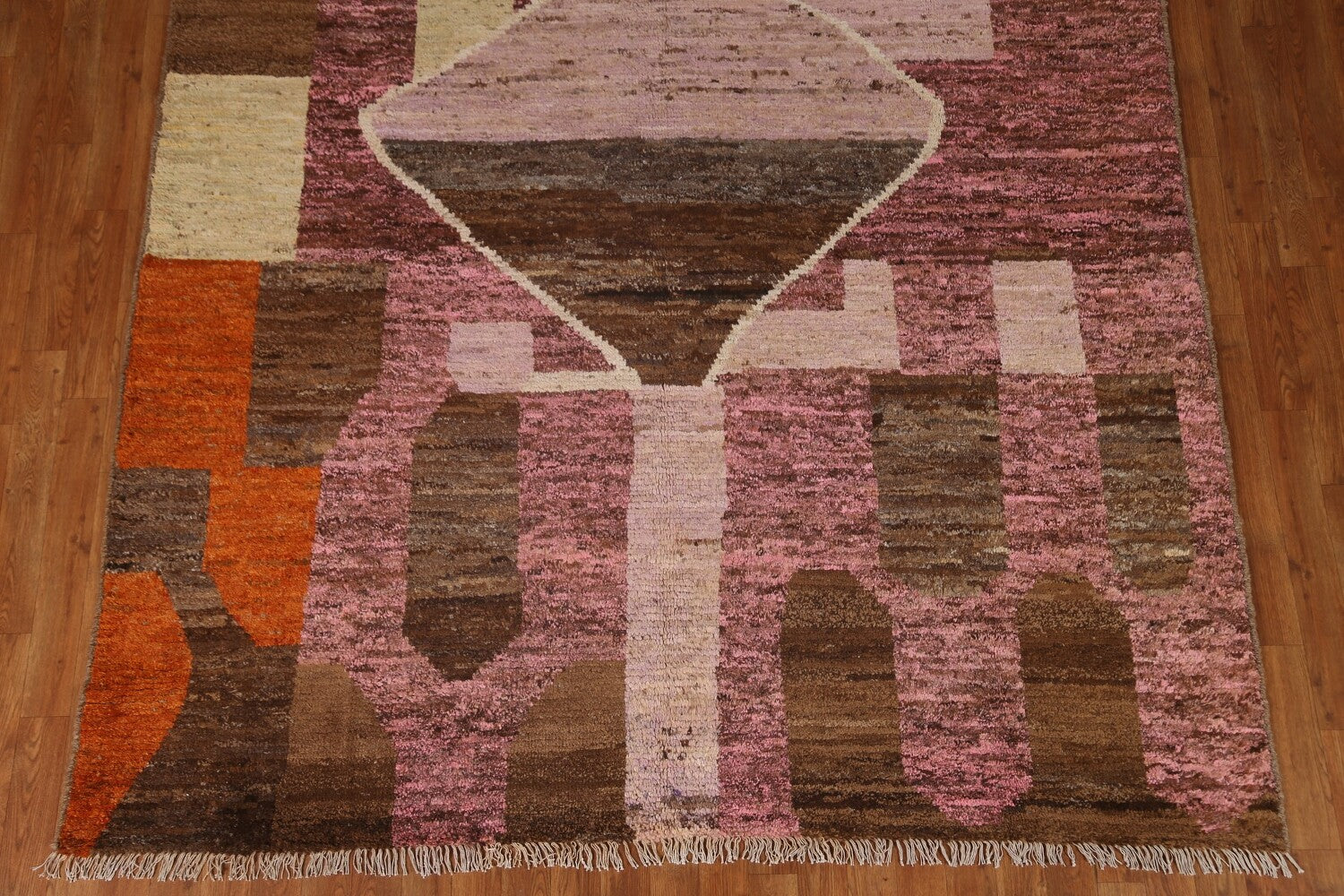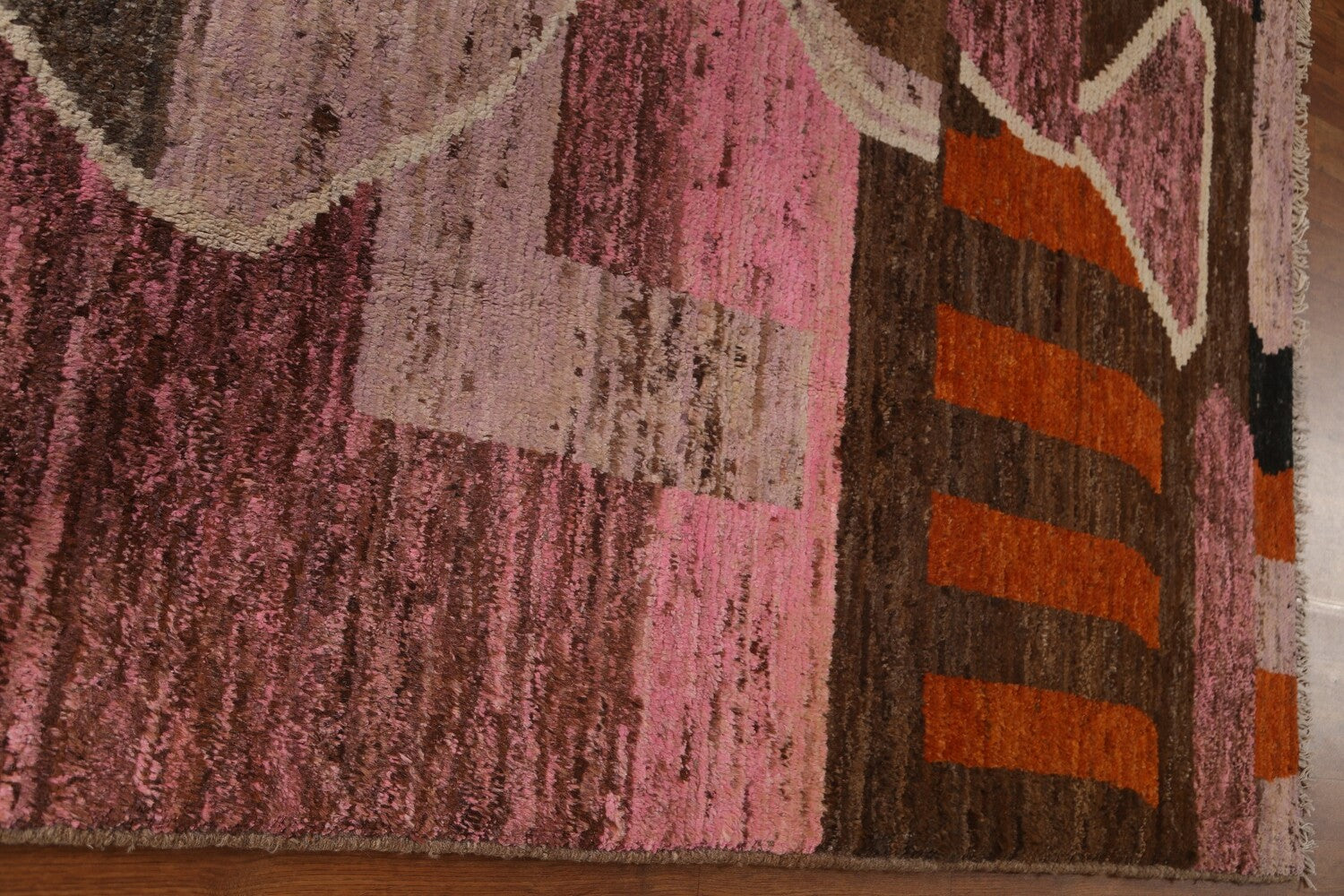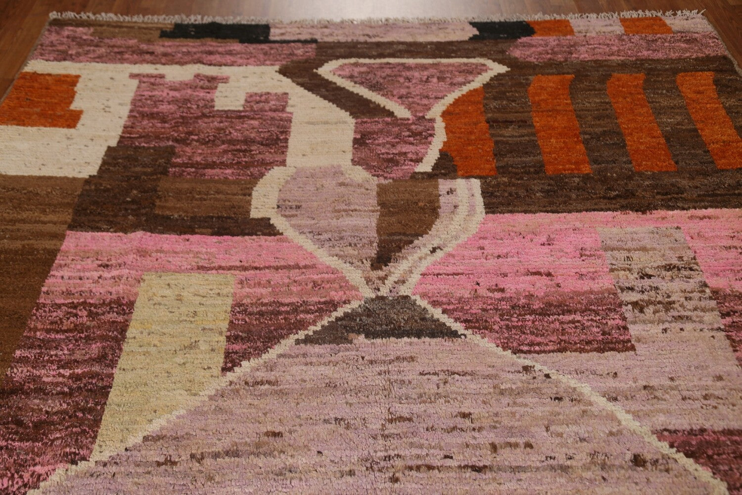 A Beautiful Genuine Pakistan Moroccan rug is Hand Knotted by skillful weavers in Pakistan with 100% Wool Material. This rug is in condition. dimensions are 9' 10'' X 6' 9'' in foot and 300 X 206 in centimeter. the primary color is Pink.