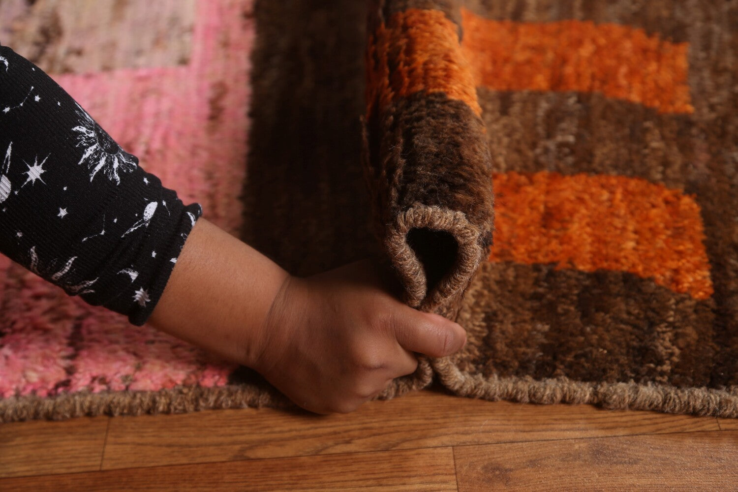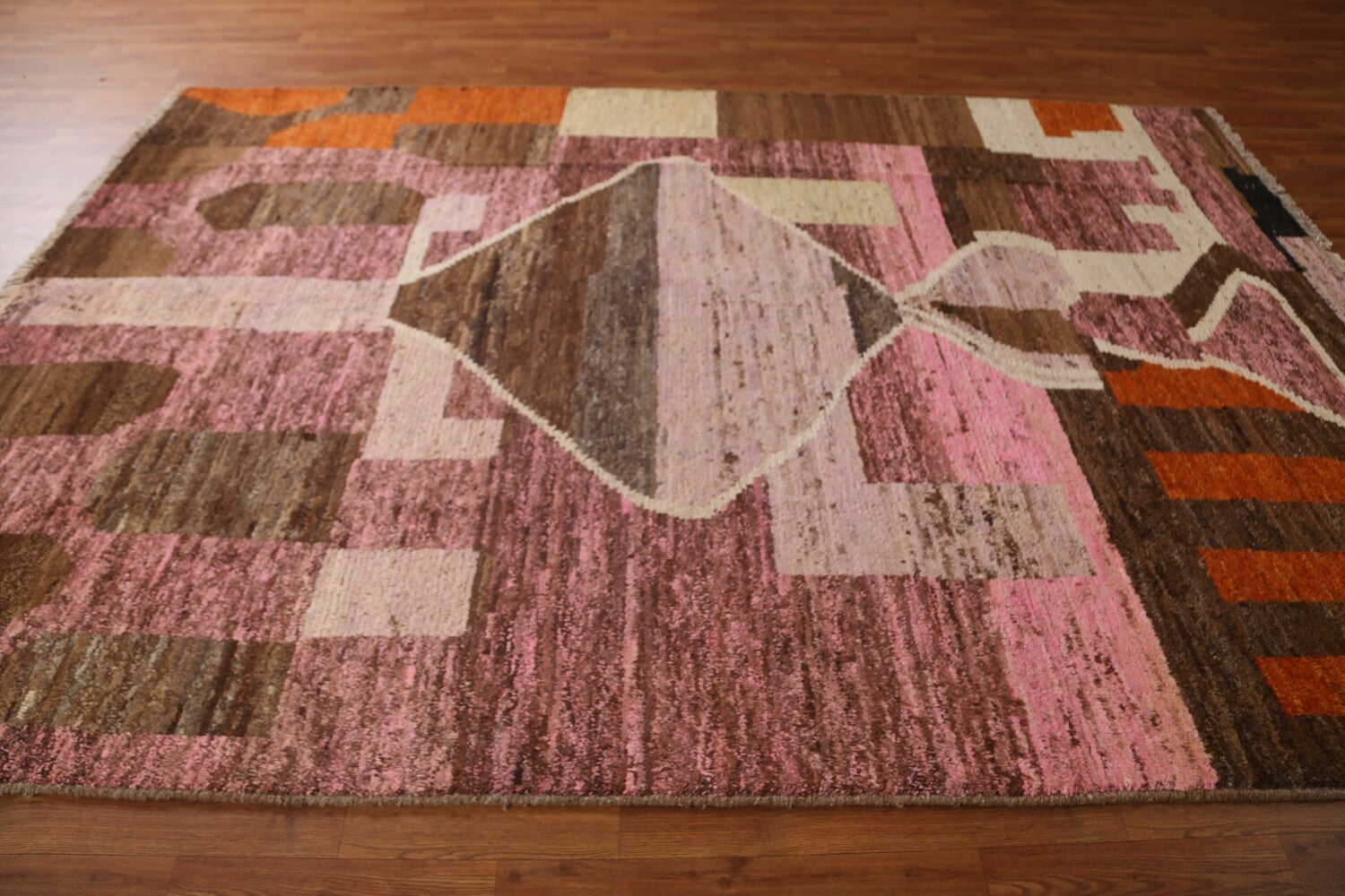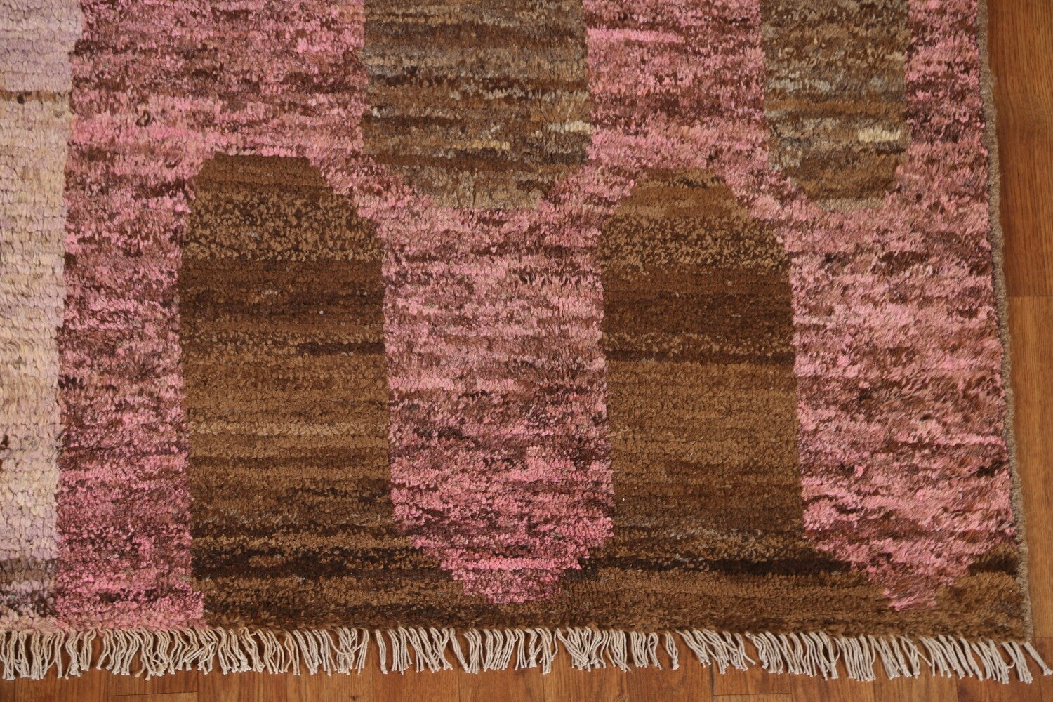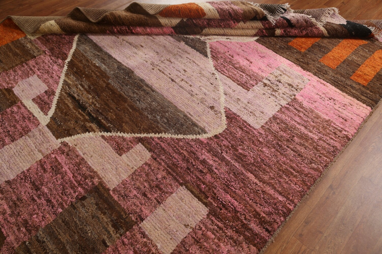 A Beautiful Genuine Pakistan Moroccan rug is Hand Knotted by skillful weavers in Pakistan with 100% Wool Material. This rug is in condition. dimensions are 9' 10'' X 6' 9'' in foot and 300 X 206 in centimeter. the primary color is Pink.