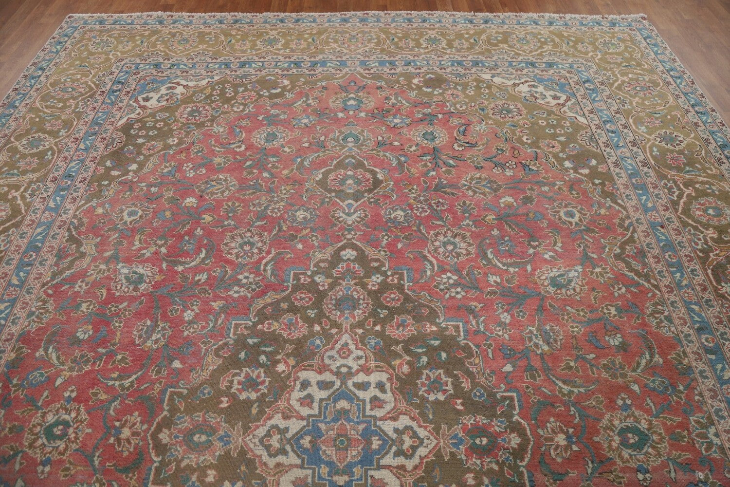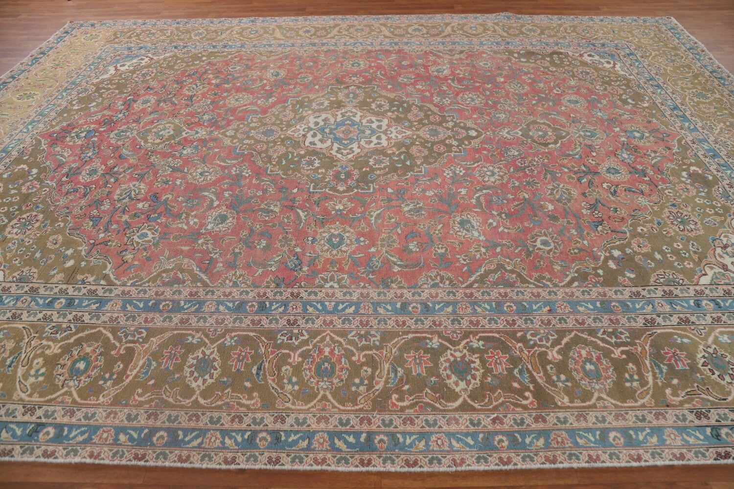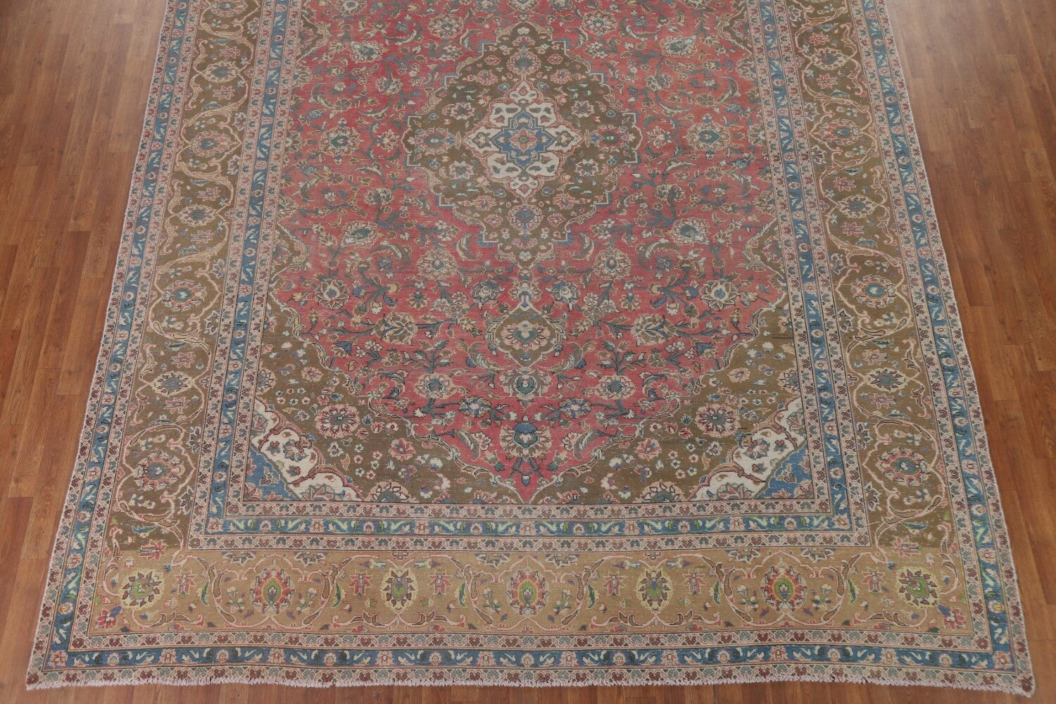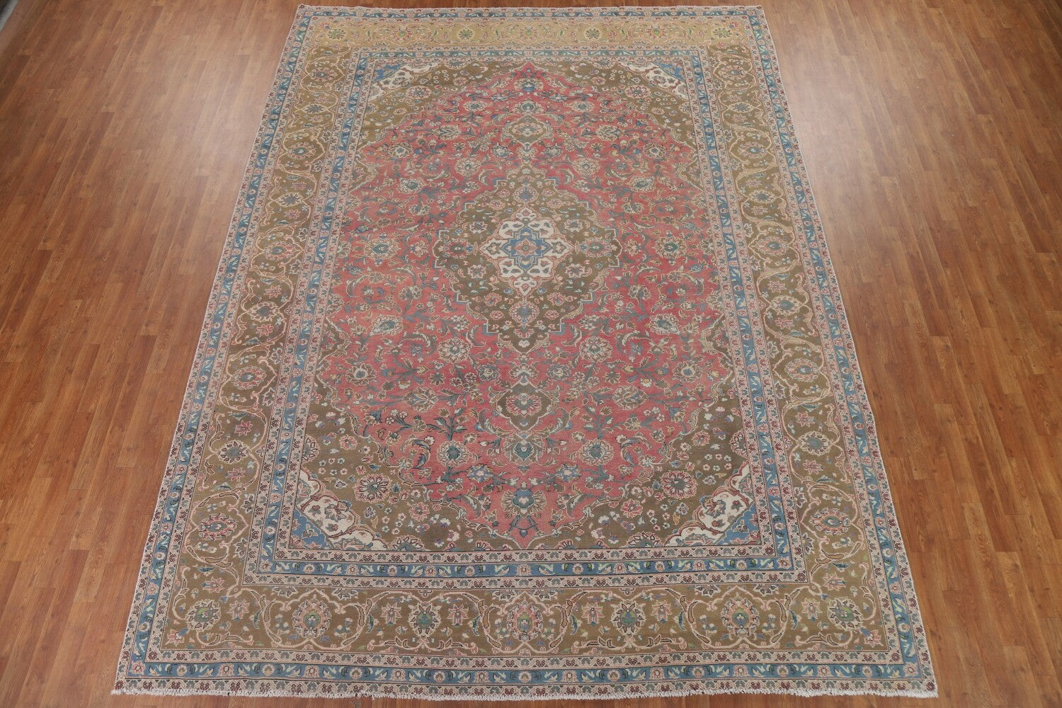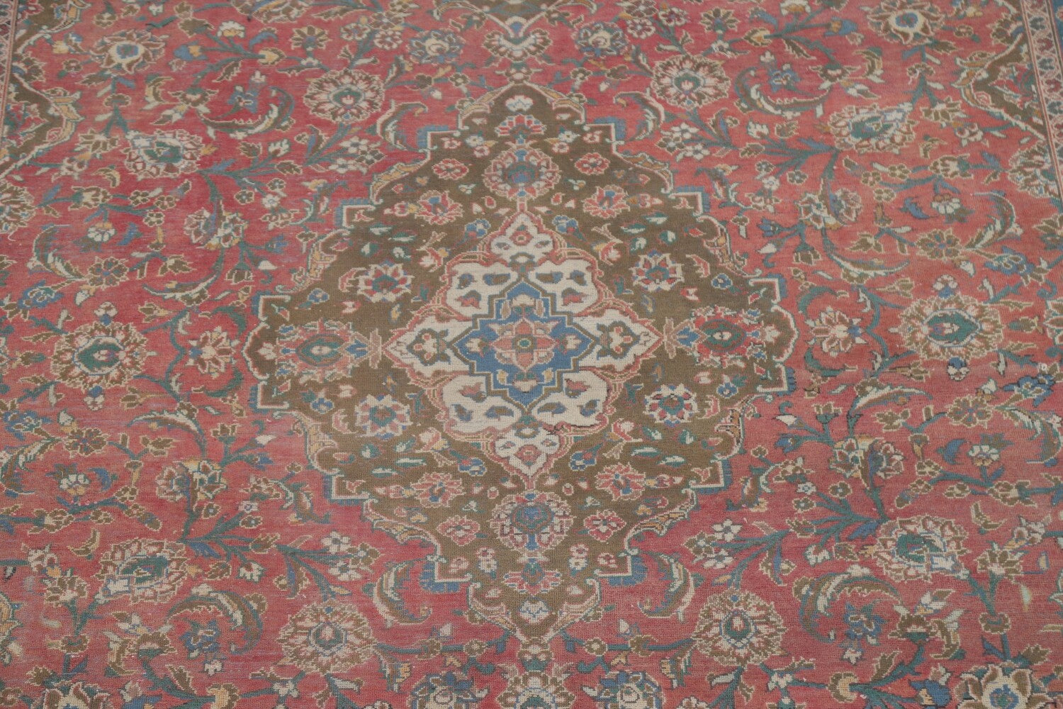 A Beautiful Genuine Persia ( Persia ) Kashan rug is Hand Knotted by skillful weavers in Persia ( Persia ) with 100% Wool Material. This rug is in Very Good (Evenly Low Pile-Abrash) condition. dimensions are 12' 10'' X 9' 7'' in foot and 391 X 292 in centimeter. the primary color is Pink.