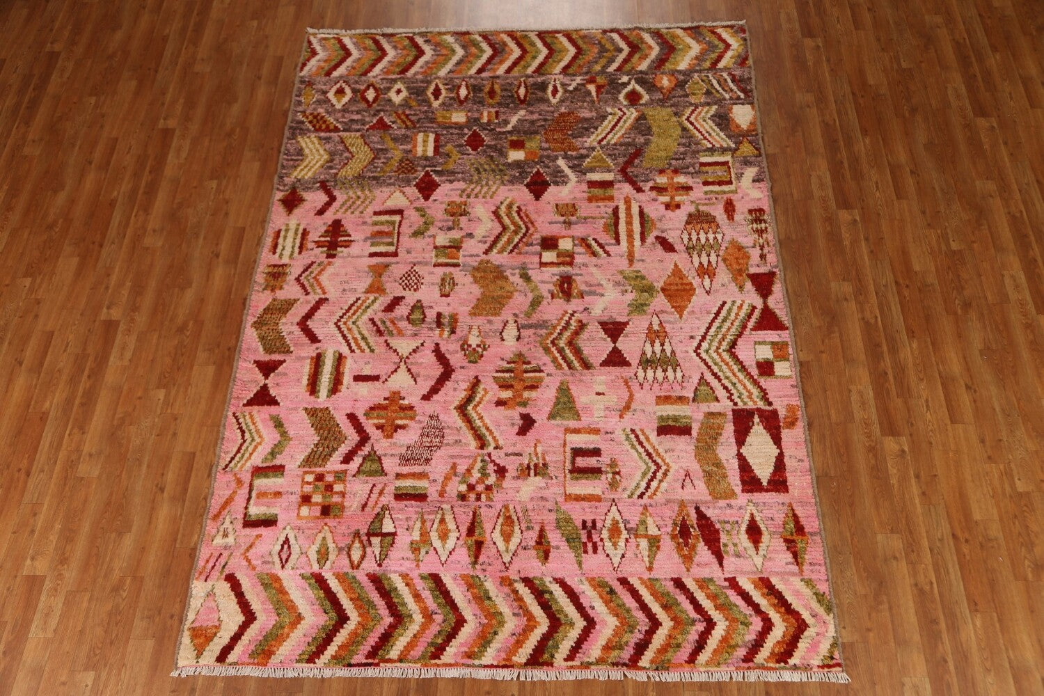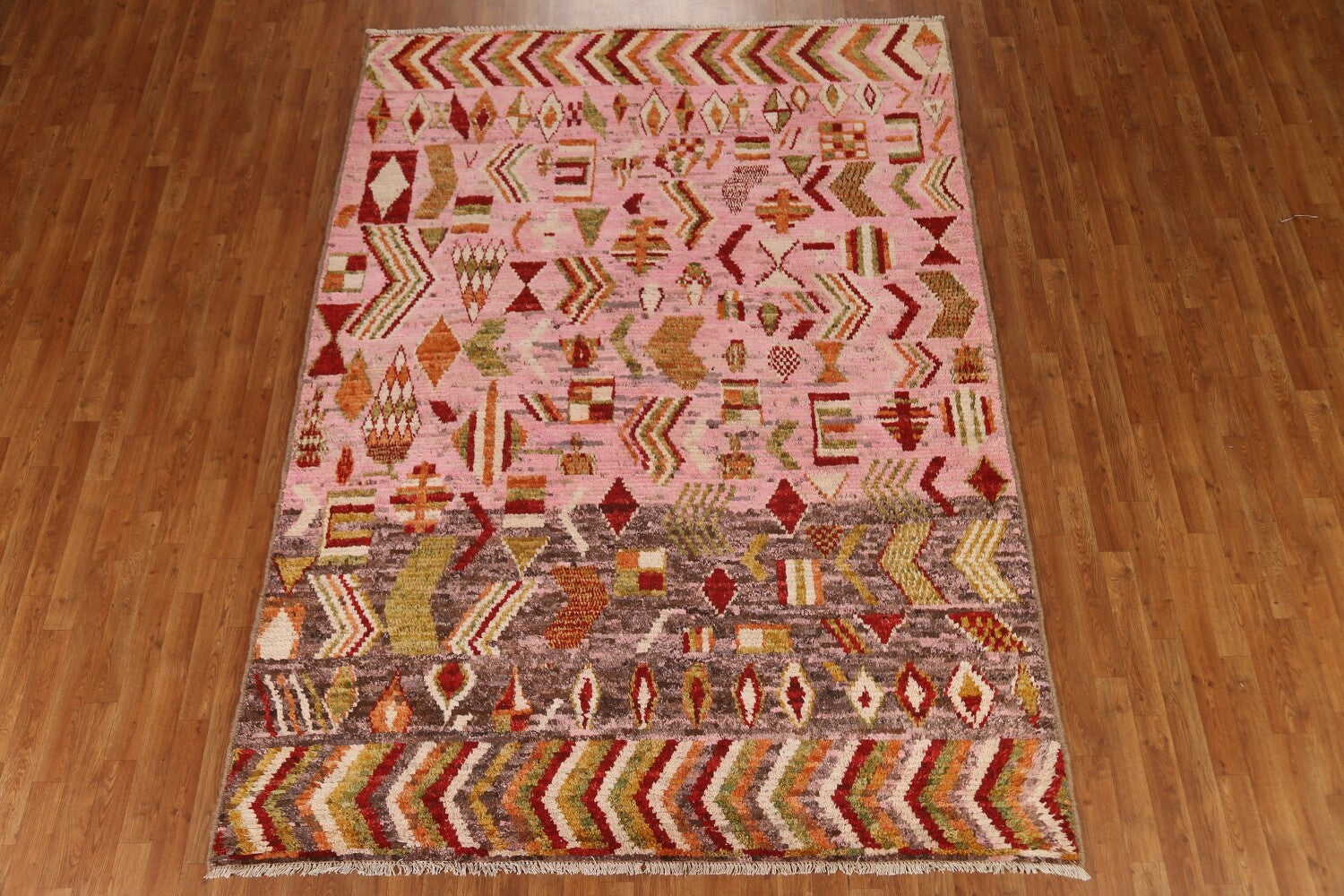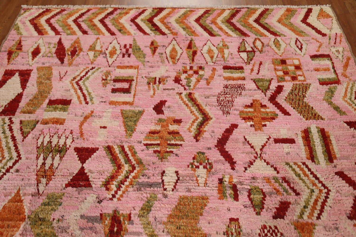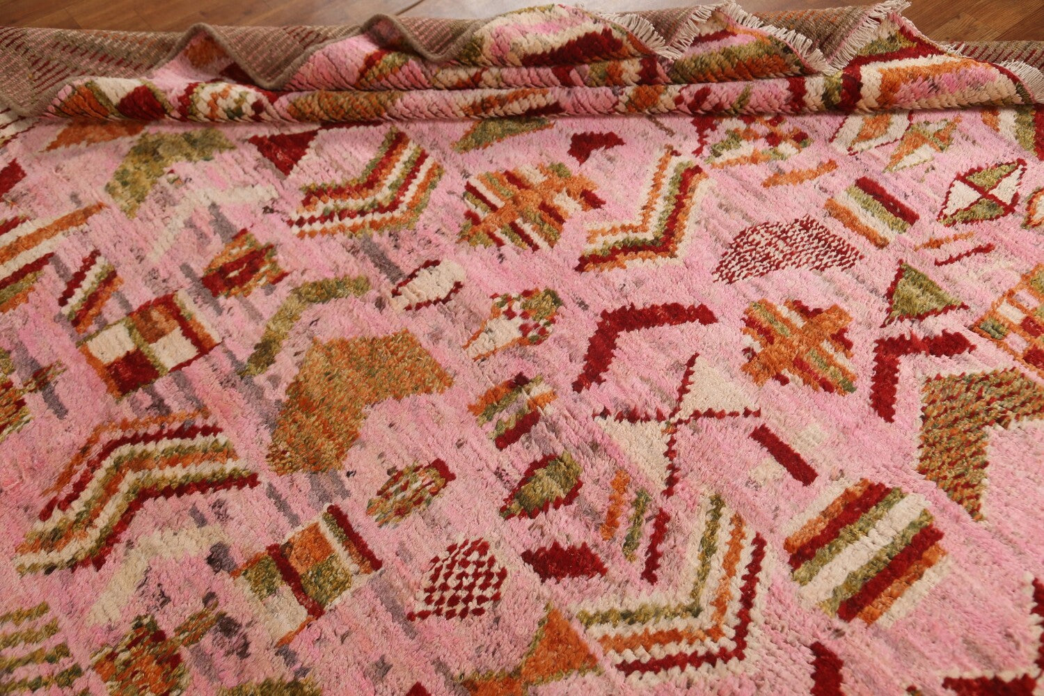 Pink Wool Moroccan Area Rug 7x9