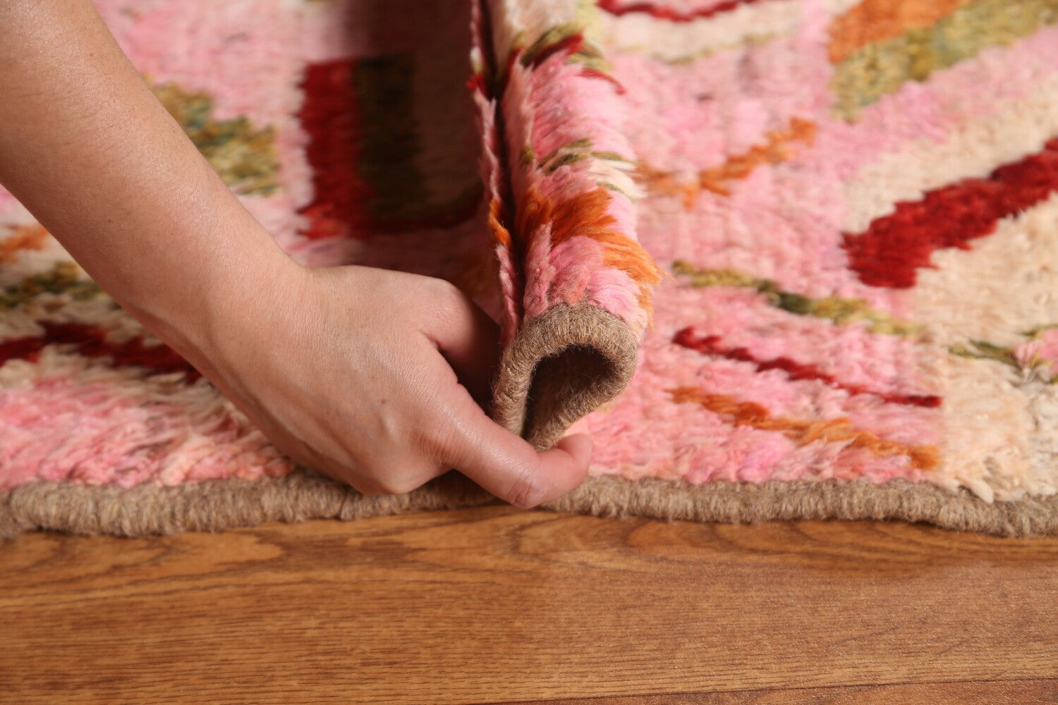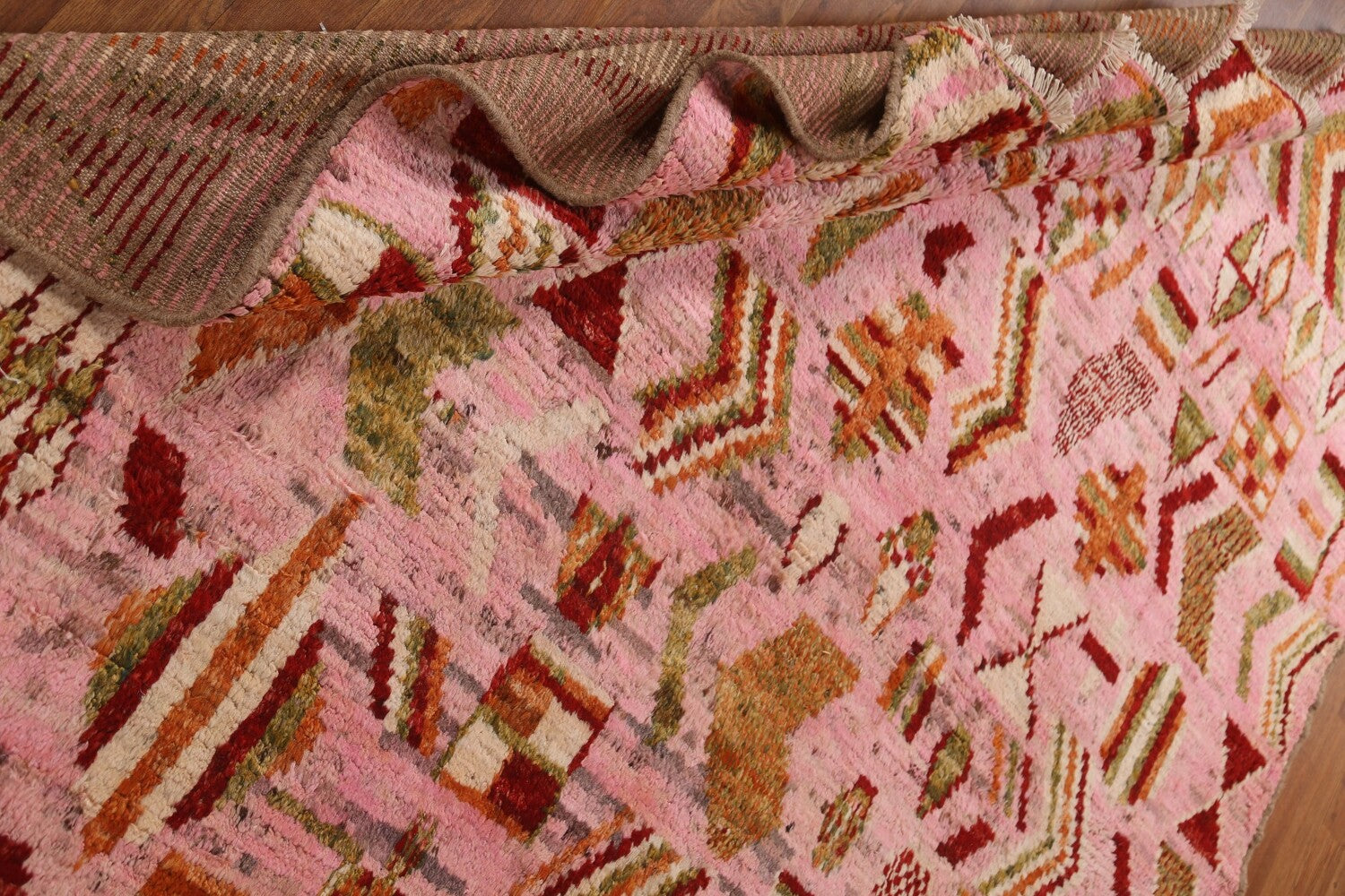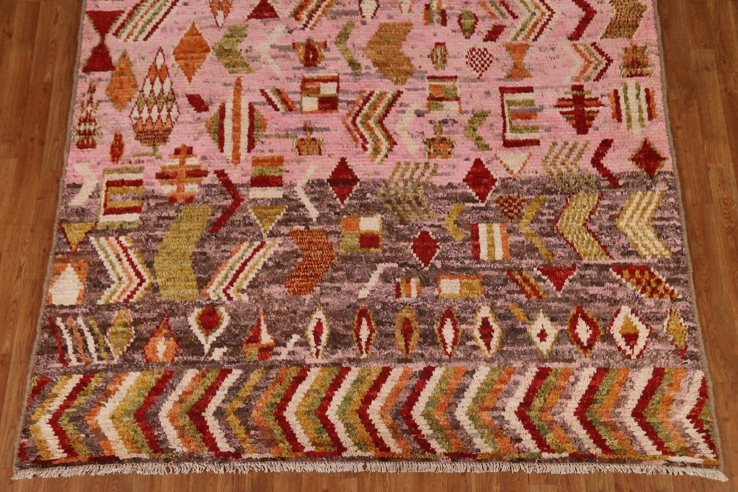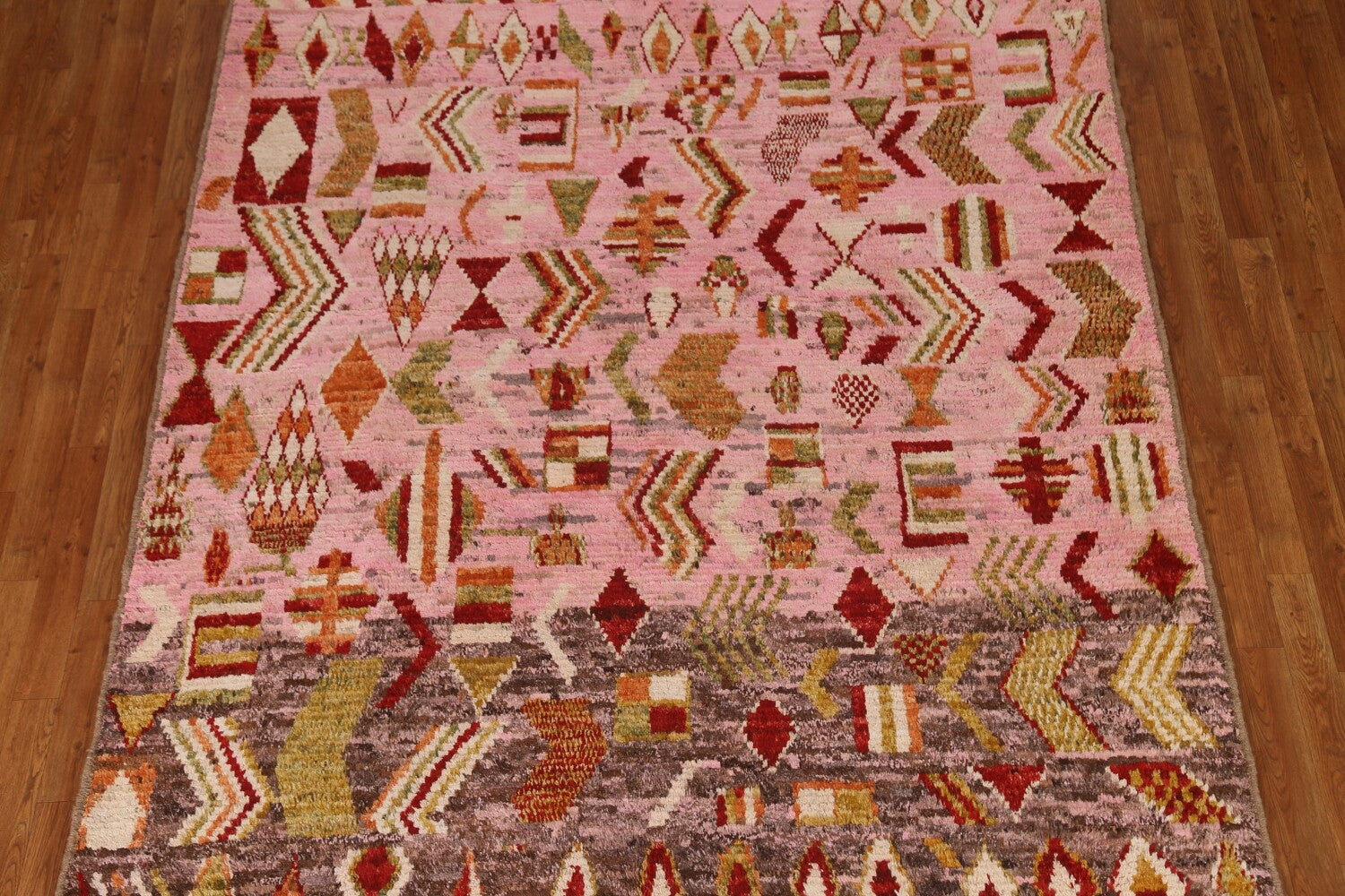 Pink Wool Moroccan Area Rug 7x9