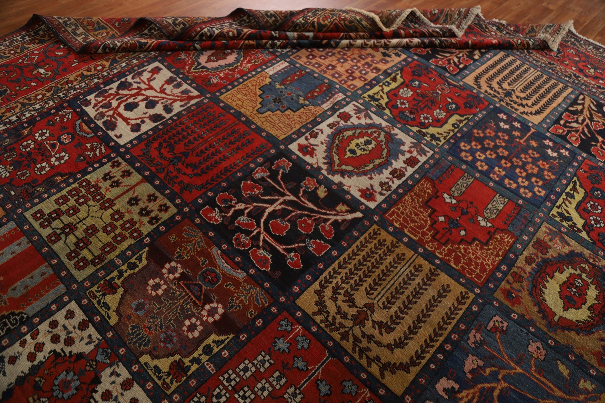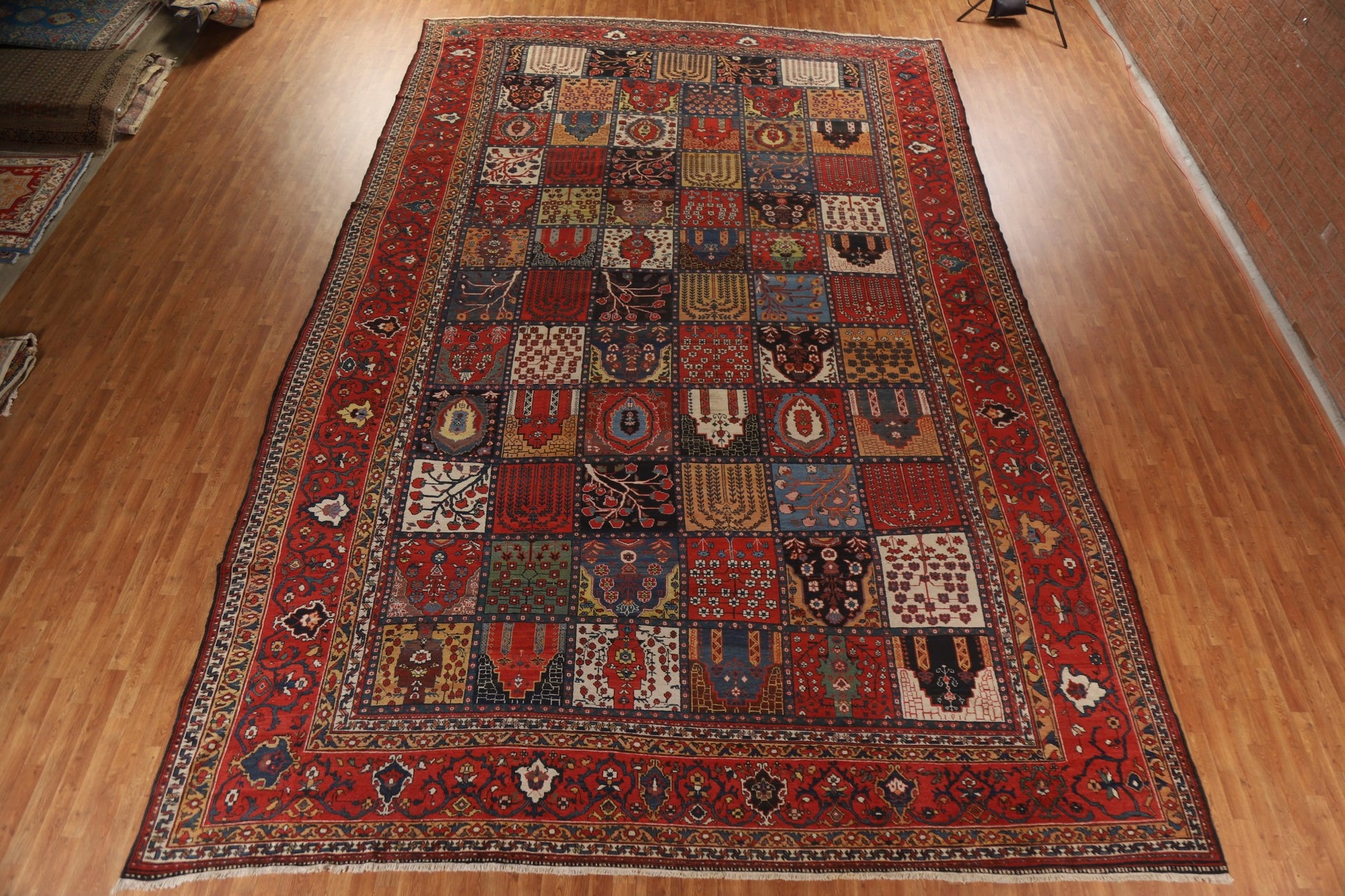 Pre-1900 Antique Bakhtiari Shalamzar Vegetable Dye Persian Rug 13x20