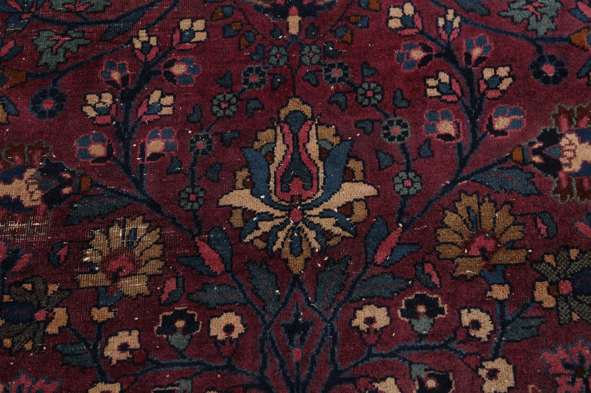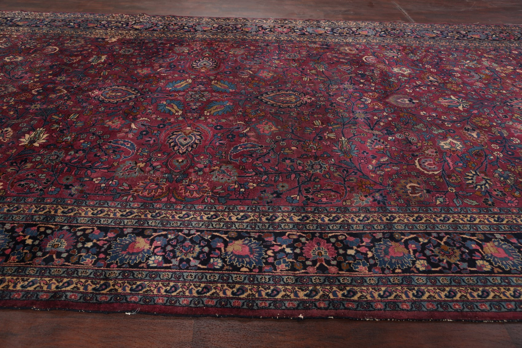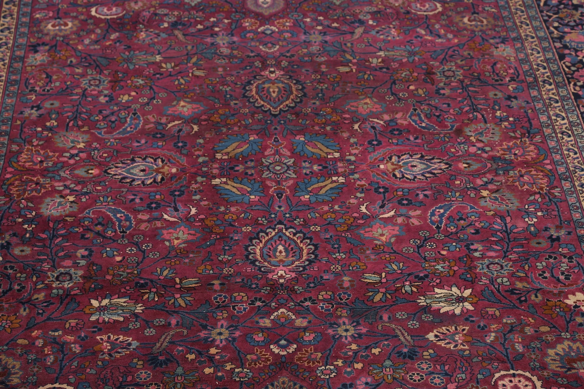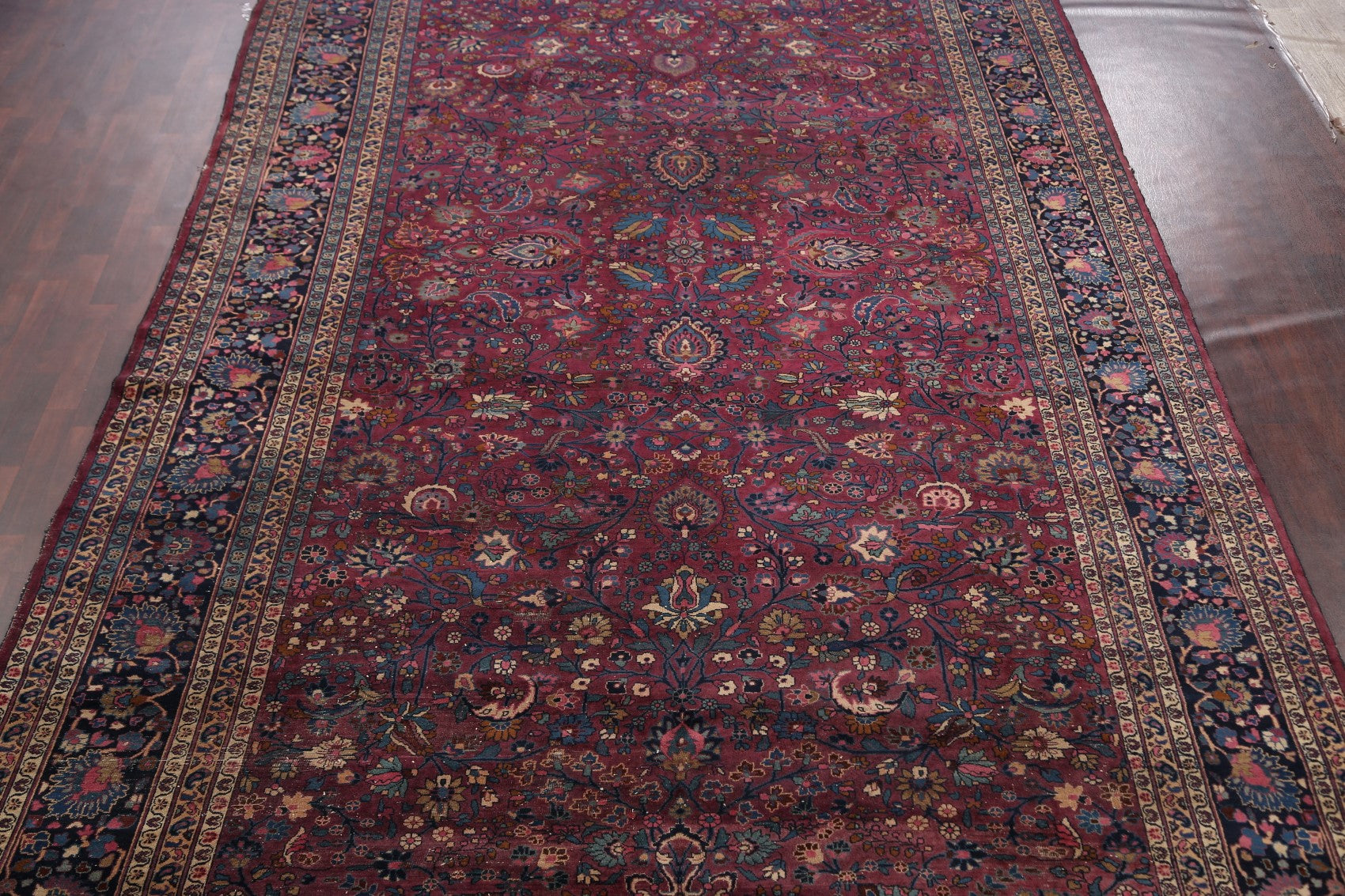 Pre-1900 Antique Burgundy Mashad Persian Area Rug 10x23