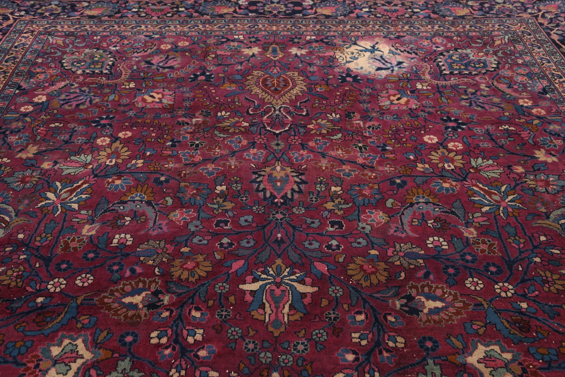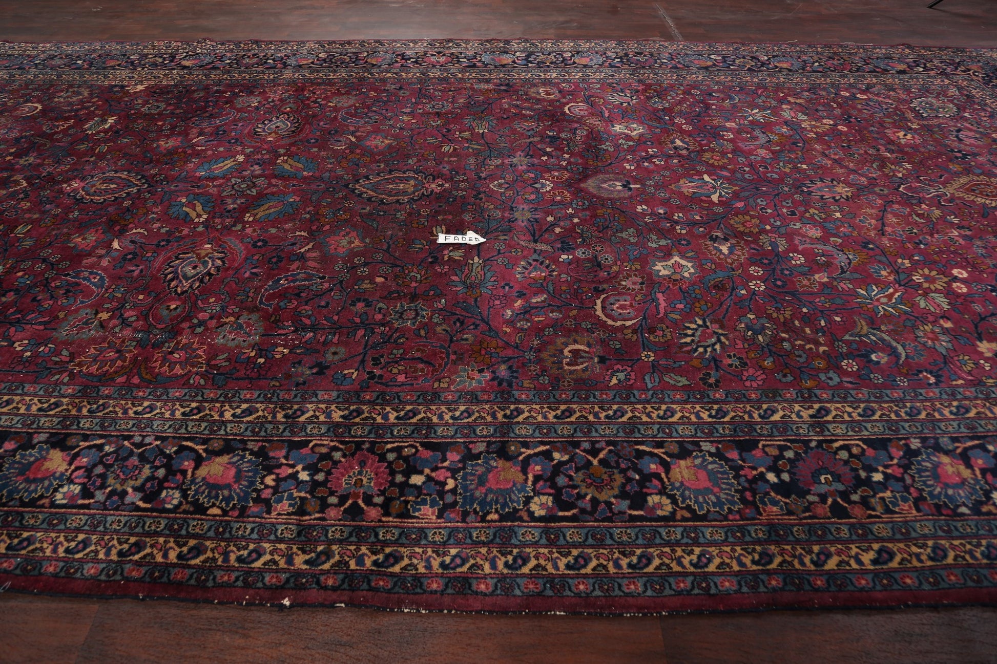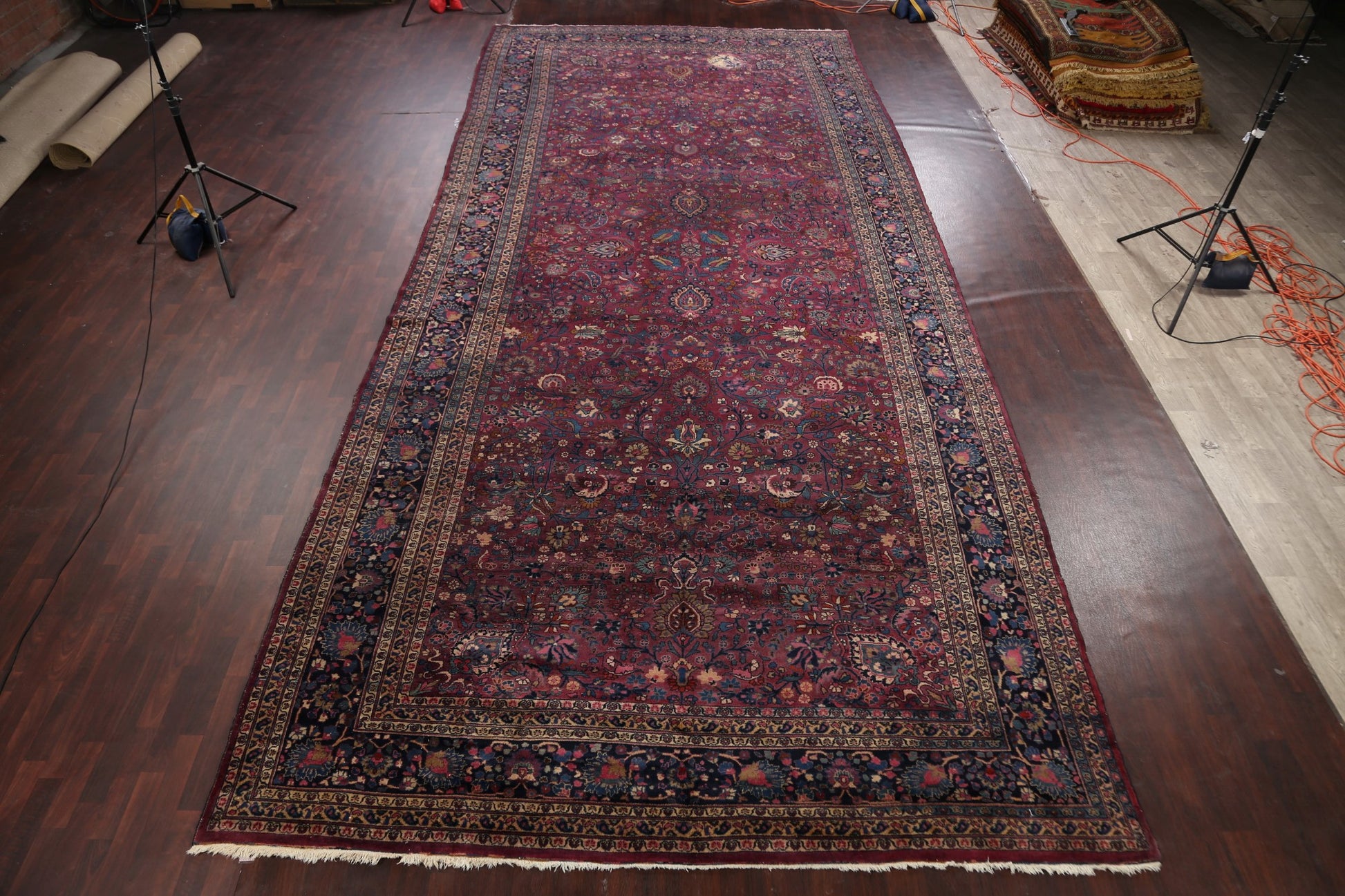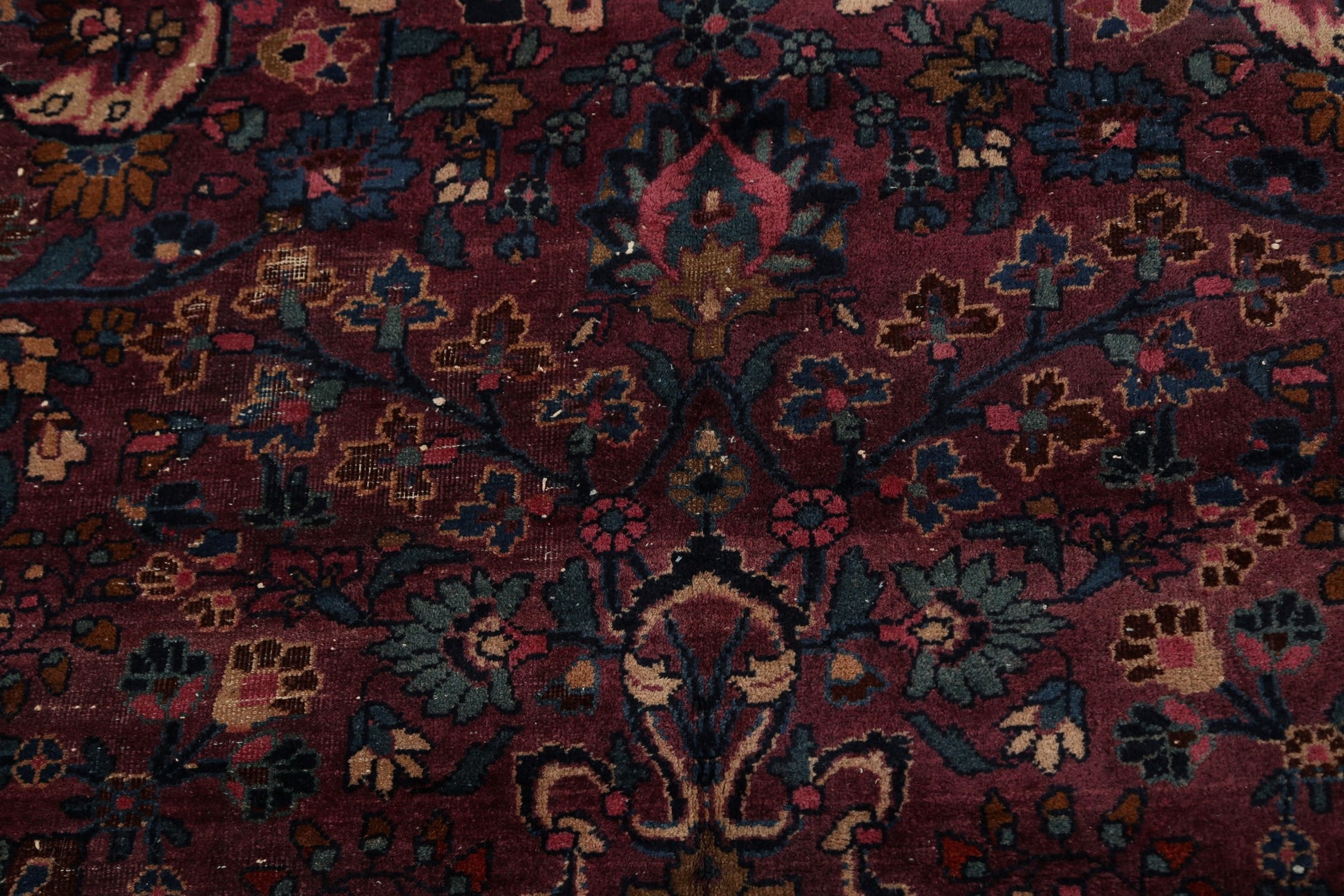 Pre-1900 Antique Burgundy Mashad Persian Area Rug 10x23