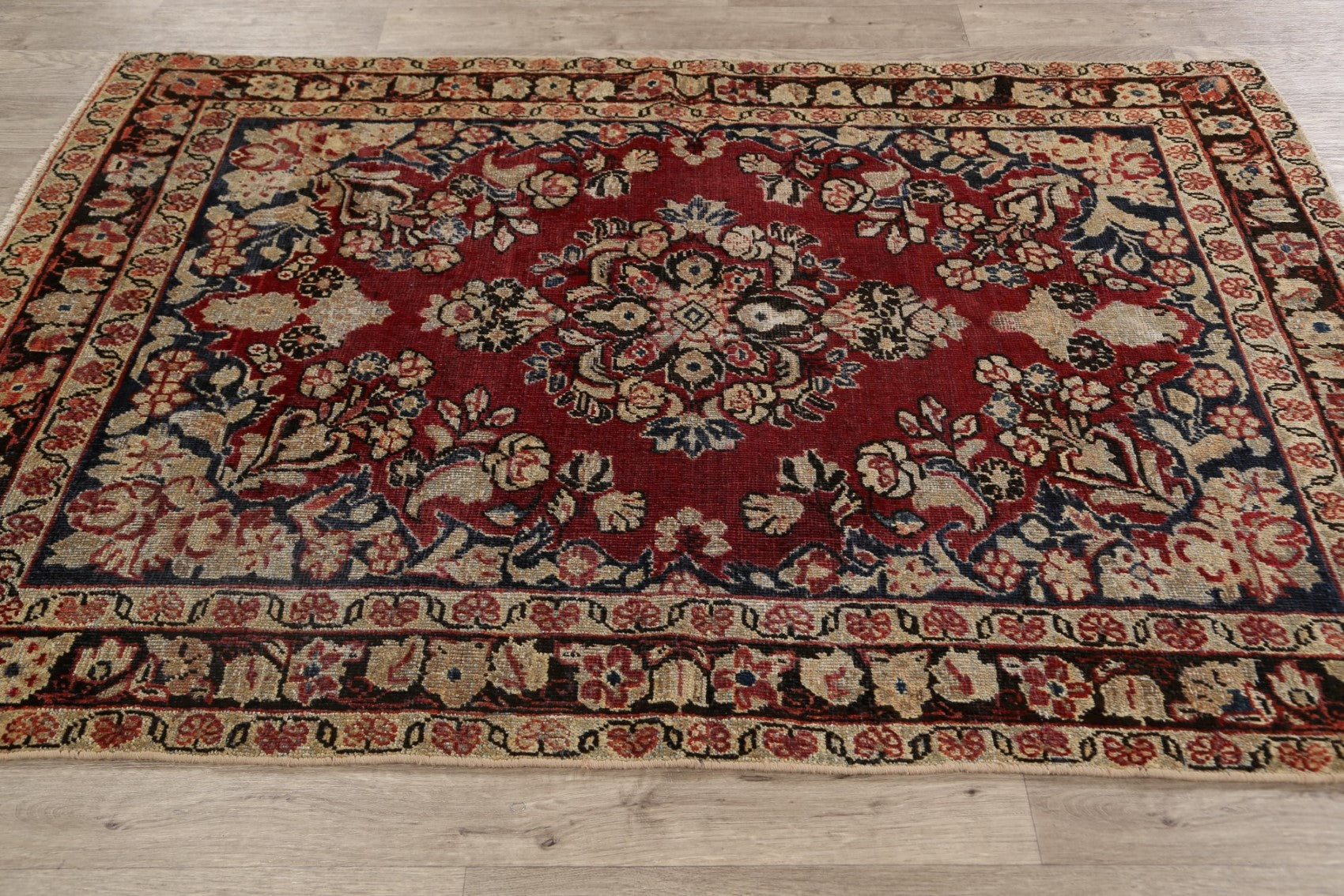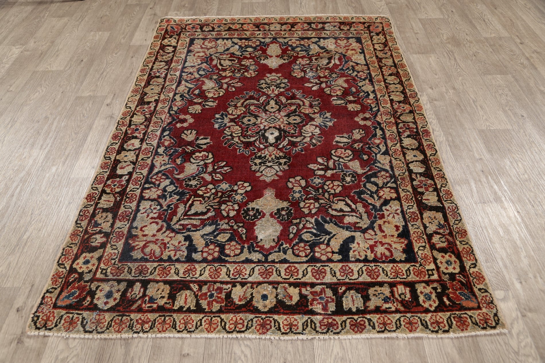 Pre-1900 Antique Floral Mahal Persian Area Rug 4x6