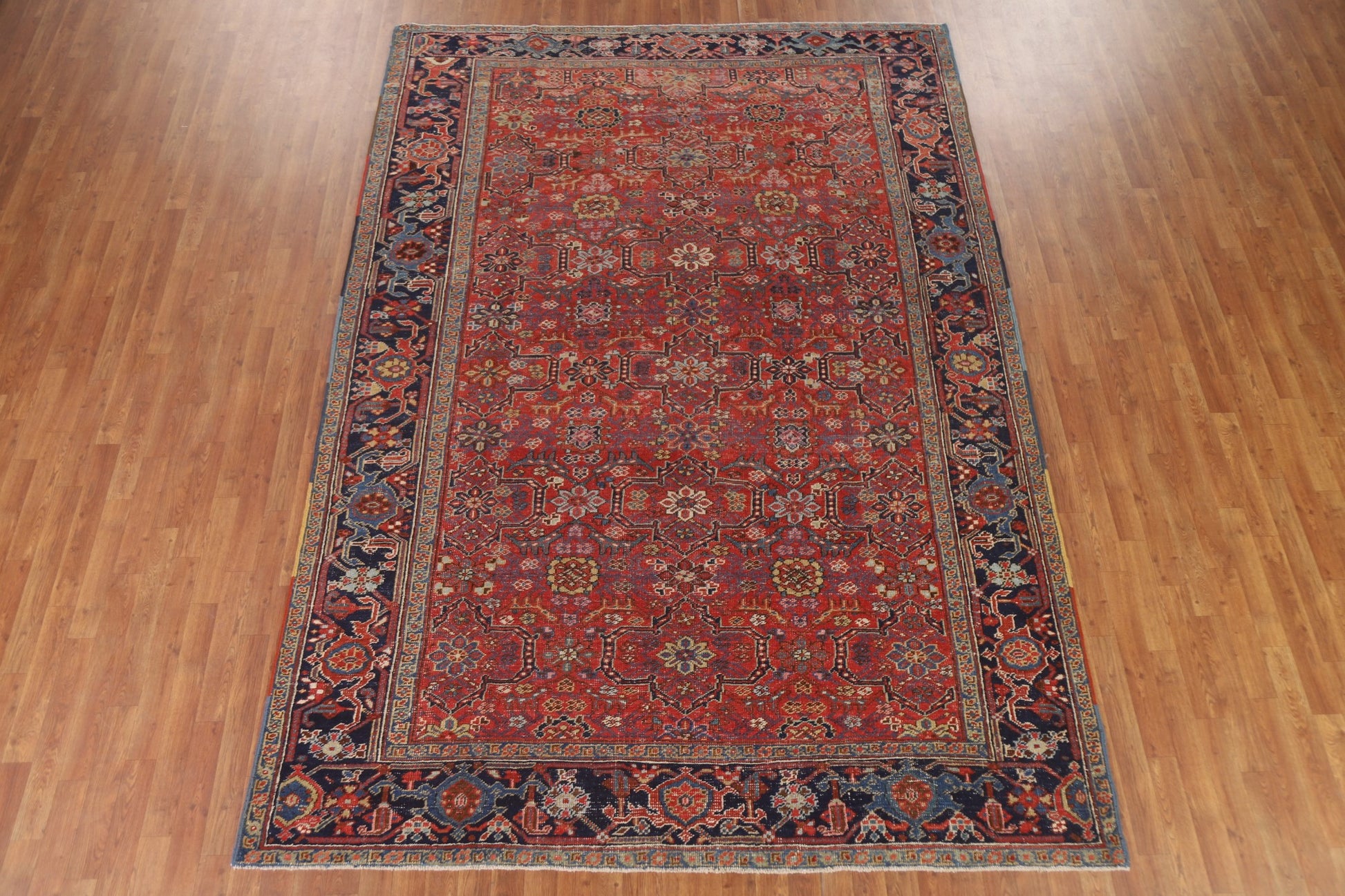 Pre-1900 Antique Heriz Serapi Vegetable Dye Persian Rug 8x11