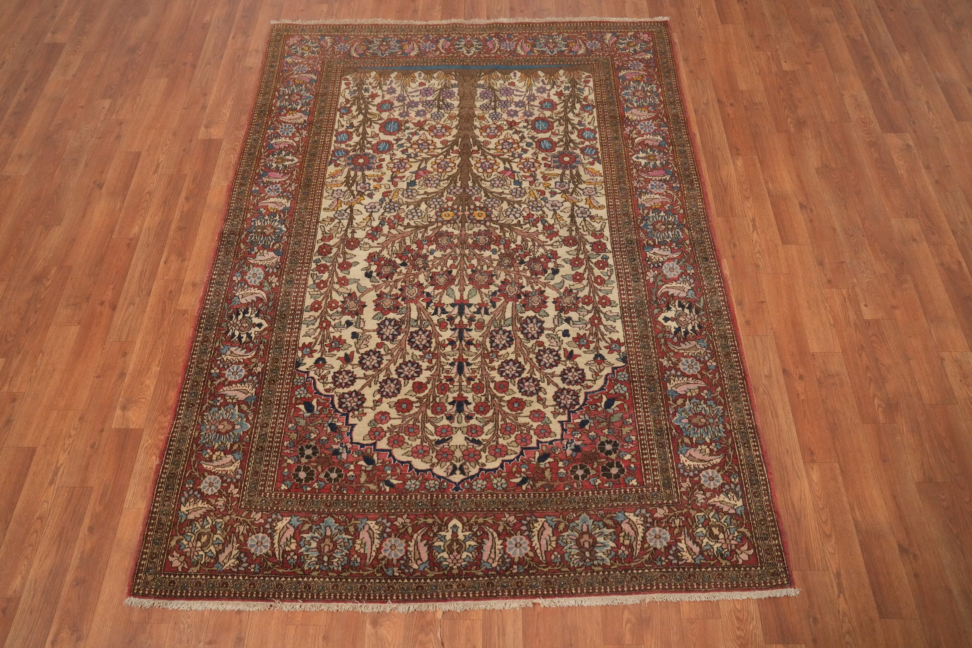 Pre-1900 Antique Isfahan Vegetable Dye Persian Rug 5x6
