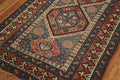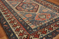 A Beautiful Genuine Russia Kazak rug is Hand Knotted by skillful weavers in Russia with 100% Wool Material. This rug is in Very Good (Evenly Low Pile) condition. dimensions are 8' 6'' X 3' 8'' in foot and 259 X 112 in centimeter. the primary color is Navy Blue & Blues.