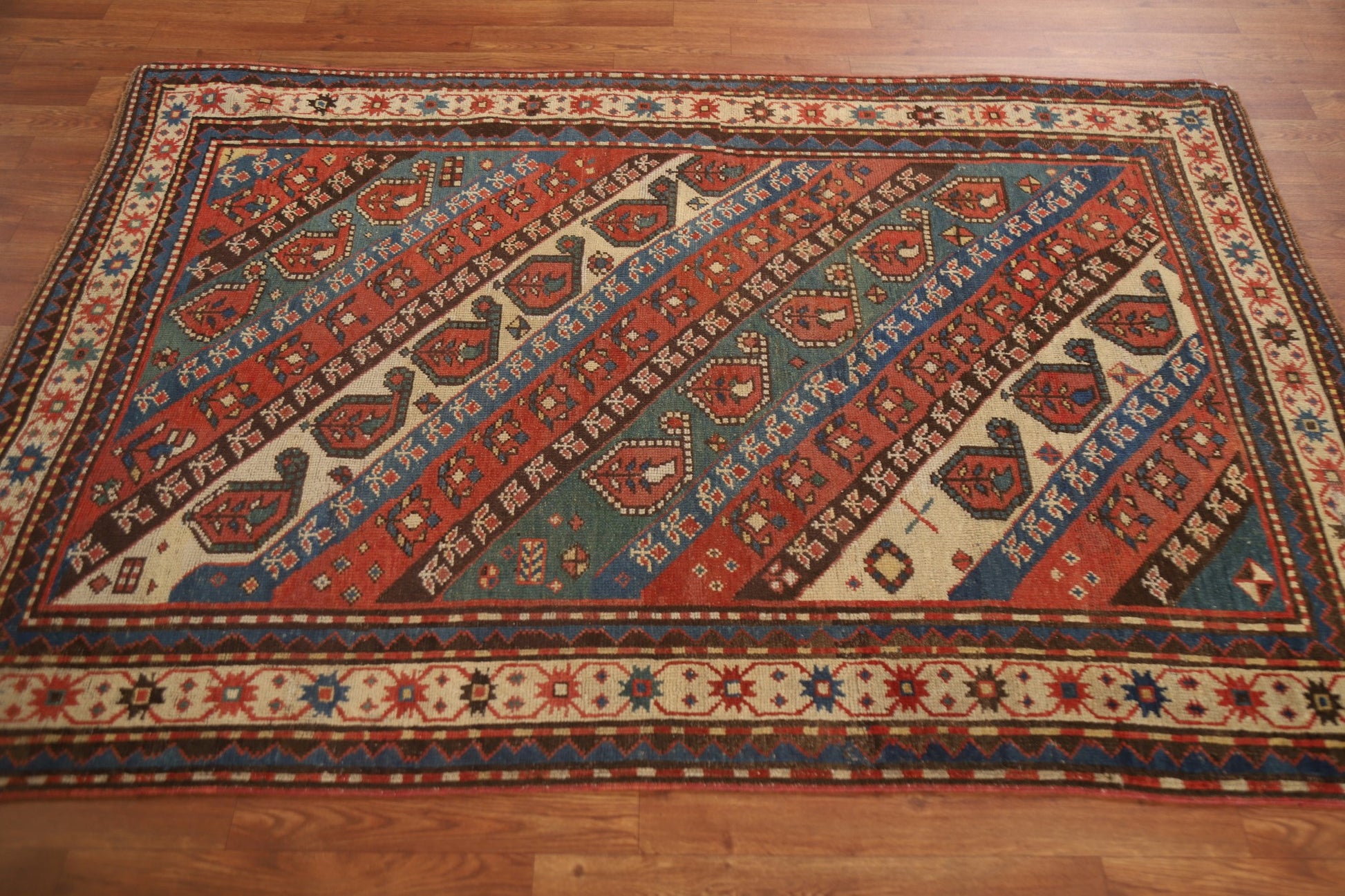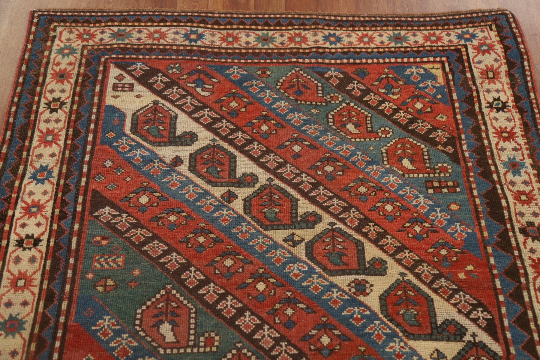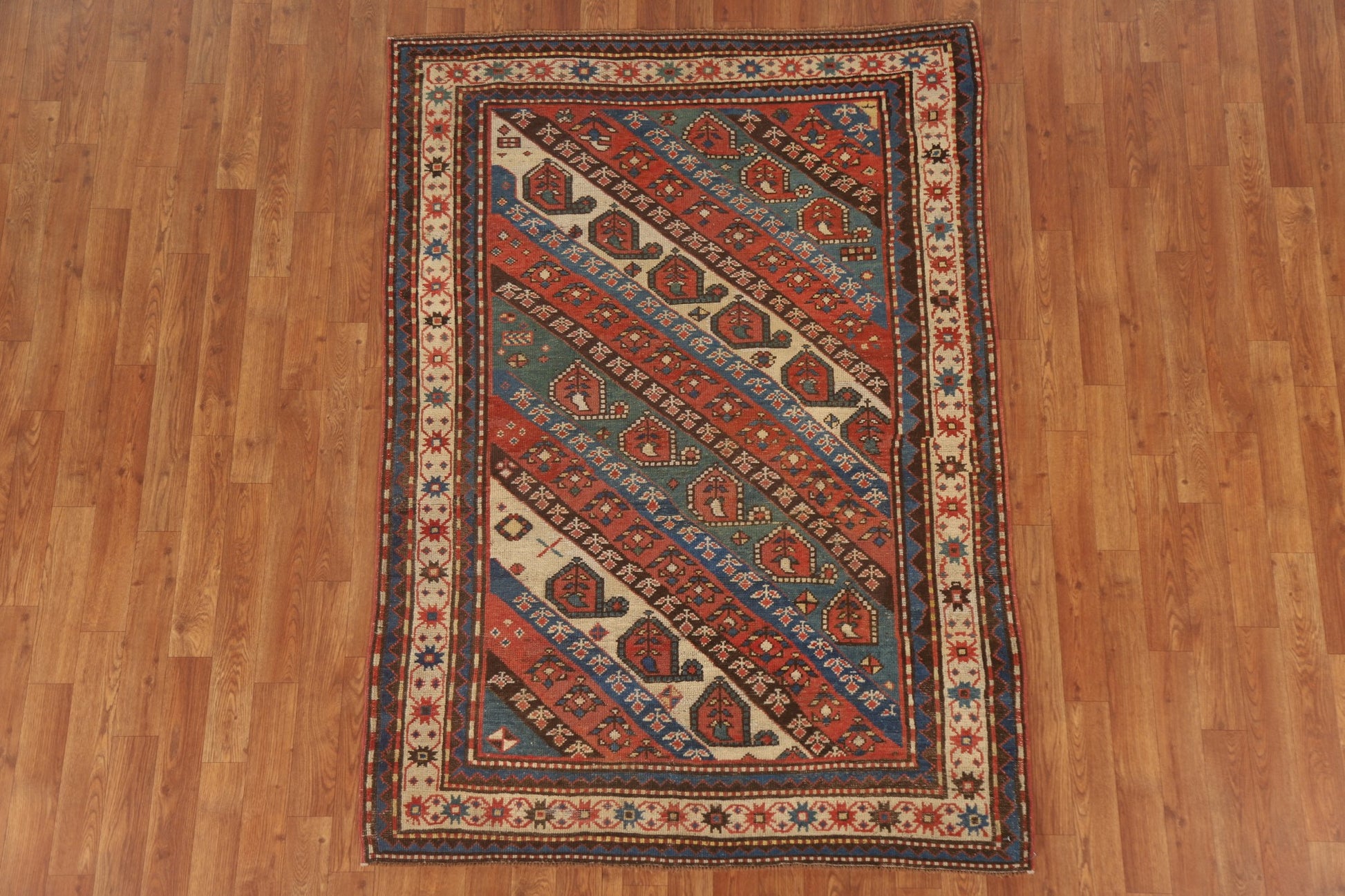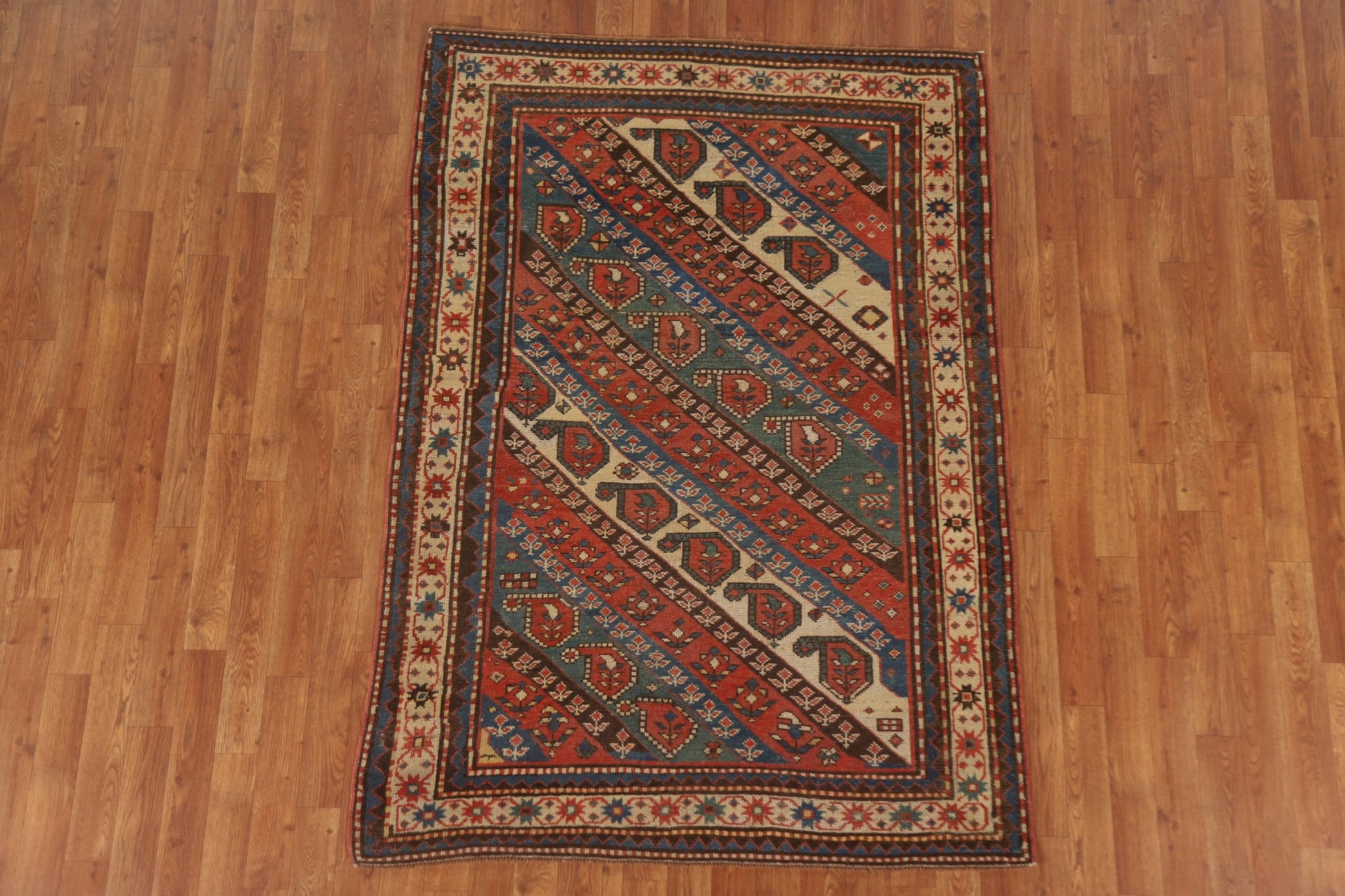 Pre-1900 Antique Kazak Shirvan Oriental Area Rug 4x6
