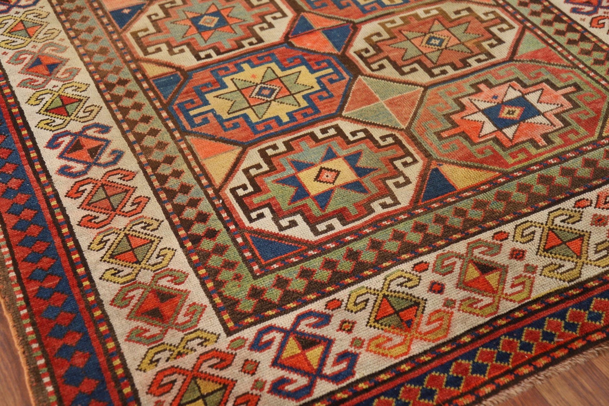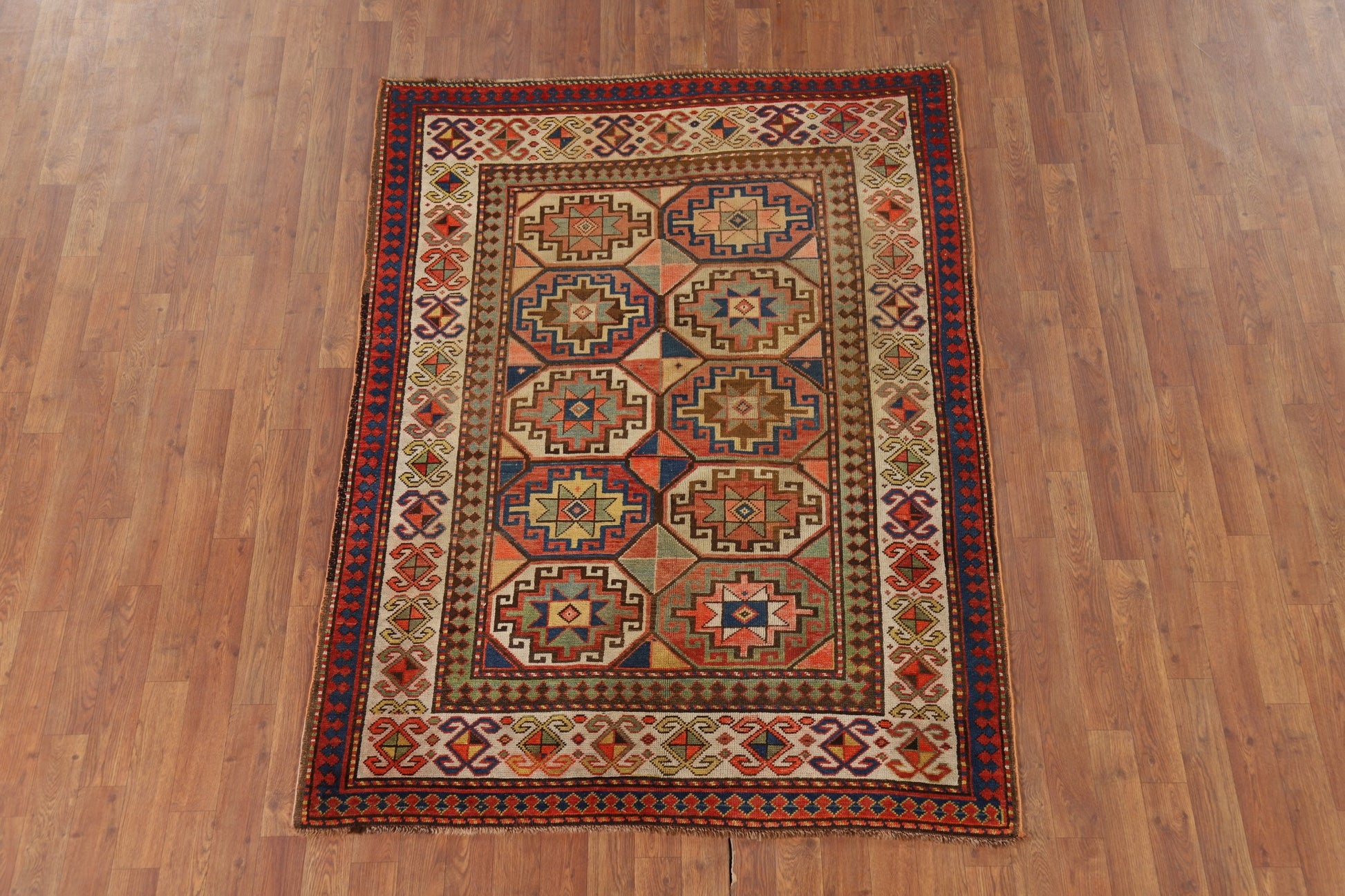 Pre-1900 Antique Kazak Vegetable Dye Accent Rug 4x6