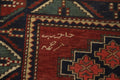 A Beautiful Genuine Russia Kazak rug is Hand Knotted by skillful weavers in Russia with 100% Wool Material. This rug is in Very Good (Evenly Low Pile) condition. dimensions are 3' 9'' X 3' 4'' in foot and 114 X 102 in centimeter. the primary color is Red.