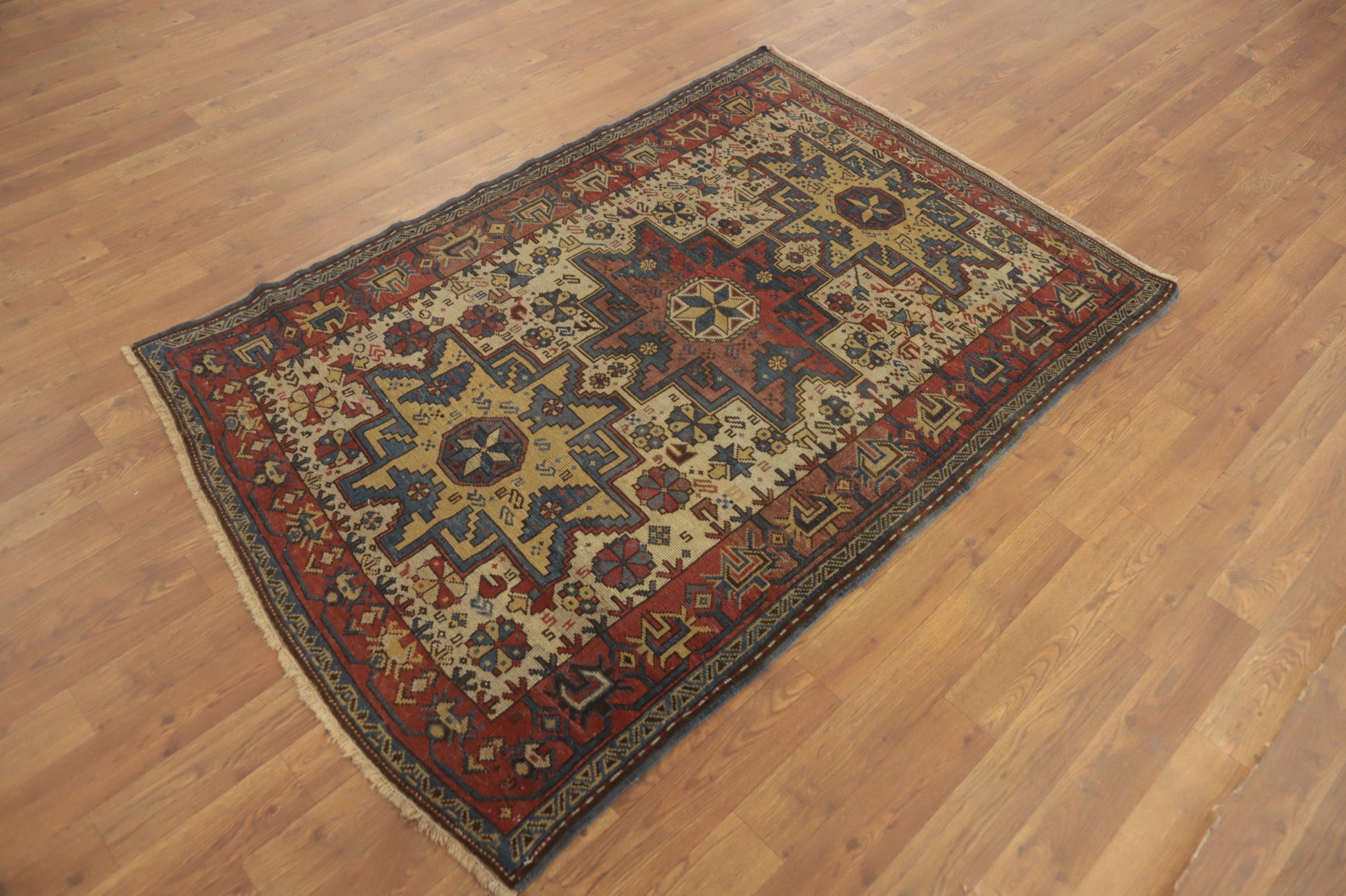 Pre-1900 Antique Kazak Vegetable Dye Rug 3x5