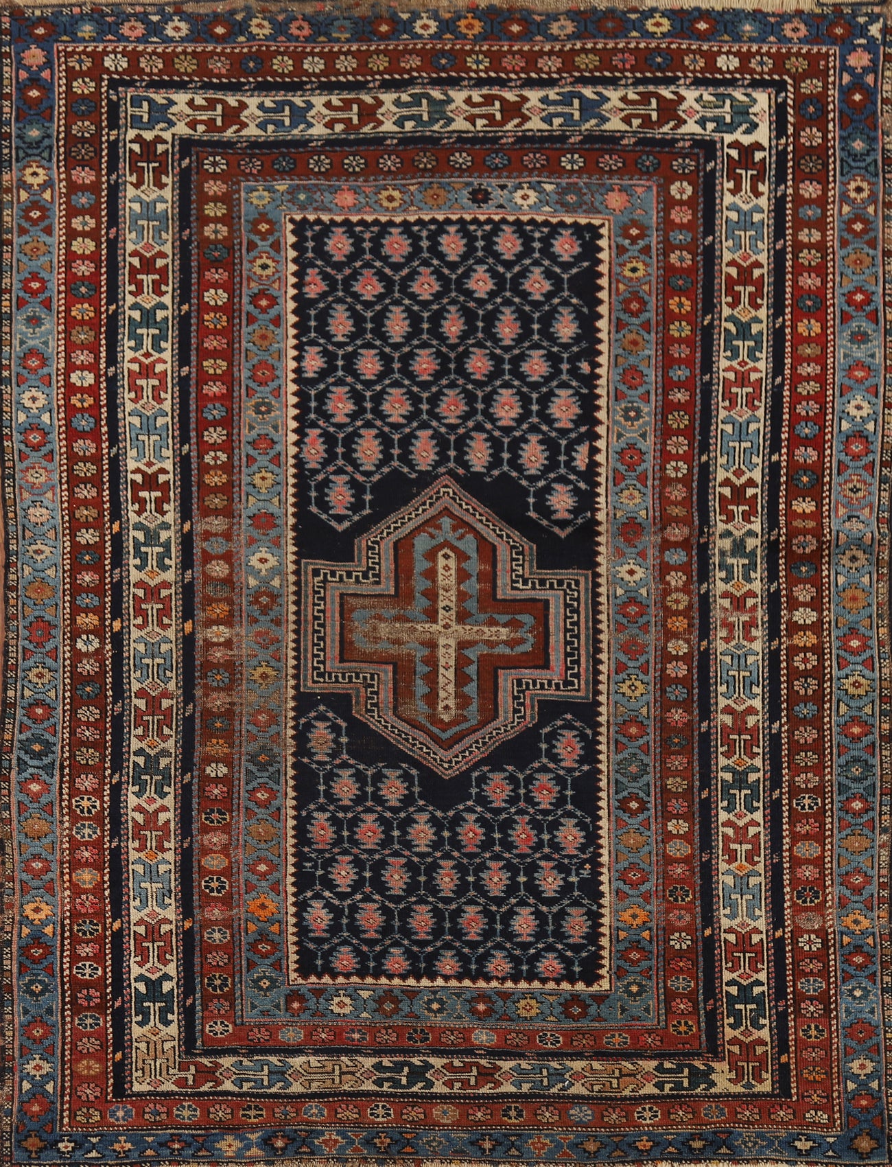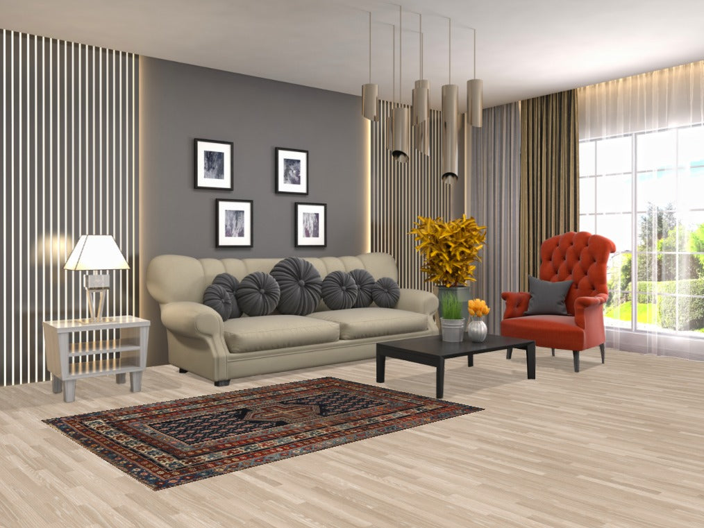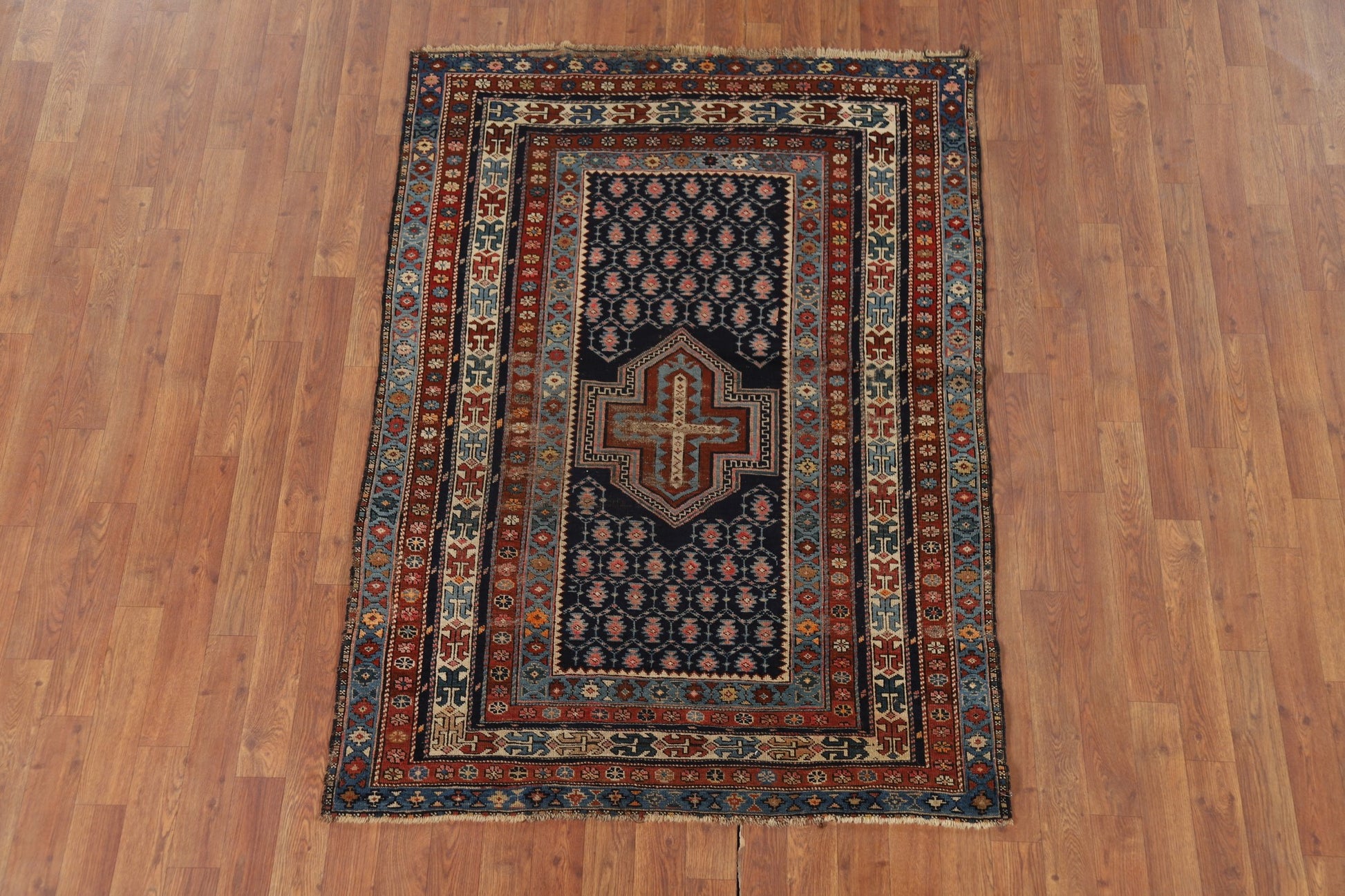 Pre-1900 Antique Kazak Vegetable Dye Rug 4x5