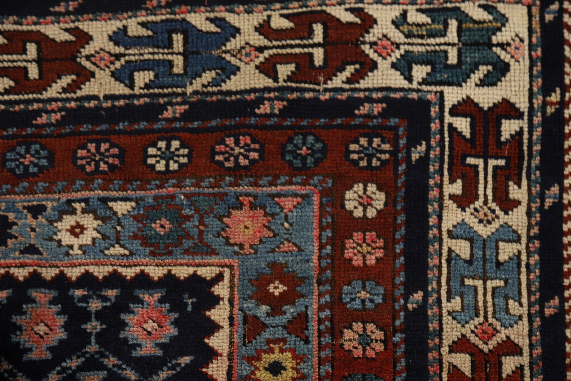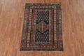 A Beautiful Genuine Russia Kazak rug is Hand Knotted by skillful weavers in Russia with 100% Wool Material. This rug is in Very Good ( Low Pile ) condition. dimensions are 5' 5'' X 3' 10'' in foot and 165 X 117 in centimeter. the primary color is Navy Blue & Blues.