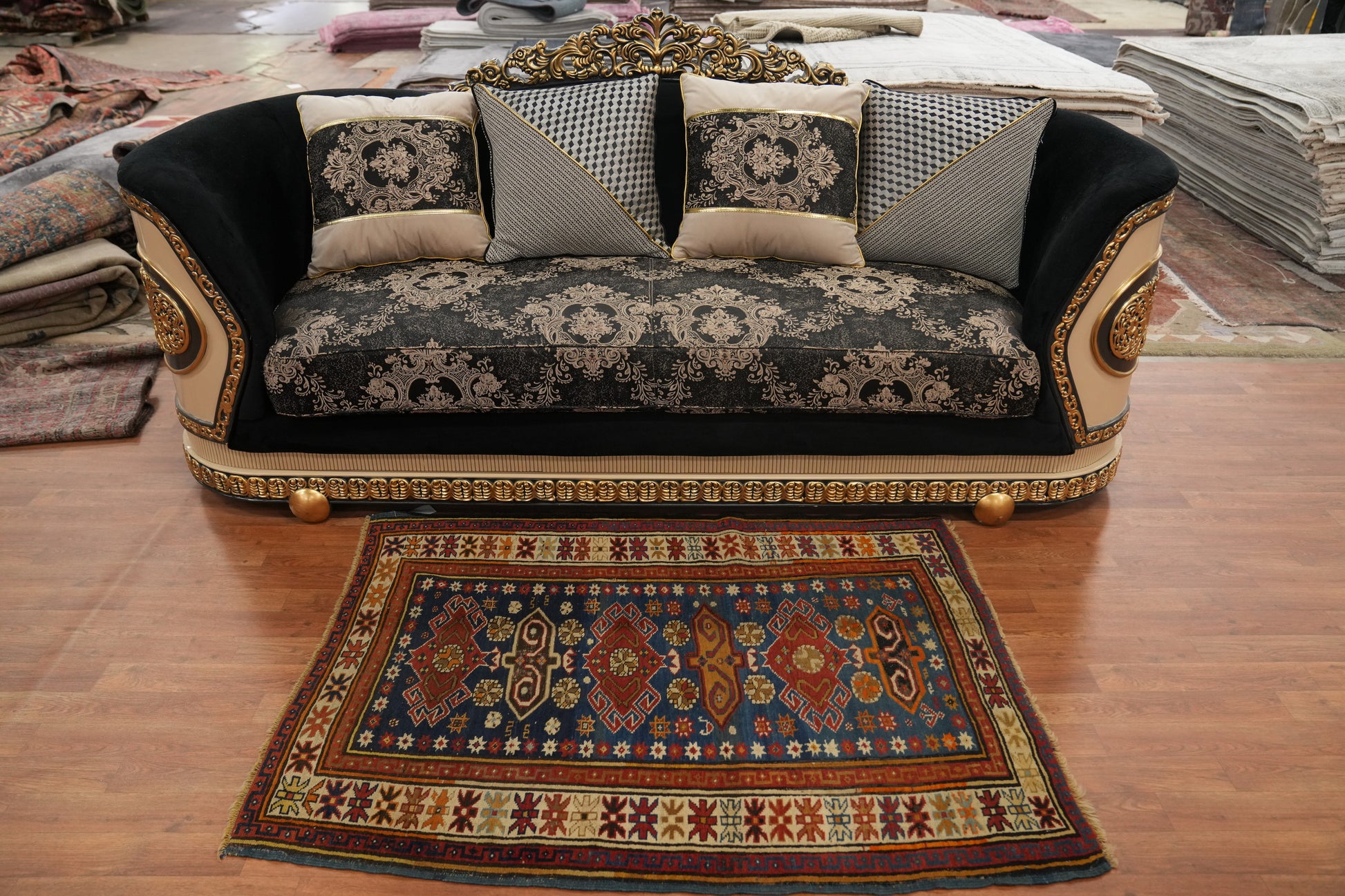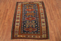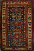 A Beautiful Genuine Russia Kazak rug is Hand Knotted by skillful weavers in Russia with 100% Wool Material. This rug is in Very Good ( Low Pile ) condition. dimensions are 4' 7'' X 3' 6'' in foot and 140 X 107 in centimeter. the primary color is Navy Blue & Blues.