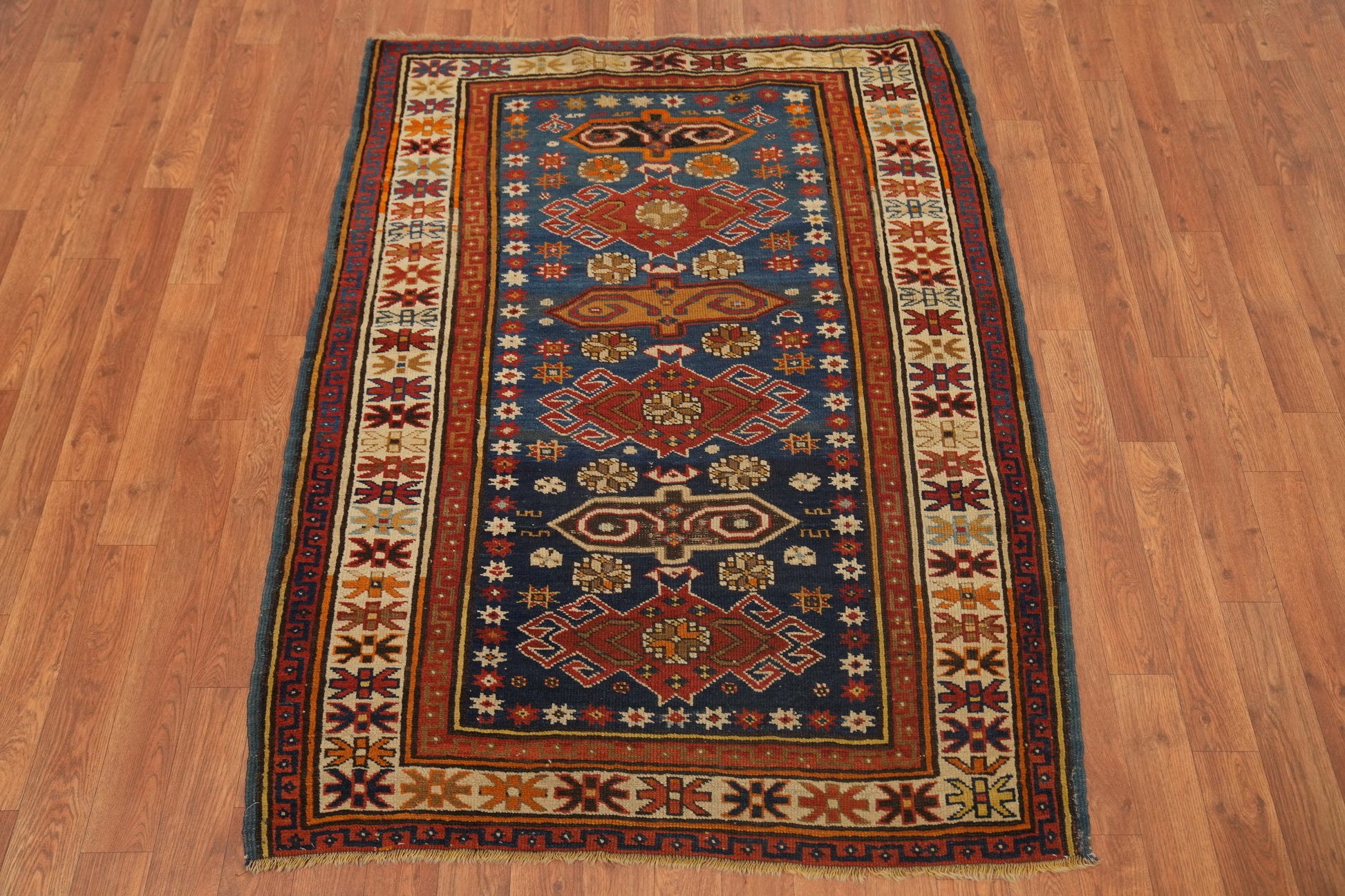 Pre-1900 Antique Kazak Vegetable Dye Rug 4x5