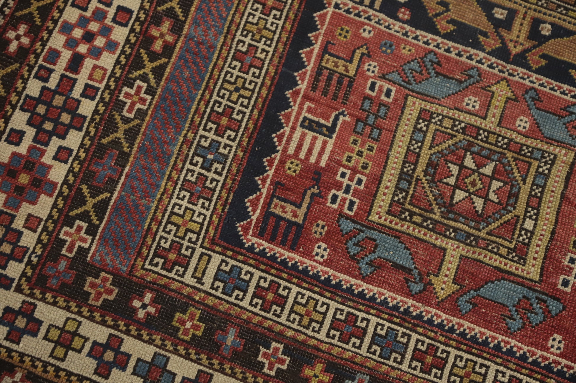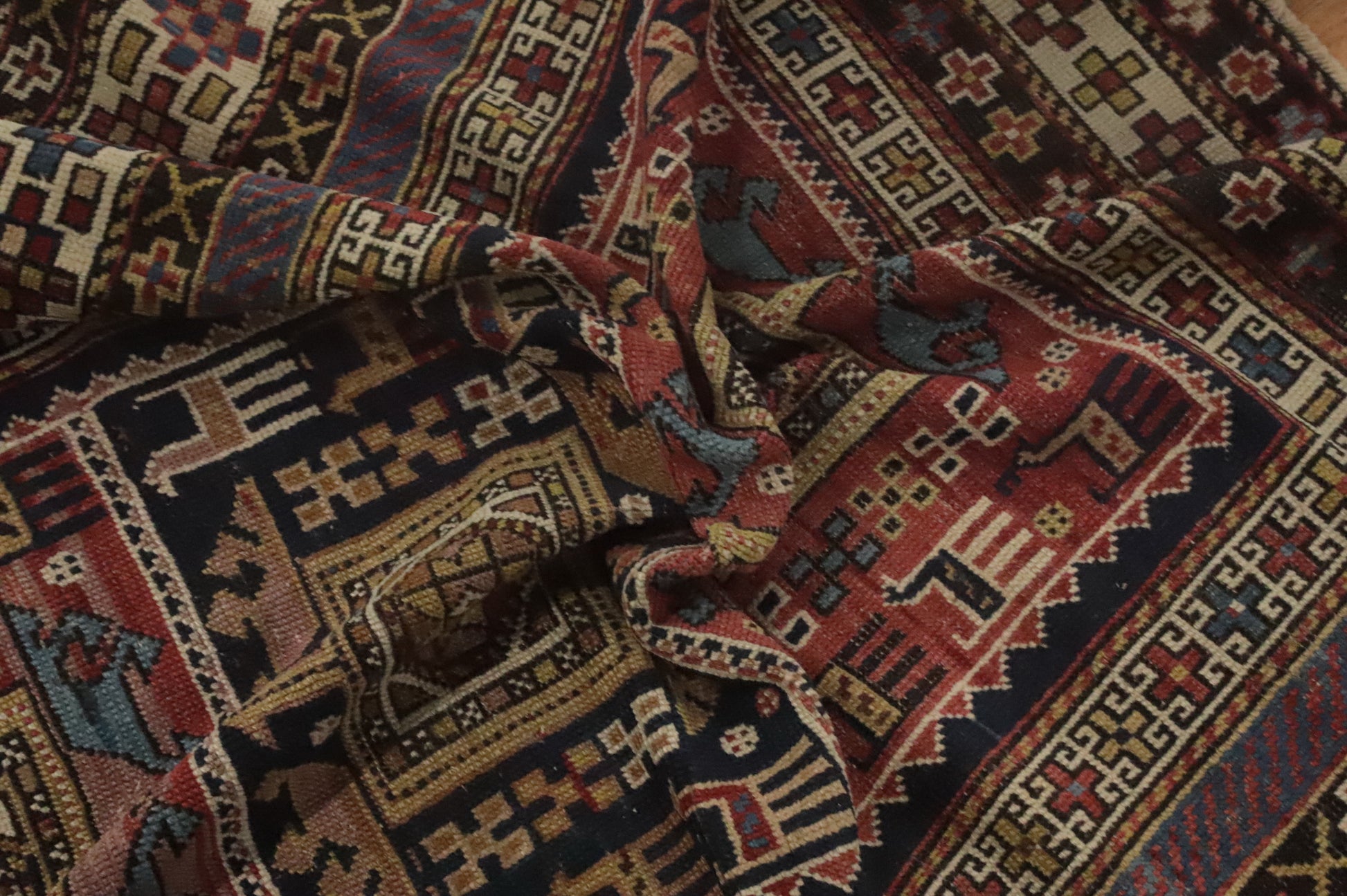 Pre-1900 Antique Kazak Vegetable Dye Rug 4x5