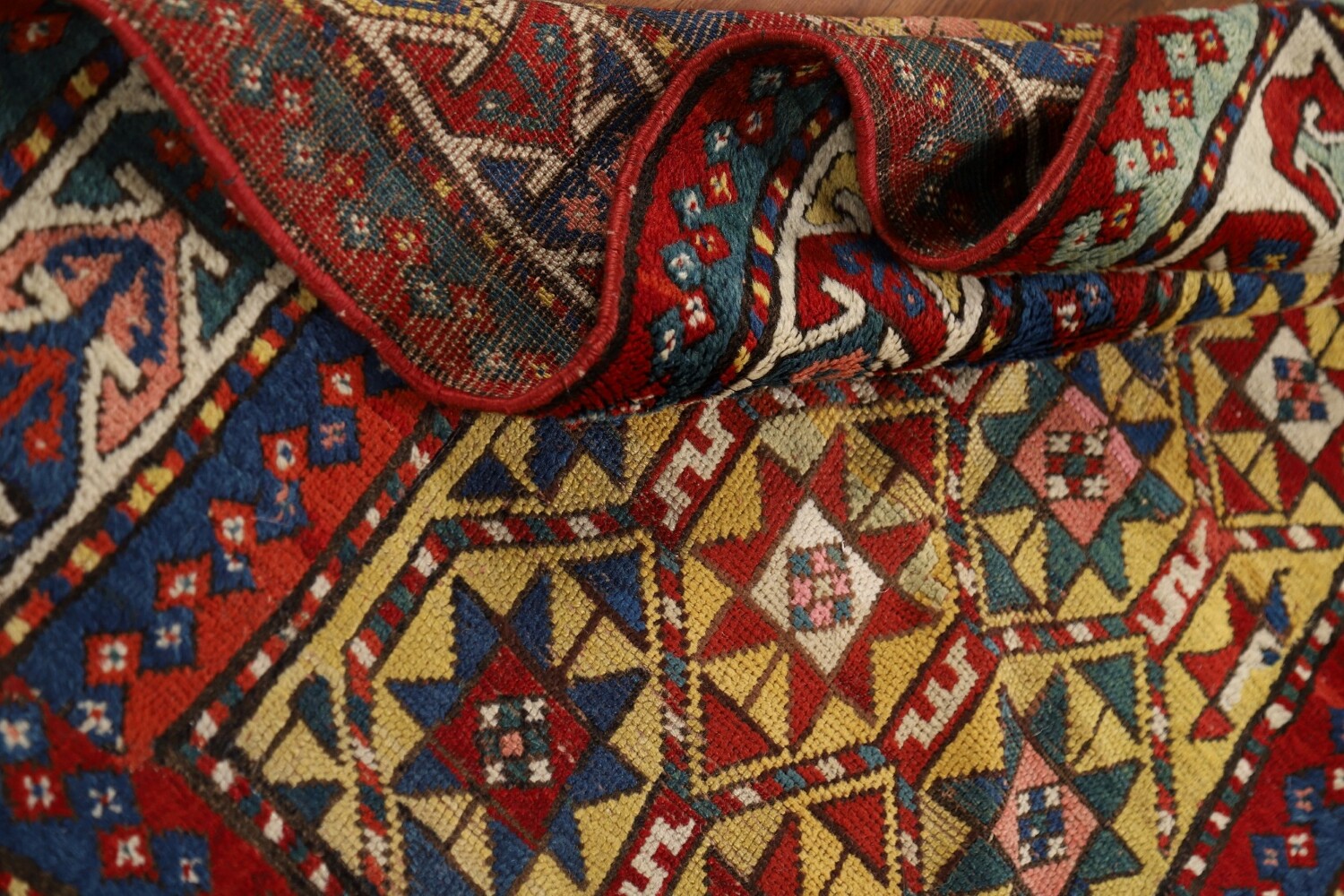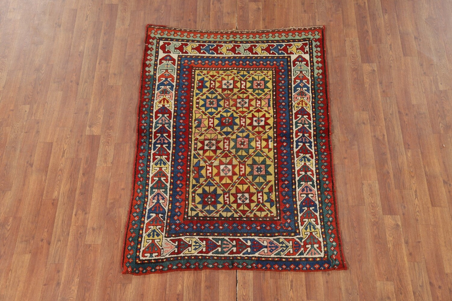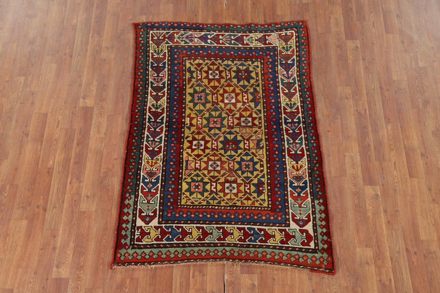 Pre-1900 Antique Kazak Vegetable Dye Rug 4x5