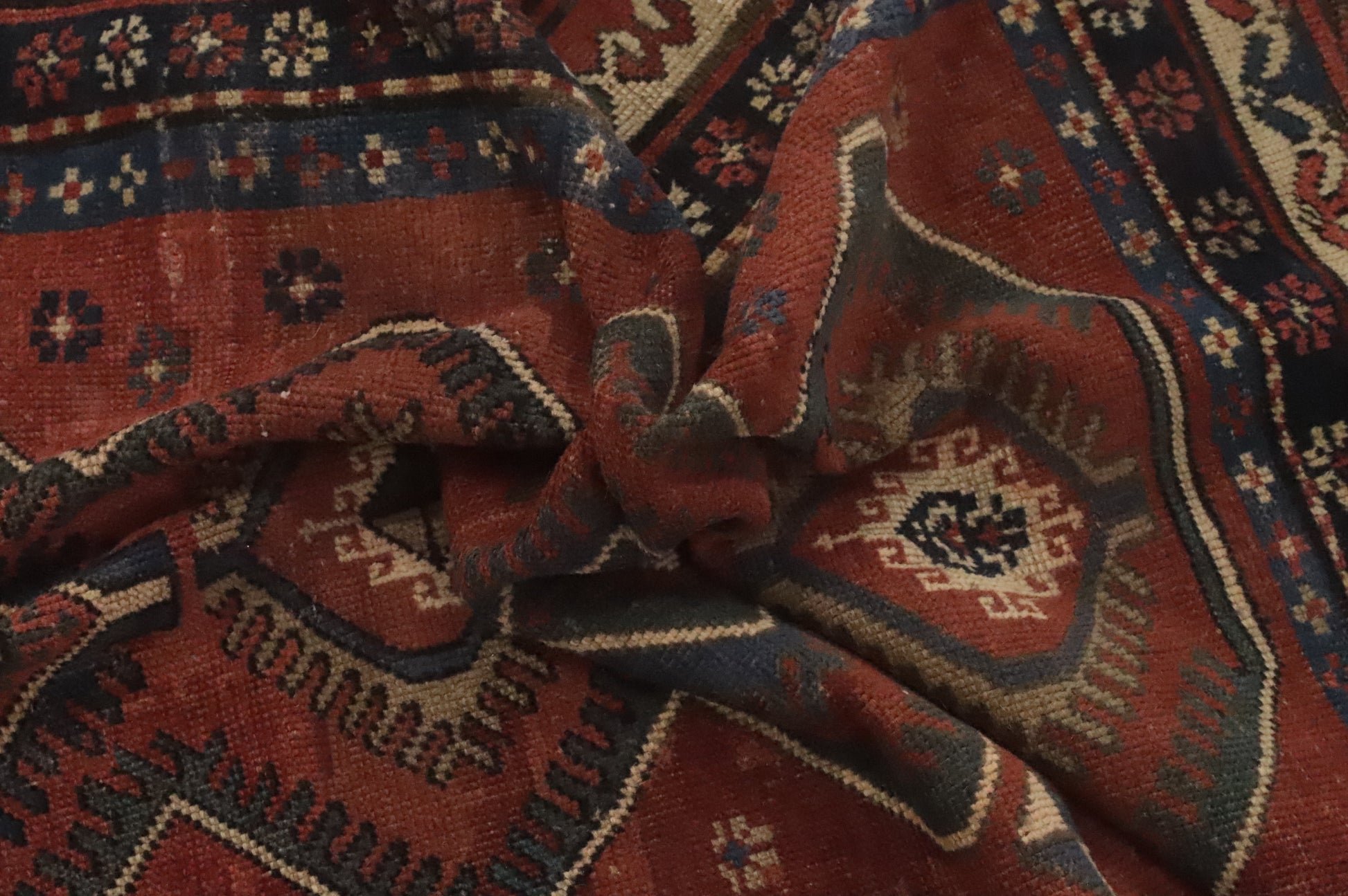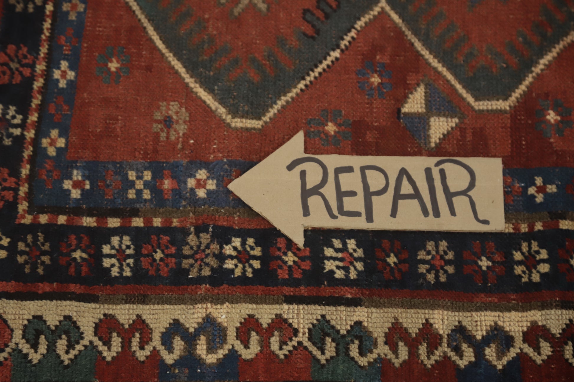 A Beautiful Genuine Russia Kazak rug is Hand Knotted by skillful weavers in Russia with 100% Wool Material. This rug is in Very Good (Low Pile-Repairs) condition. dimensions are 5' 7'' X 3' 7'' in foot and 170 X 109 in centimeter. the primary color is Red.